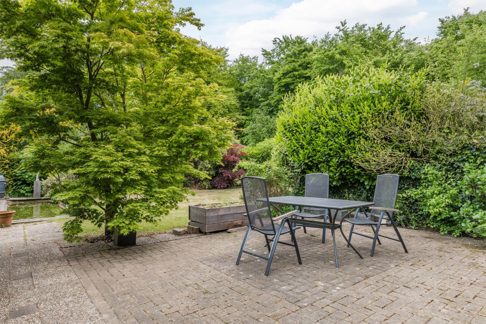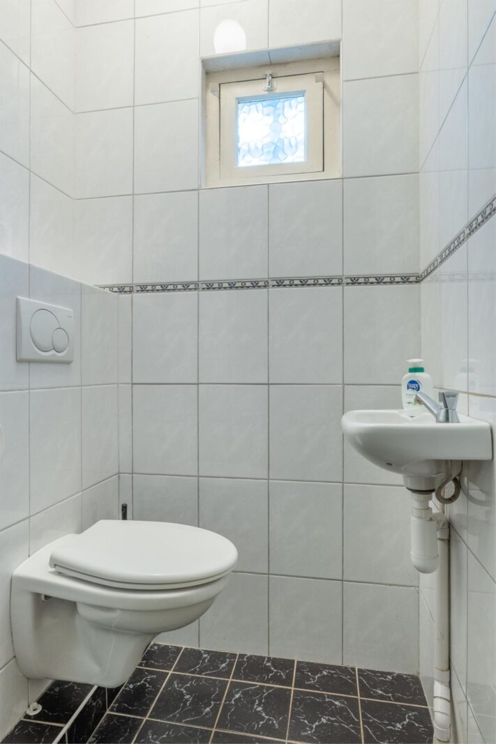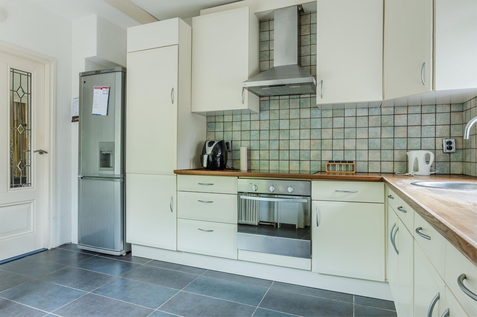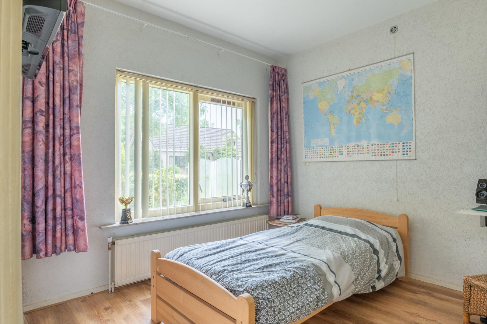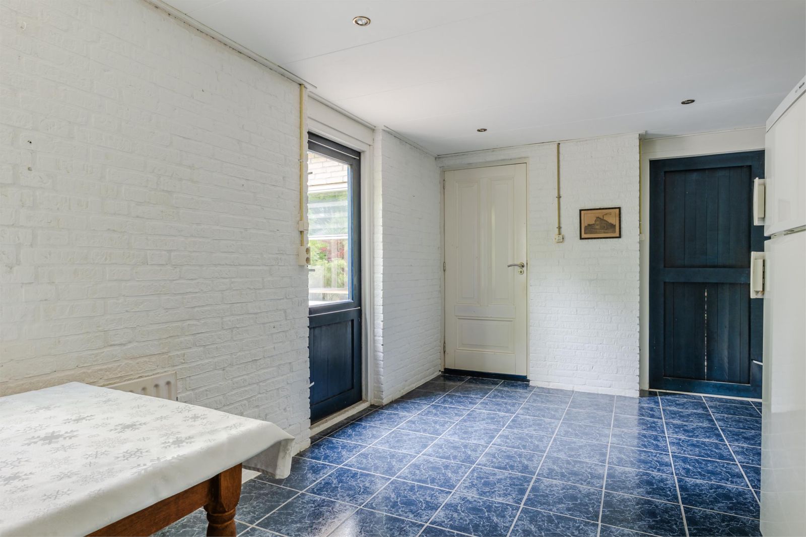 Binnenkomst via de entree met meterkast en toilet. Op de begane grond bevindt zich een ruime slaapkamer, ideaal voor gelijkvloers wonen. De sfeervolle L-vormige woonkamer met open haard biedt directe toegang tot het terras en de tuin. Aangrenzend vind je de keuken en een praktische bijkeuken. De badkamer met douche en wastafel grenst aan de bijkeuken. Via de bijkeuken is er inpandige toegang tot de garage (ca. 3 x 7 m), met daarachter een vrijstaande houten bergschuur (ca. 3 x 6 m), ideaal voor tuingereedschap of hobbyruimte.