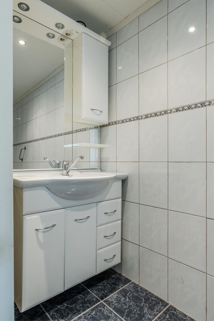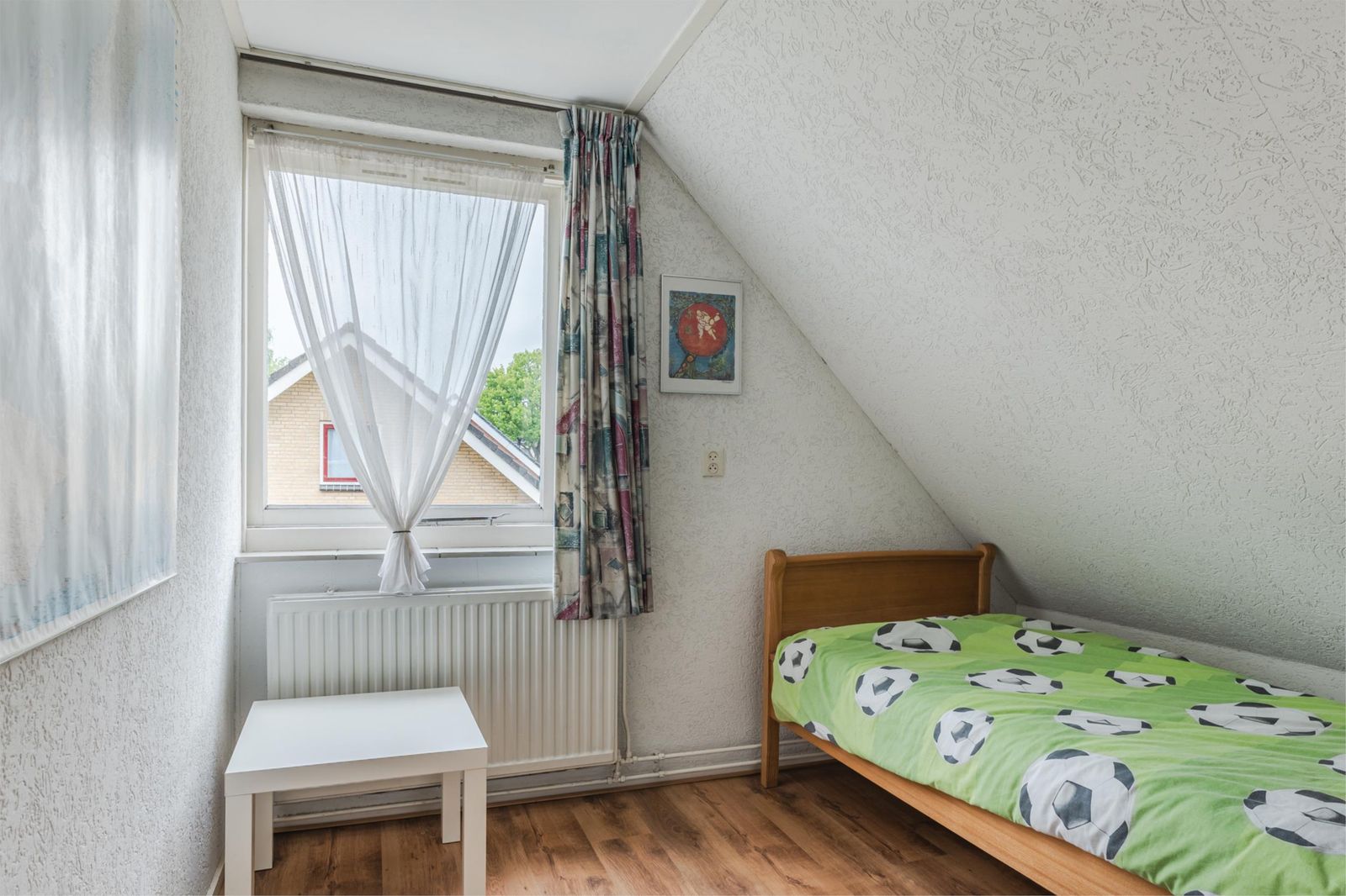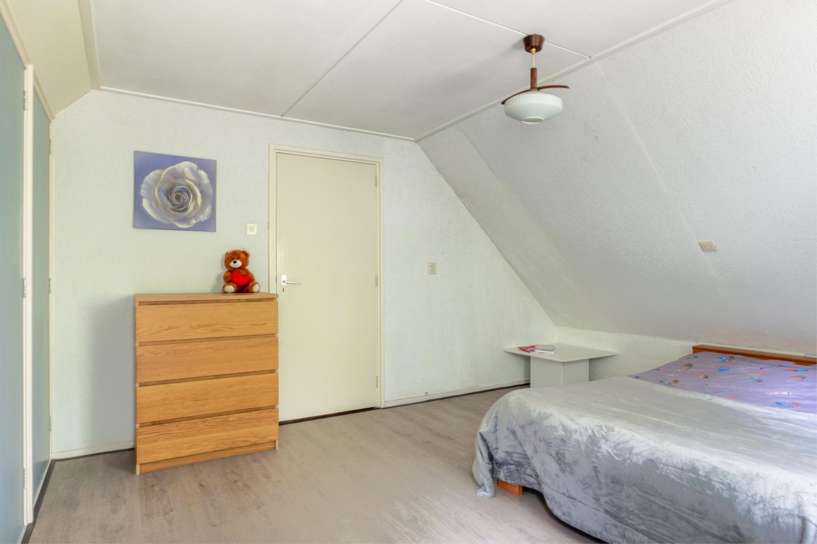 Overloop met vide, drie slaapkamers (waarvan één met vaste kastruimte), en een tweede badkamer voorzien van ligbad, wastafel en toilet. Via een luik is de bergzolder bereikbaar.