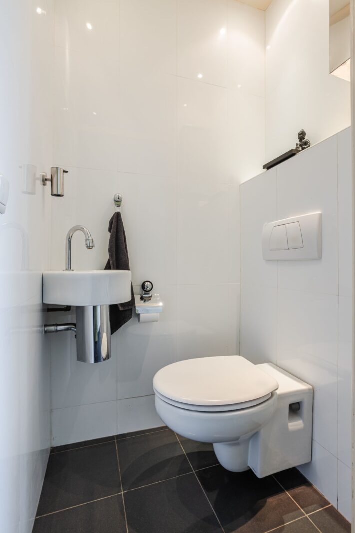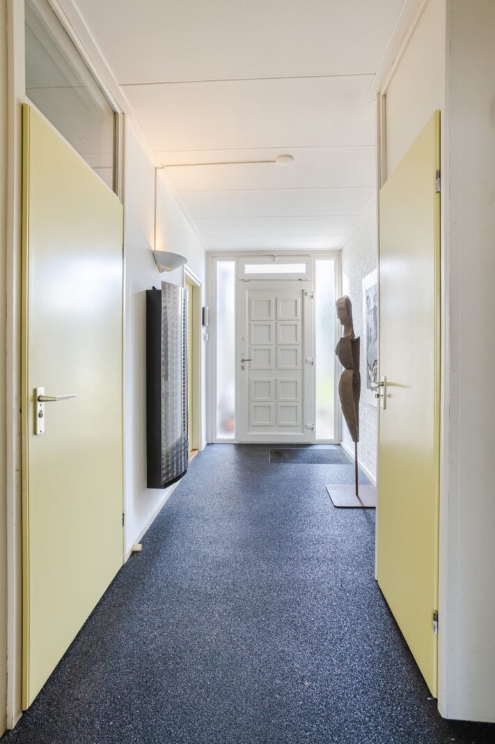 Bij binnenkomst bereik je via de hal de garage, het toilet en de cv-ruimte met garderobe.