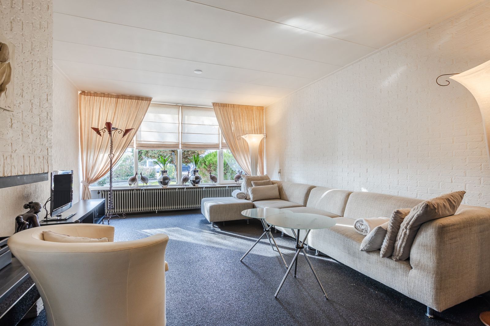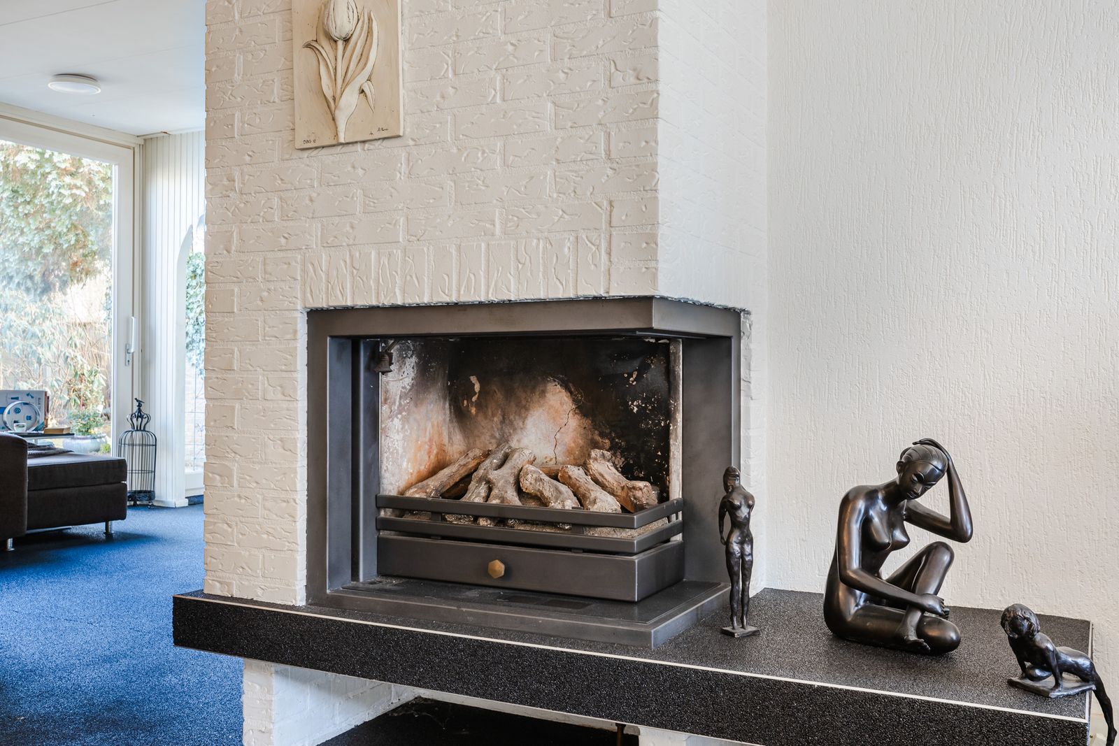 De L-vormige woonkamer vormt het centrale leefgedeelte. Grote ramen en een schuifpui verbinden binnen direct met de tuin. Er is volop plaats voor een royale zithoek bij de gas open haard en een ruime eethoek met zicht op het groen. De semi-open keuken heeft eveneens een schuifpui naar buiten en is praktisch ingericht met onder andere vaatwasser, koelkast, gaskookplaat met wok brander en oven-magnetroncombinatie.