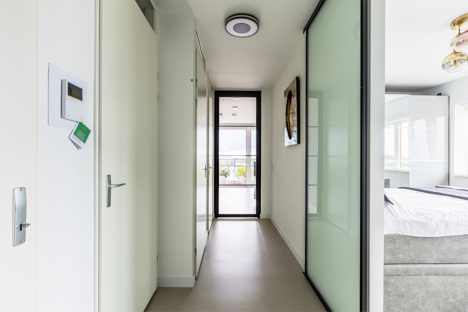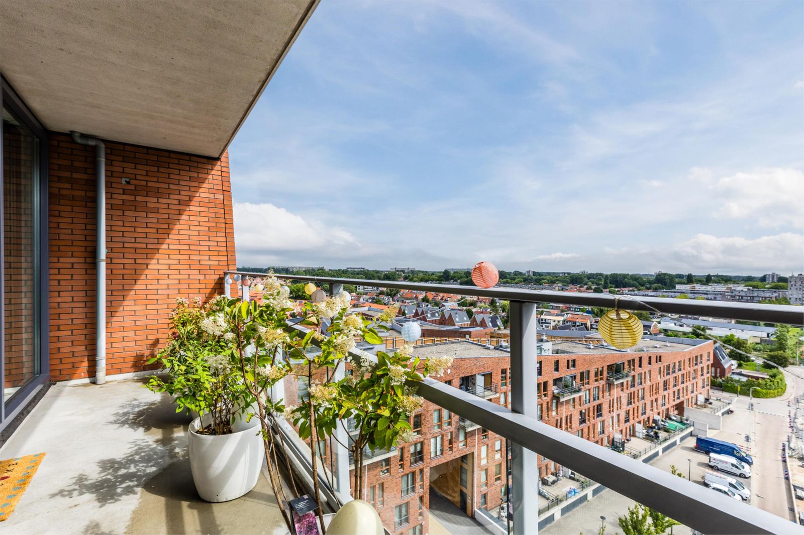 Tiende verdieping: Entree in de ruime hal met toegang tot alle vertrekken. Er is een berging met wasmachine-aansluiting, cv-opstelling en WTW-unit. De woonkamer aan de oostzijde heeft veel lichtinval en biedt toegang tot het balkon. Aansluitend vind je de moderne eilandkeuken, compleet met inductiekookplaat (met geïntegreerde afzuiging), oven, koelkast, vaatwasser én klimaatkast. De ruime slaapkamer ligt aan de andere zijde en heeft fraai uitzicht. De luxe badkamer is voorzien van een inloopdouche, natuurstenen wastafel en designradiator; het toilet is separaat en in dezelfde stijl uitgevoerd.