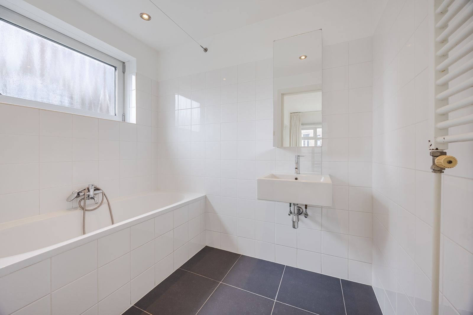 Direct aan de hal/gang bevindt zich de slaapkamer en de badkamer. De badkamer is uitgerust met een ligbad en wastafel. Aangrenzend aan de slaapkamer, bevindt zich het balkon op het zuiden, waardoor je hier heerlijk kunt genieten van de zon.