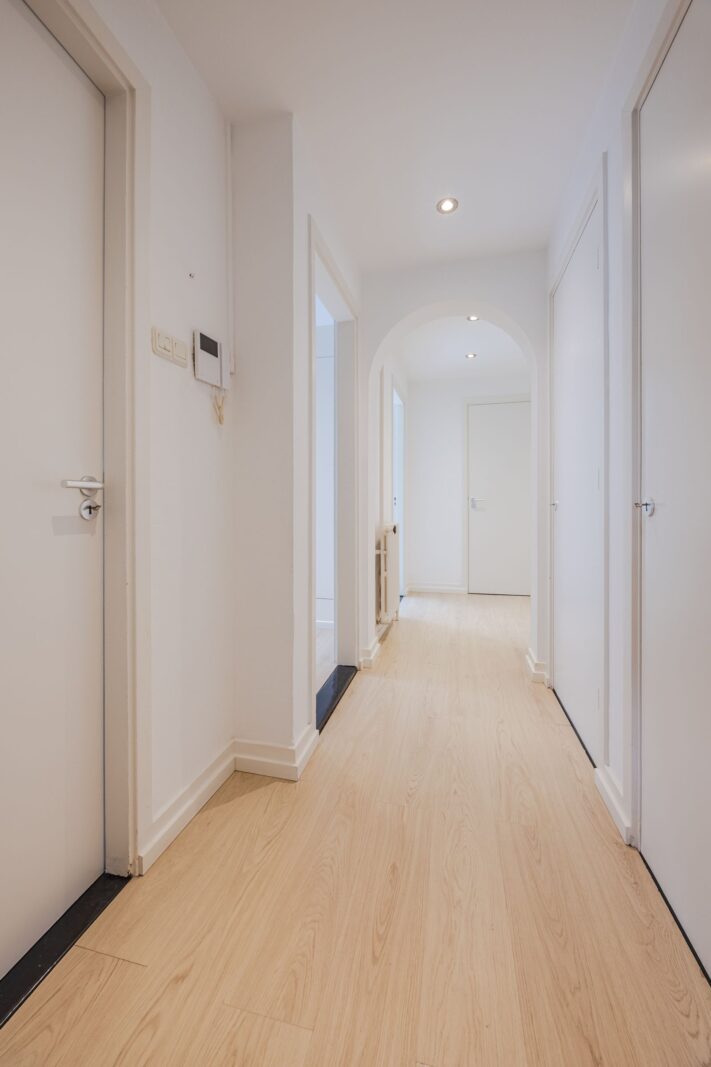 Bij binnenkomst kom je in de hal/gang die is voorzien van 3 ruime en praktische inbouwkasten, waarvan 1 aansluitingen voor wasmachine en droger heeft. In de hal bevindt zich tevens een toilet met separate wasbak.