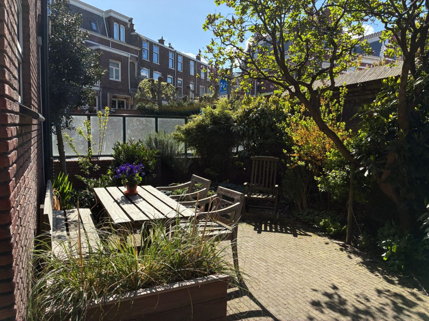Het appartement beschikt bovendien over een eigen afsluitbare berging in de kelder van het complex en in de gezamenlijke tuin is een ruime afgesloten fietsenstalling.