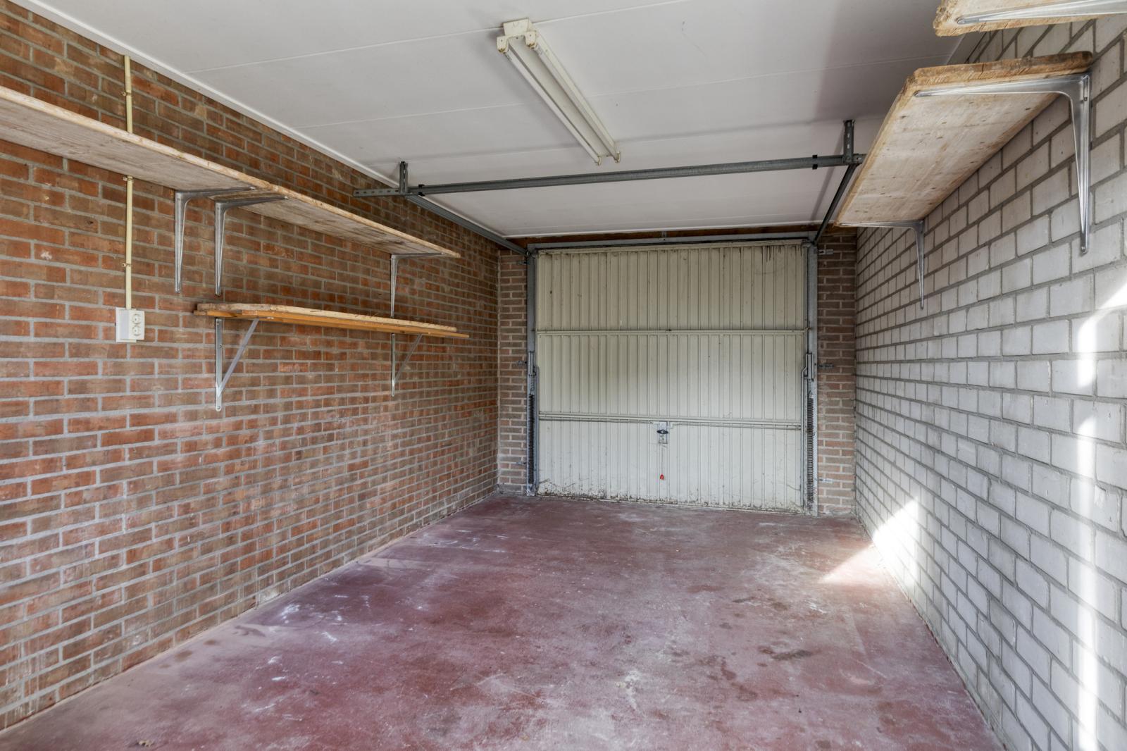 De achtertuin biedt veel privacy en is omsloten met schuttingen. Naast de woning bevindt zich de garage.