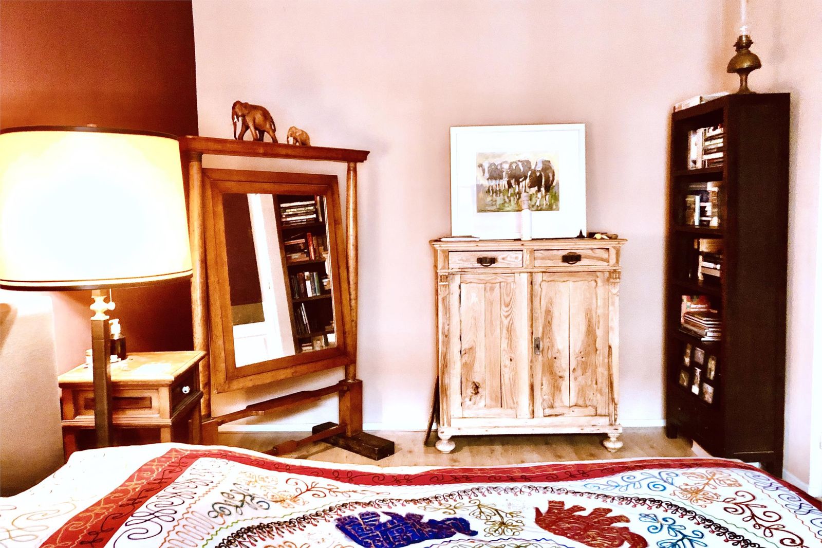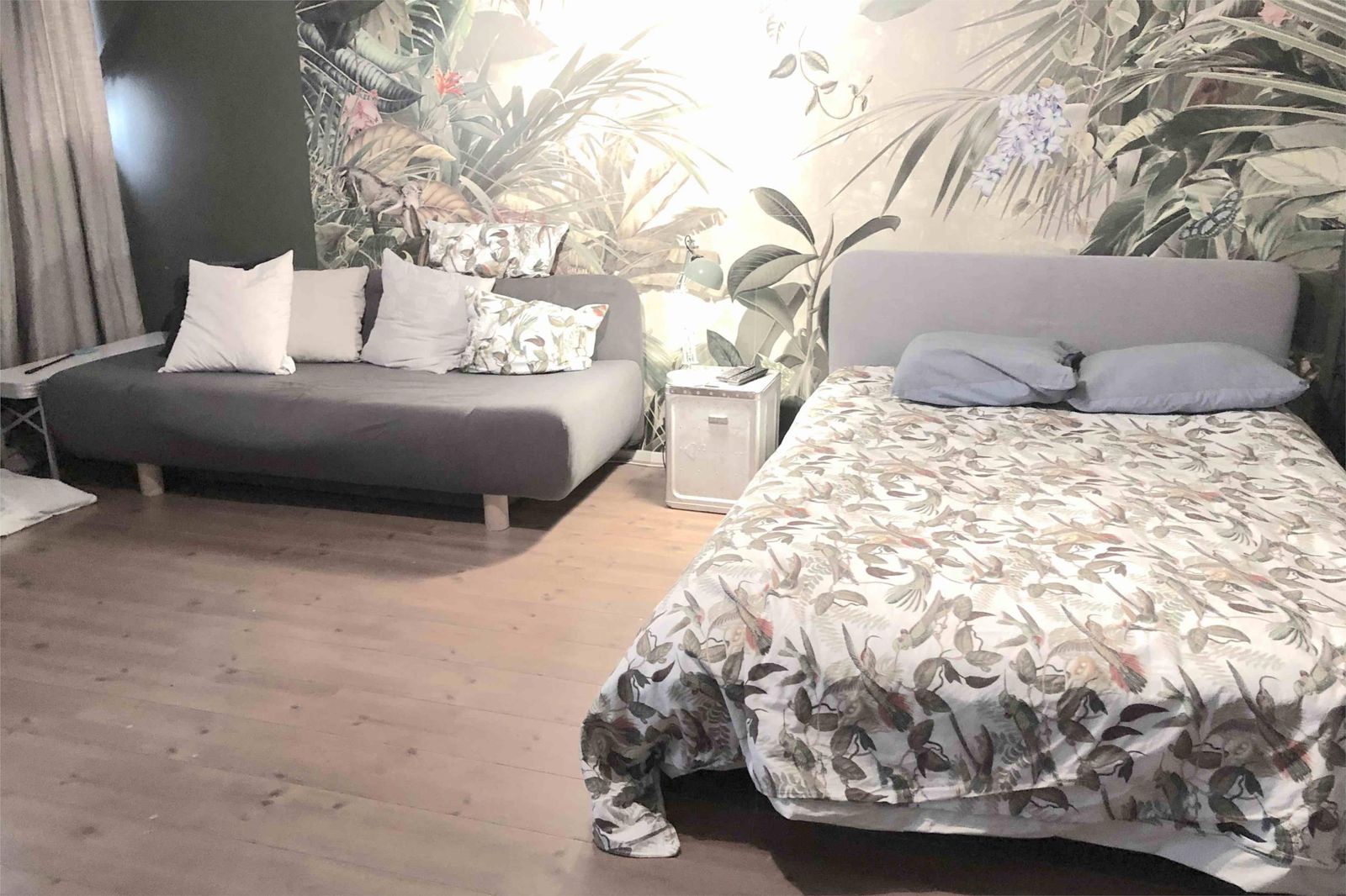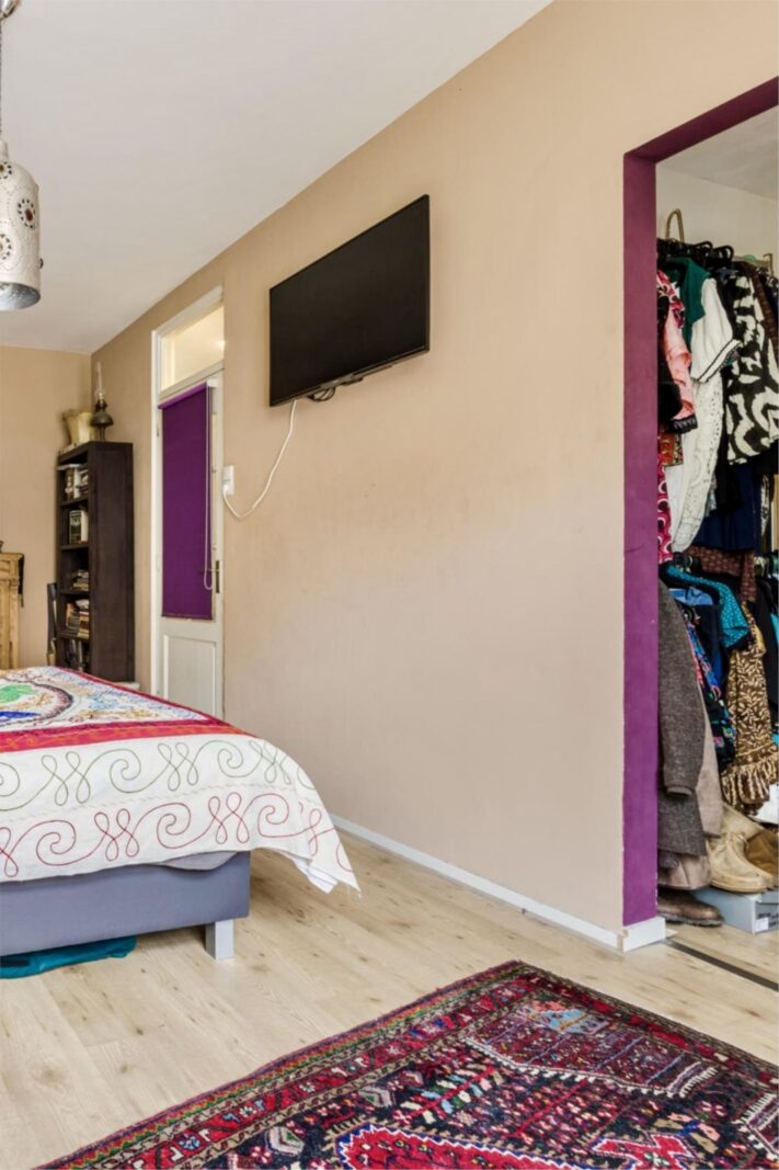 Aan de straatzijde ligt een ruime slaapkamer die is uitgebreid met een zijkamer,