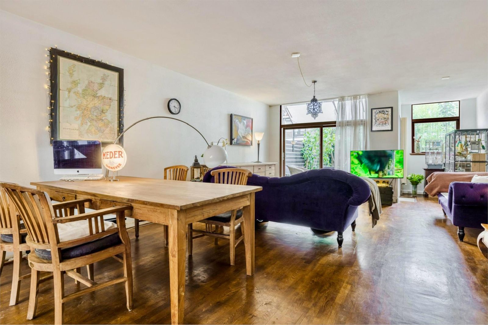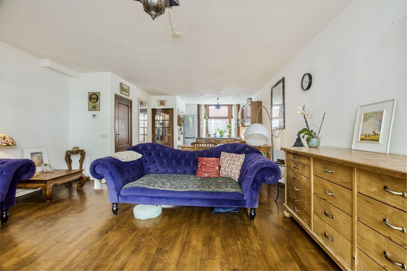 De woonkamer strekt zich uit over de volle diepte en is voorzien van een parketvloer,