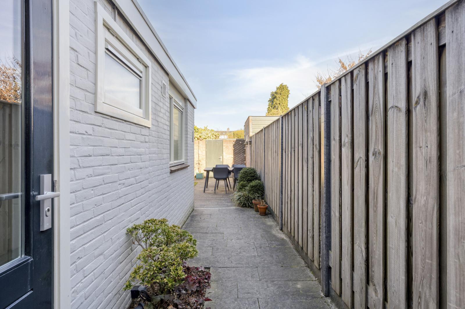 -Ruime achtertuin met berging en achterom