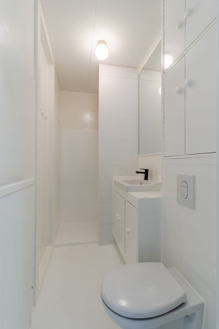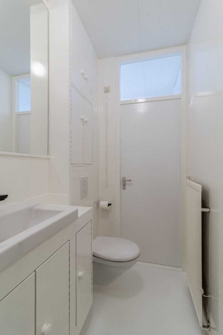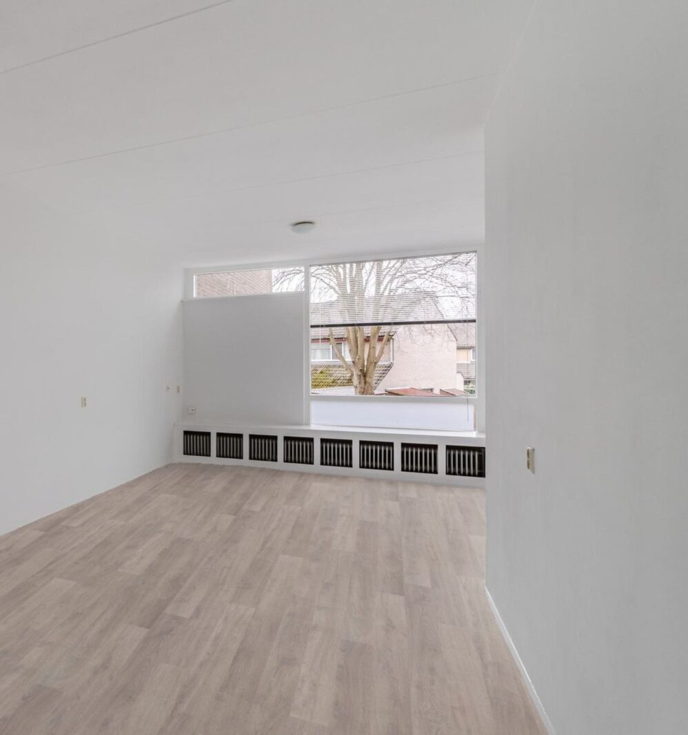 De woonkamer is ontworpen met oog voor licht en ruimte. Grote ramen zorgen voor een natuurlijke lichtinval die de kamer een open en uitnodigend gevoel geven. Dit maakt het een ideale plek om te ontspannen of gasten te ontvangen. Er is voldoende ruimte voor een zithoek, eettafel en bureau, wat het appartement ook geschikt maakt als thuiswerkplek.