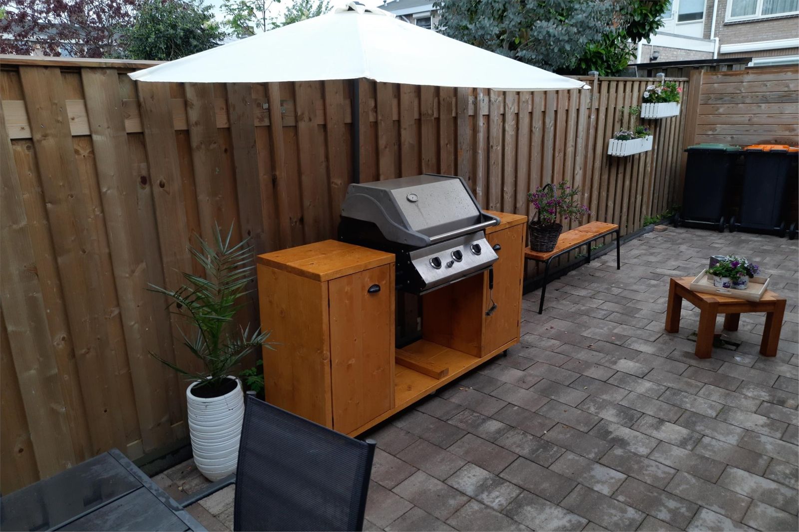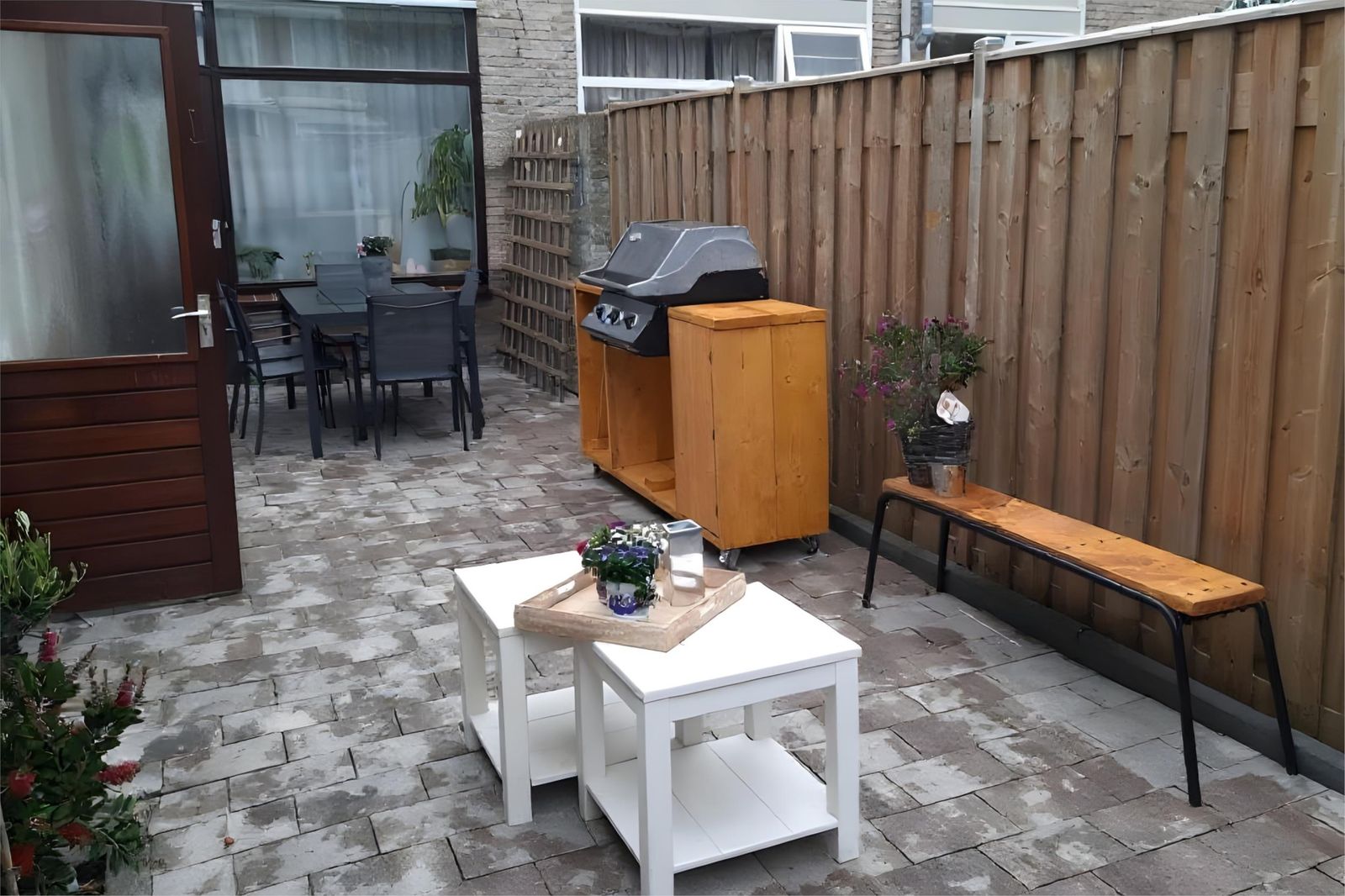 Via de woonkamer, of de bijkeuken, is een onderhoudsvriendelijke achtertuin bereikbaar; met volledige beschutting rondom, en via achter ingang, bereik je de tuin gemakkelijk via het pad en de straat aan de zijkant van de woning; via de tuin is ook een grote berging te bereiken, geschikt voor bijv. fietsen, klus materialen of tuinmeubilair. Ook zijn er water aansluitingen rondom de woning, zoals in de: Voortuin, Achtertuin, Bijkeuken, en voor de CV ketel, om de radiatoren via 1 punt bij te vullen.