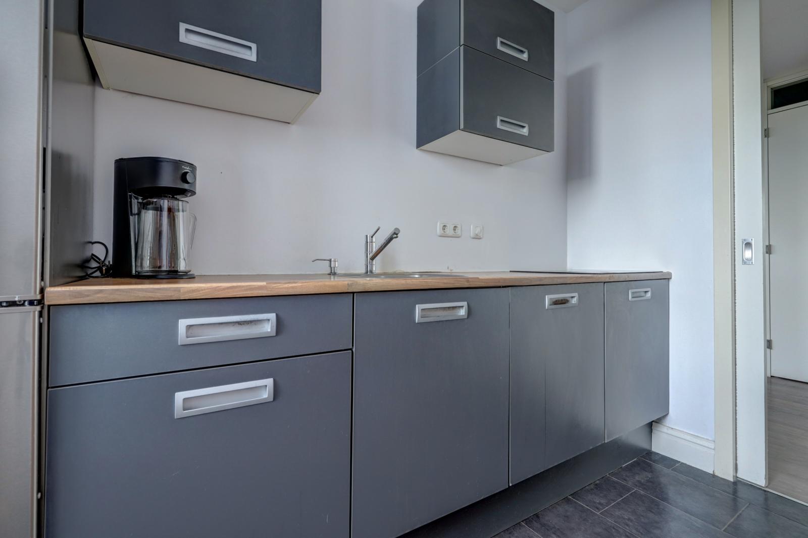 De keuken is strak en praktisch ingericht met een antracietkleurig design en een warm houtstructuur werkblad. Hier bereid je moeiteloos een snelle maaltijd of uitgebreid diner. De twee slaapkamers bieden volop mogelijkheden: een comfortabele master bedroom en een extra kamer die je naar wens kunt gebruiken als werkkamer, logeerkamer of juist als rustige hobbyruimte.