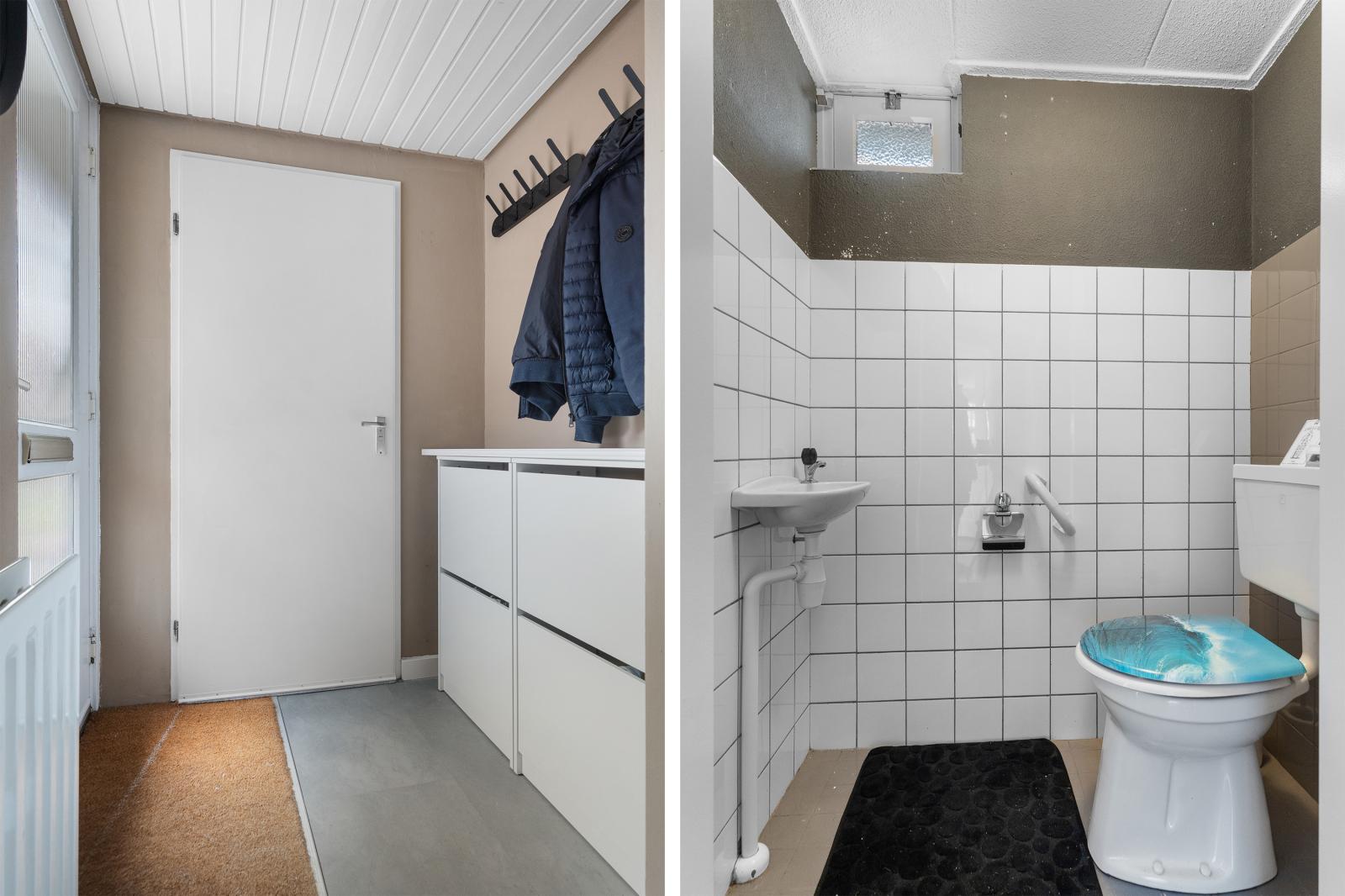 Via de voortuin bereik je de entree van de woning. Hier bevinden zich het toilet, de meterkast en de toegang tot de woonkamer. Bij binnenkomst in de woonkamer valt meteen de prettige sfeer op. De woonkamer is licht en ruim opgezet en biedt voldoende plek voor een comfortabele en gezellige zithoek waar je heerlijk kunt ontspannen. Dankzij de grote raampartijen aan de voor- en achterzijde komt er veel natuurlijk licht naar binnen, wat zorgt voor een warme en uitnodigende woonomgeving.