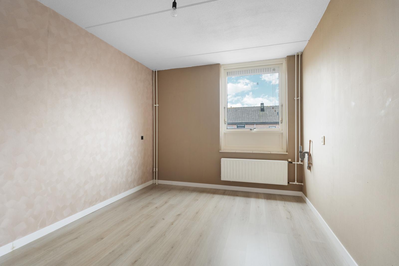 Via de trapopgang bereik je de eerste verdieping. Hier vind je maar liefst drie ruime slaapkamers, waardoor de woning perfect is voor gezinnen, thuiswerkers of iedereen die extra ruimte kan gebruiken. De kamers zijn stuk voor stuk licht en praktisch in te delen. De badkamer is eveneens op deze verdieping te vinden. De badkamer is praktisch ingedeeld en voorzien van een douche, wastafel en toilet.