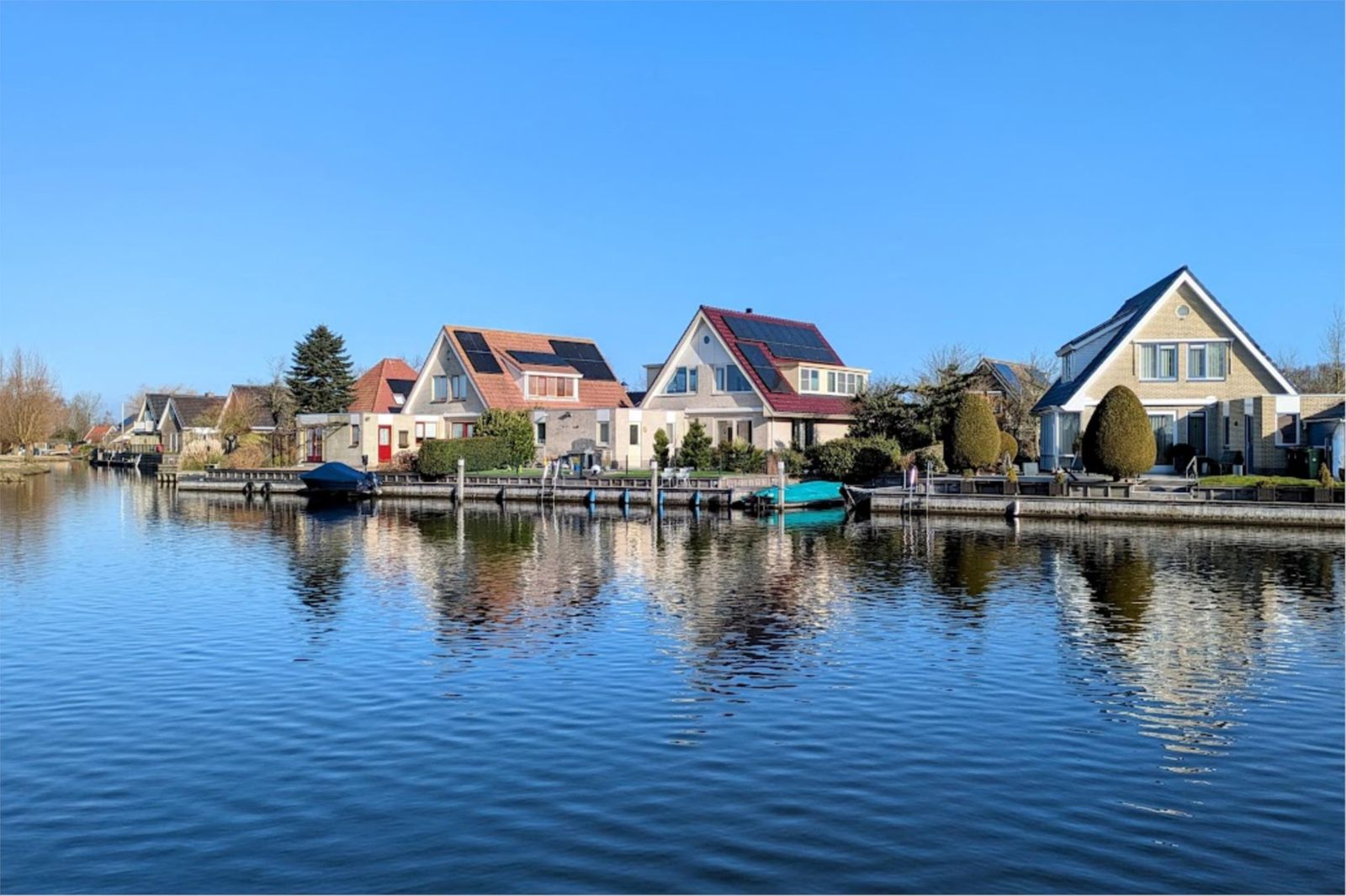 - aan rustige weg, aan vaarwater, in woonwijk, vrij uitzicht