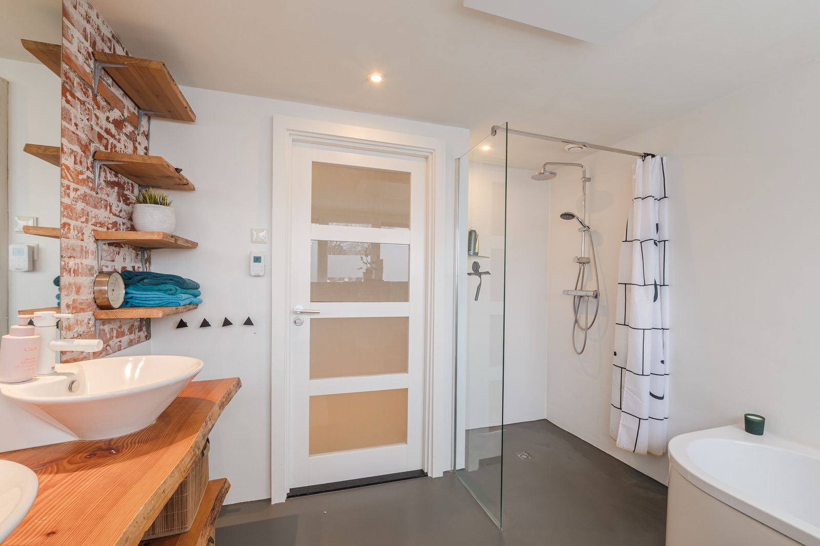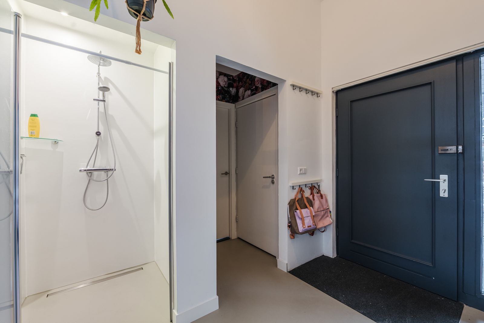 Weer terug in de hal vindt u een regendouche, apart hangtoilet en een slaapkamer met wastafel (12m2). Deze ruimtes samen zorgen voor de optie van levensloopbestendig wonen.