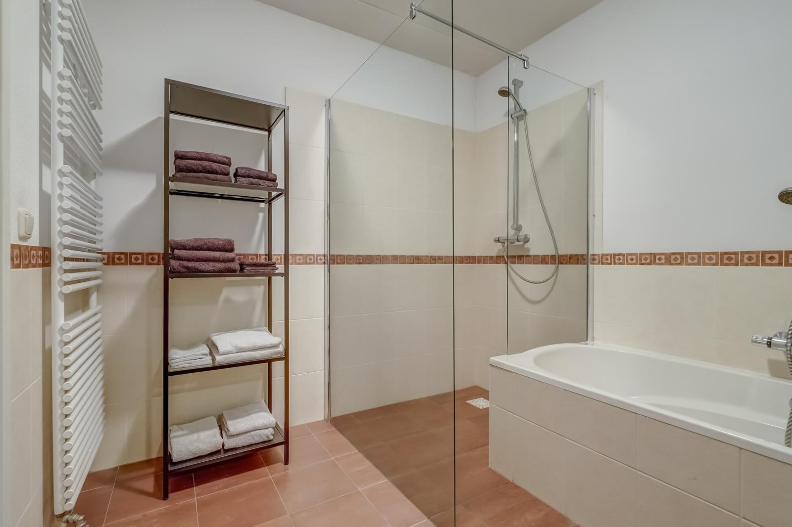 Het appartement beschikt over twee ruime slaapkamers. De royale badkamer is compleet uitgerust met een ligbad, inloopdouche, wastafel in meubel en een handdoekradiator _ perfect om helemaal tot rust te komen na een drukke dag.