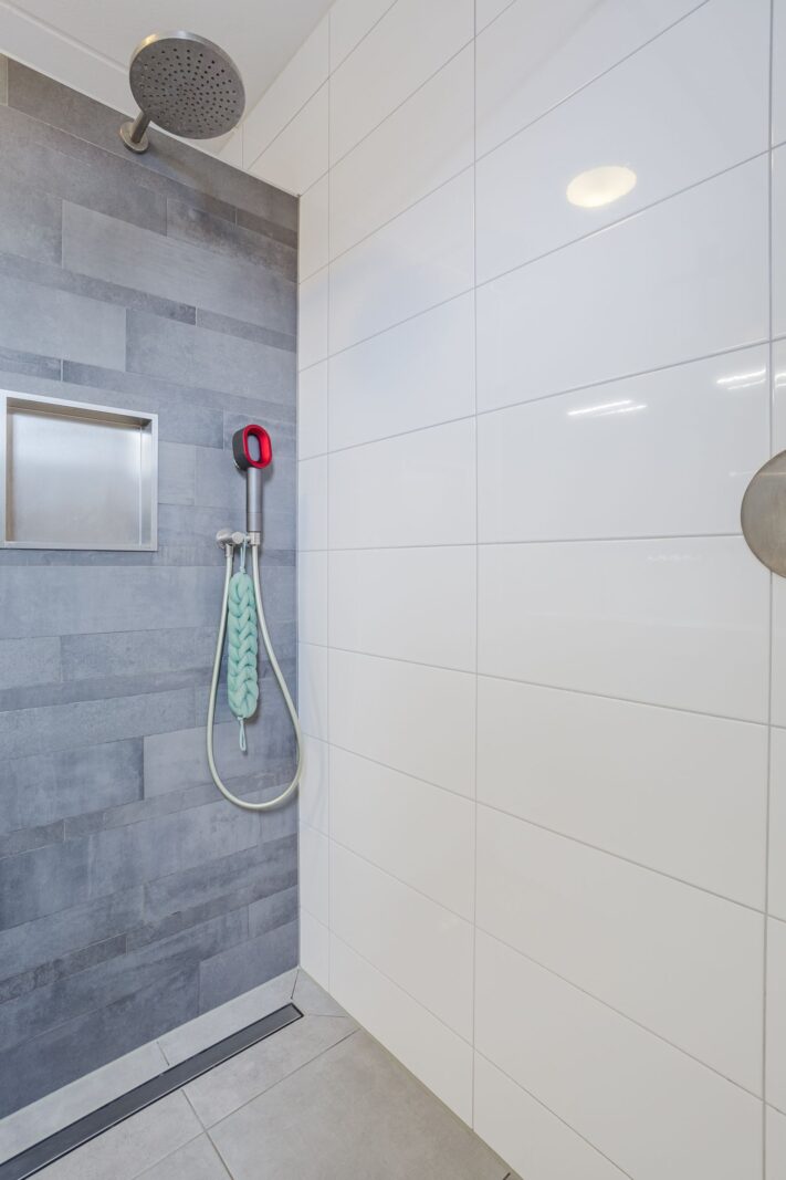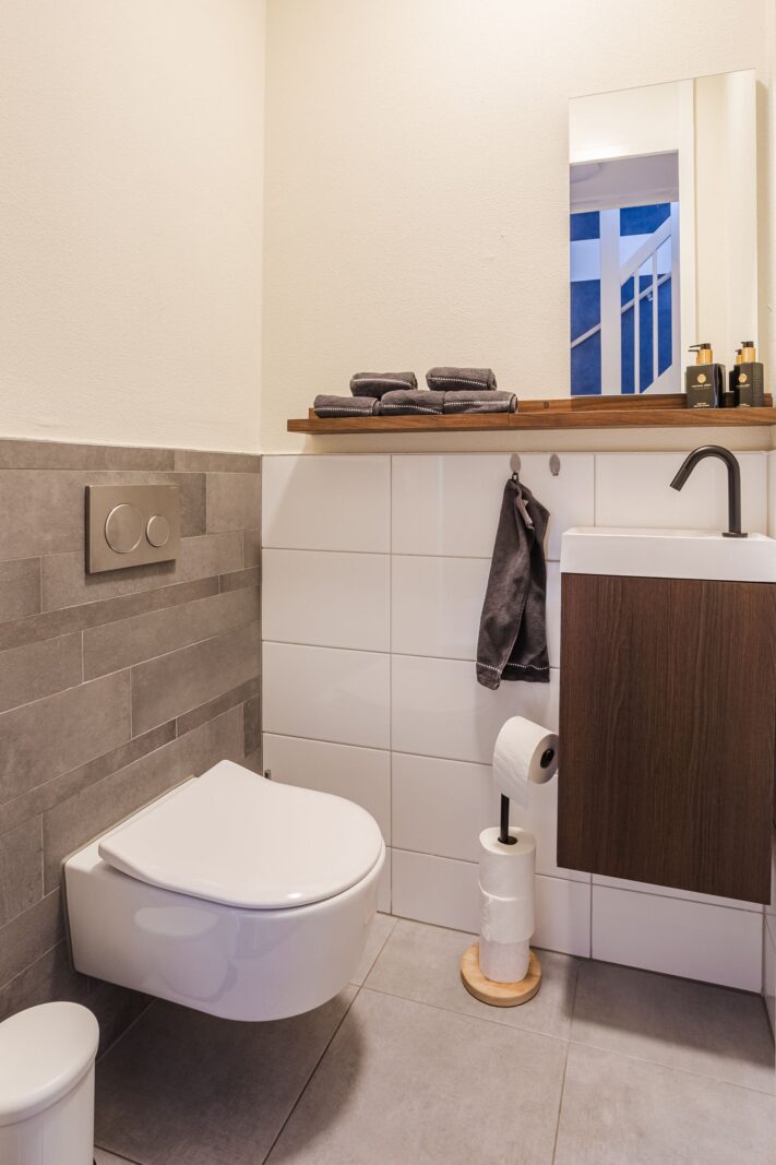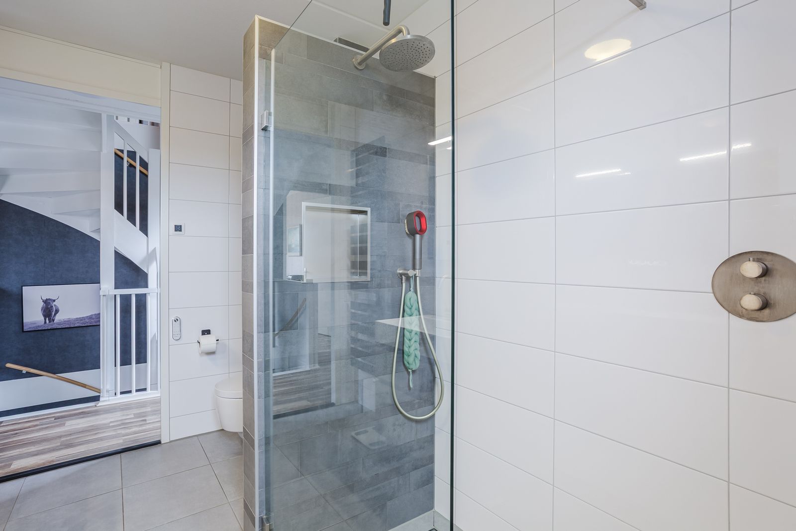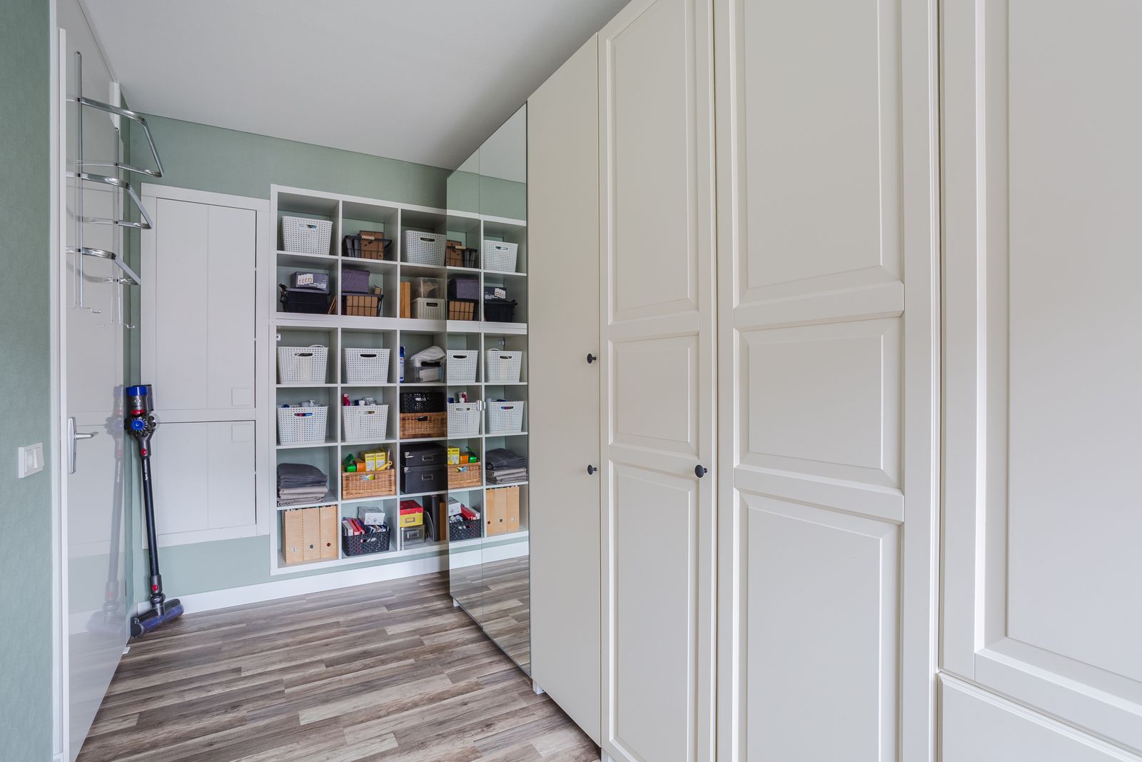 Op de eerste verdieping bevinden zich drie volwaardige slaapkamers. De ruime hoofdslaapkamer met inbouwkast en de derde slaapkamer, eveneens voorzien van een inbouwkast, bieden optimaal gebruiksgemak en praktische bergruimte. De moderne badkamer straalt luxe uit en beschikt over een inloopdouche, een toilet met bidet, dubbele wastafel met meubel en een verwarmde spiegel. Een plek waar elke dag ontspannen begint.