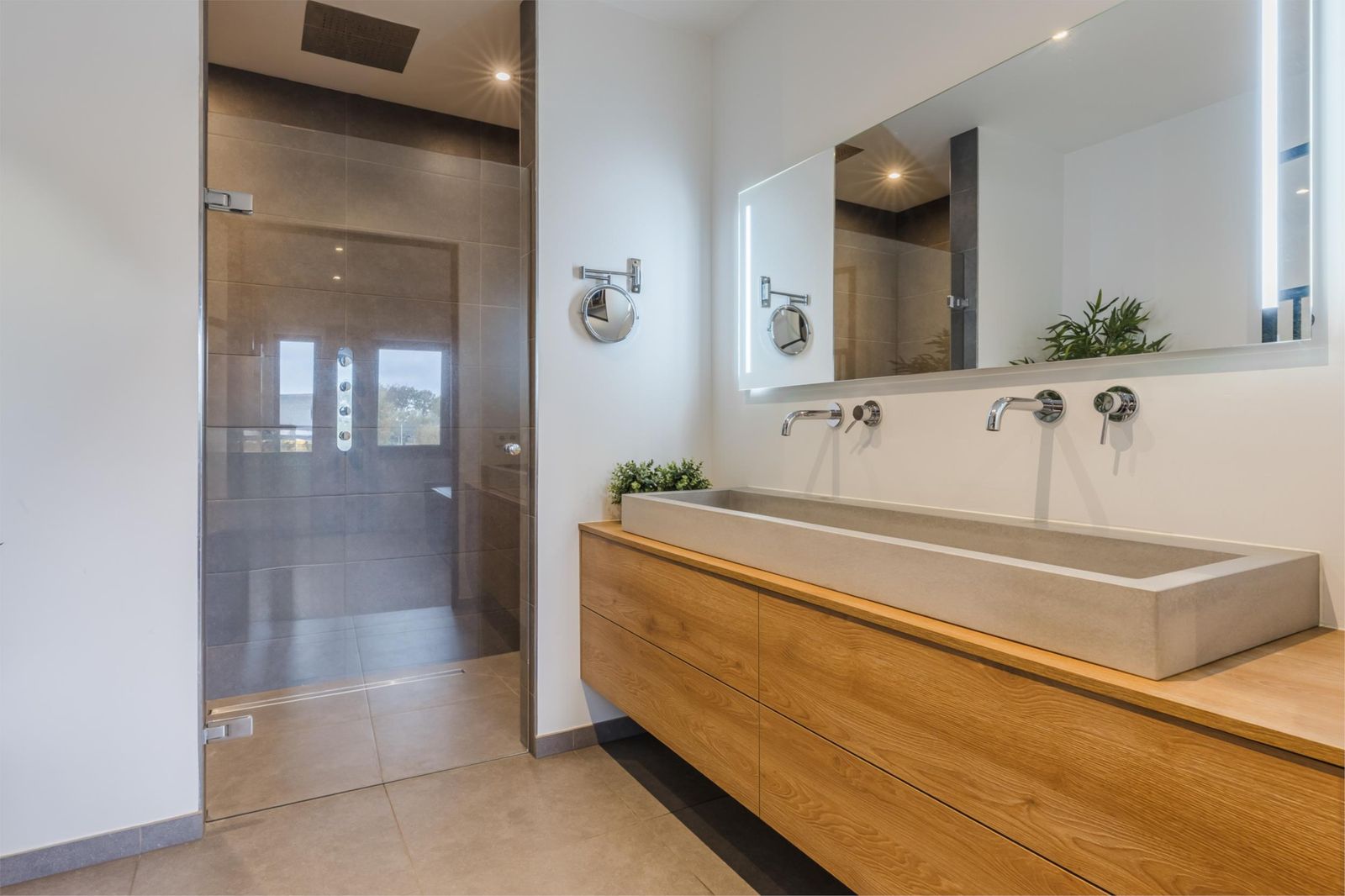Op de eerste verdieping bevinden zich drie royale slaapkamers, twee luxe badkamers en een ruime kleedkamer. De combinatie van ruimte, licht en comfort maakt dit de perfecte verdieping voor een gezin dat graag royaal woont.