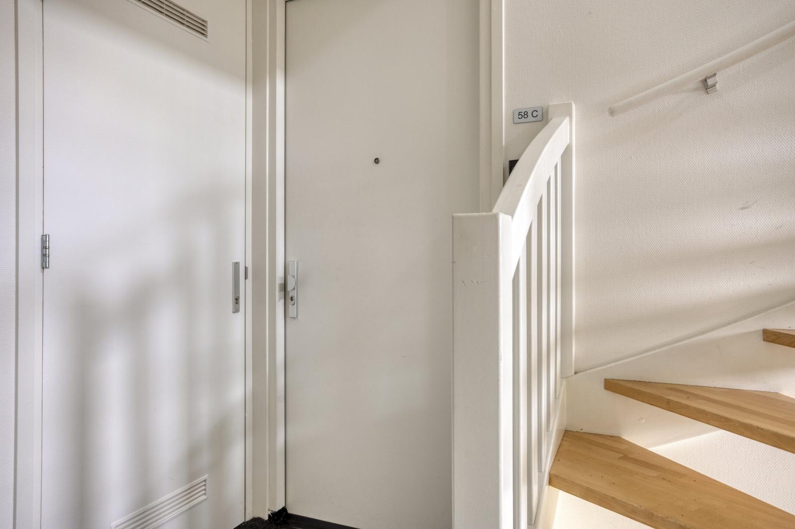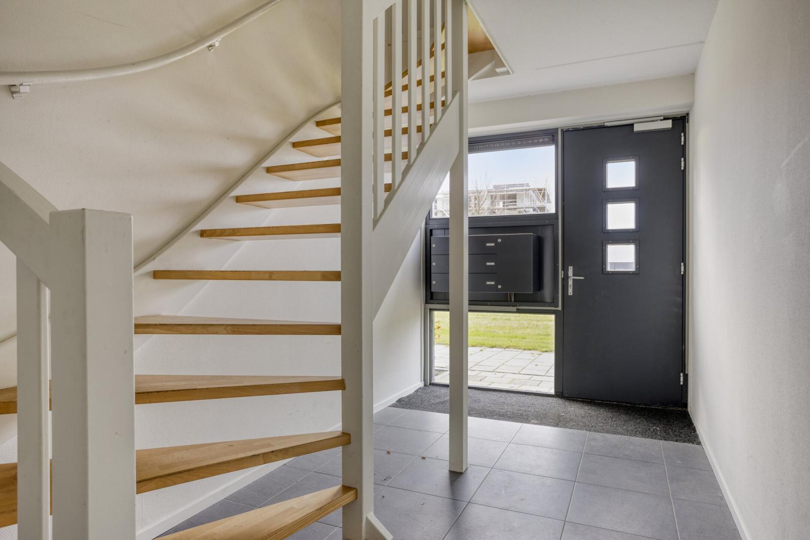 Centraal afgesloten hal met brievenbussen, bellentableau en trappenhuis. Via de trap is het appartement op de eerste verdieping bereikbaar met op de overloop de meterkast (glasvezel aanwezig)