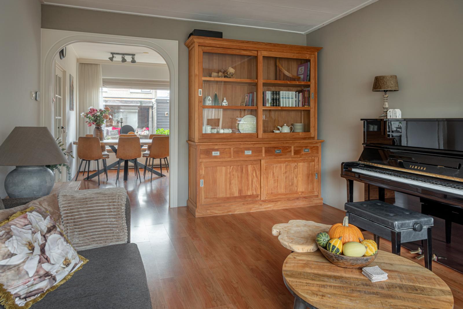 Achter de bijkeuken is nog een extra bijkeuken voor opslag, of bijvoorbeeld om, indien je via de tuin binnenkomt, de jassen en schoenen uit te doen. De voorkamer is eveneens ruim en kun je op meerdere manieren indelen. Ook hier komt veel licht naar binnen via de grote ramen aan de voorzijde.