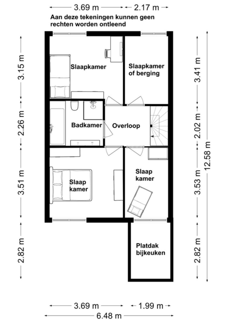 Via de trap naar de verdieping. Hier zijn 4 slaapkamers waarvan er op dit moment eentje dienstdoet als bergruimte (ca. 7,5 m²). De andere 3 slaapkamers meten ca. 12, 7 en 13 m². Dan de badkamer, dit is denk ik de eyecatcher van het huis. Deze is in 2020 verbouwd en groter geworden. Een bad, een inloopdouche, een toilet, een dubbele wastafel en heel veel aandacht voor sfeer en details. Echt een plaatje. Ben je nieuwsgierig? Ik ben benieuwd naar jullie reacties.