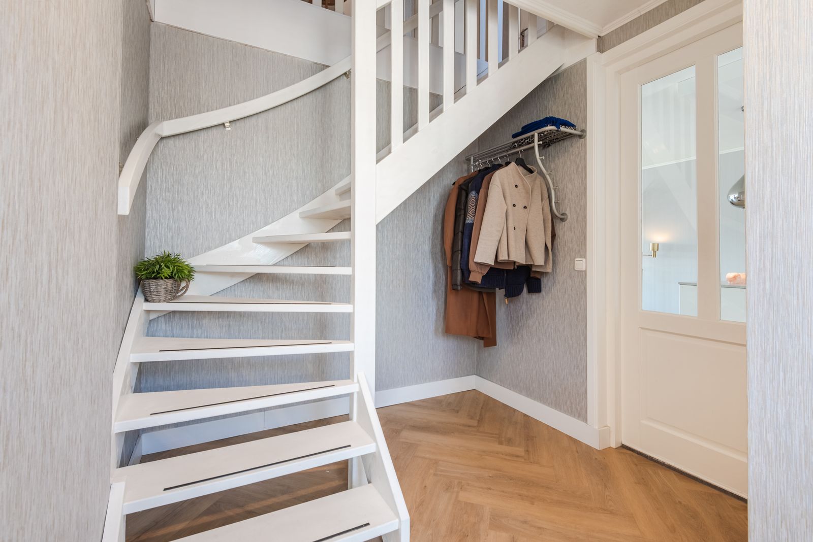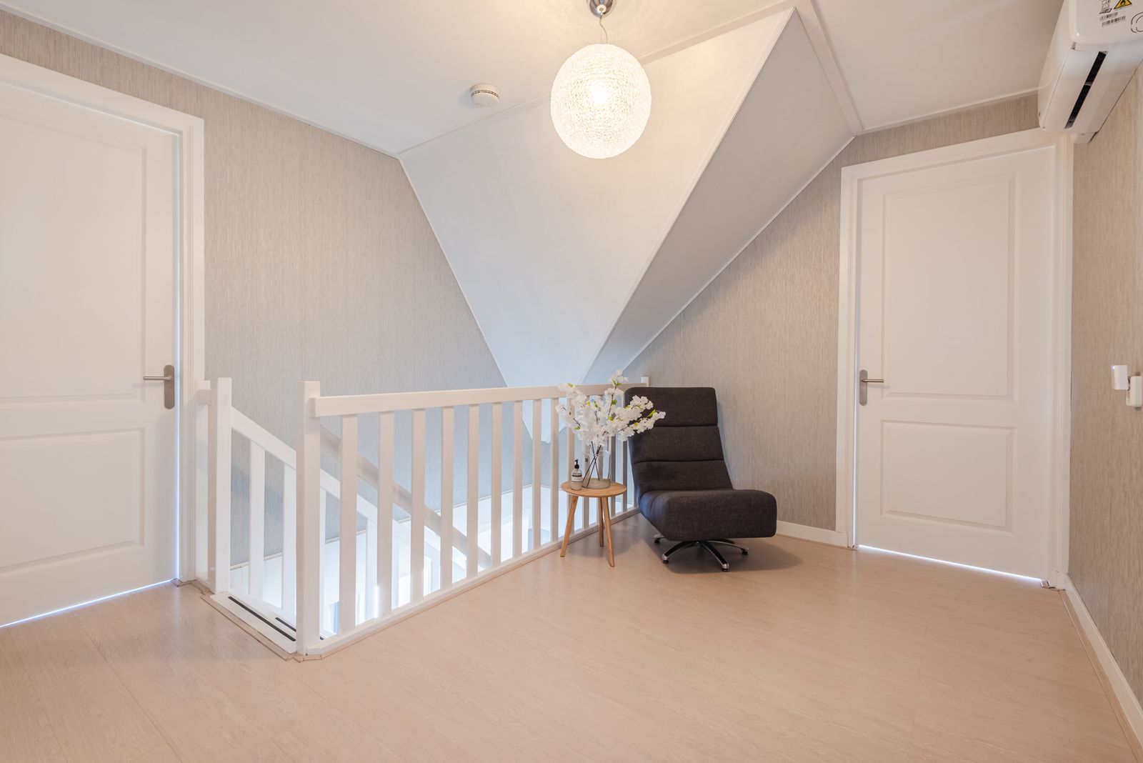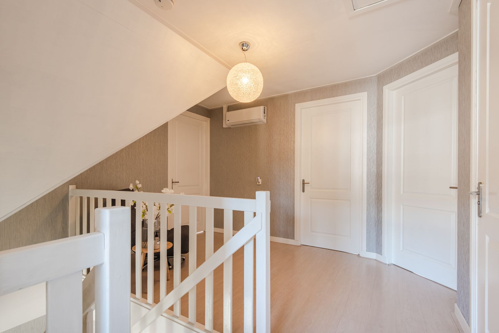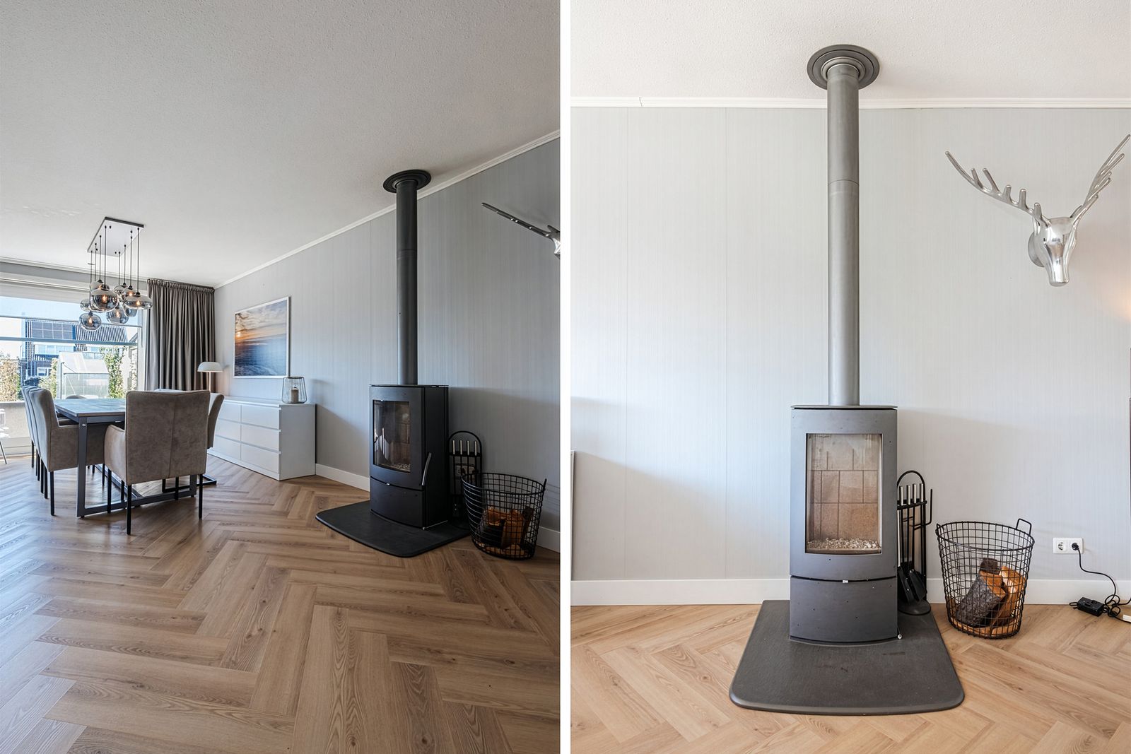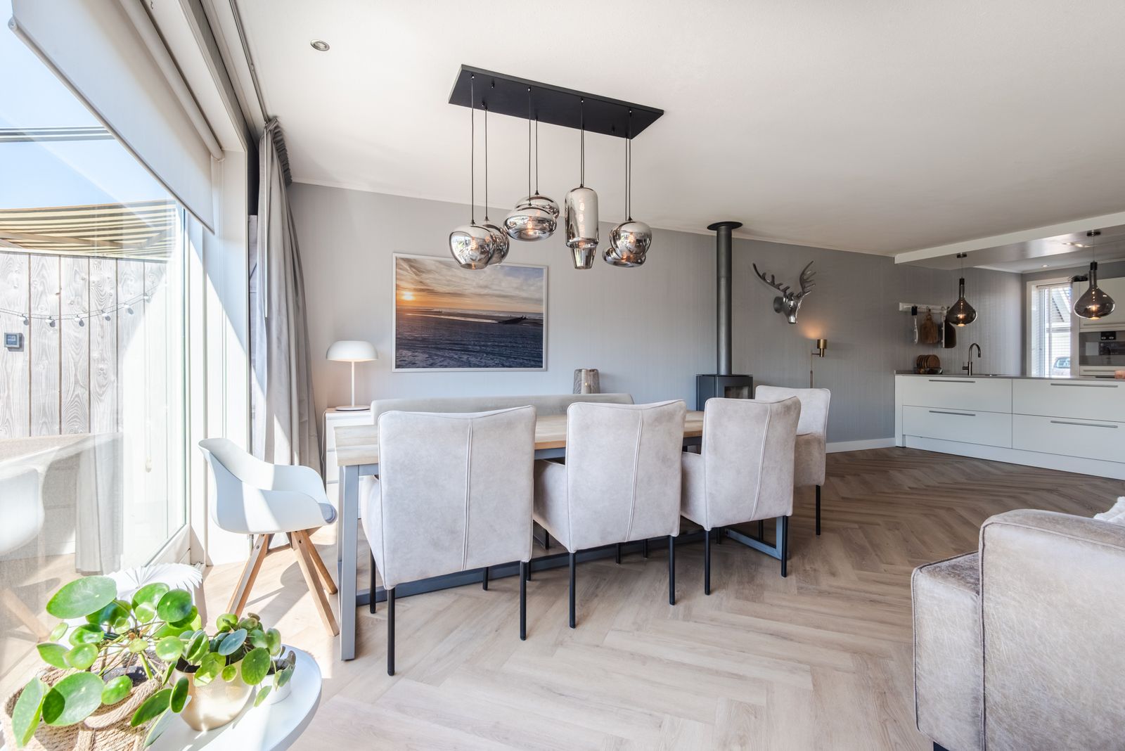 De woning voelt direct licht en rustig aan, met een moderne Scandinavische uitstraling, paneeldeuren en een visgraat PVC-vloer uit 2024 die zorgt voor een warme en stijlvolle basis. De brede indeling en de grote raampartij zorgen voor een verrassend ruimtelijk en licht gevoel. Het kenmerkende houtwerk aan de buitenzijde is in 2025 opnieuw geschilderd en draagt bij aan de verzorgde uitstraling van de woning.