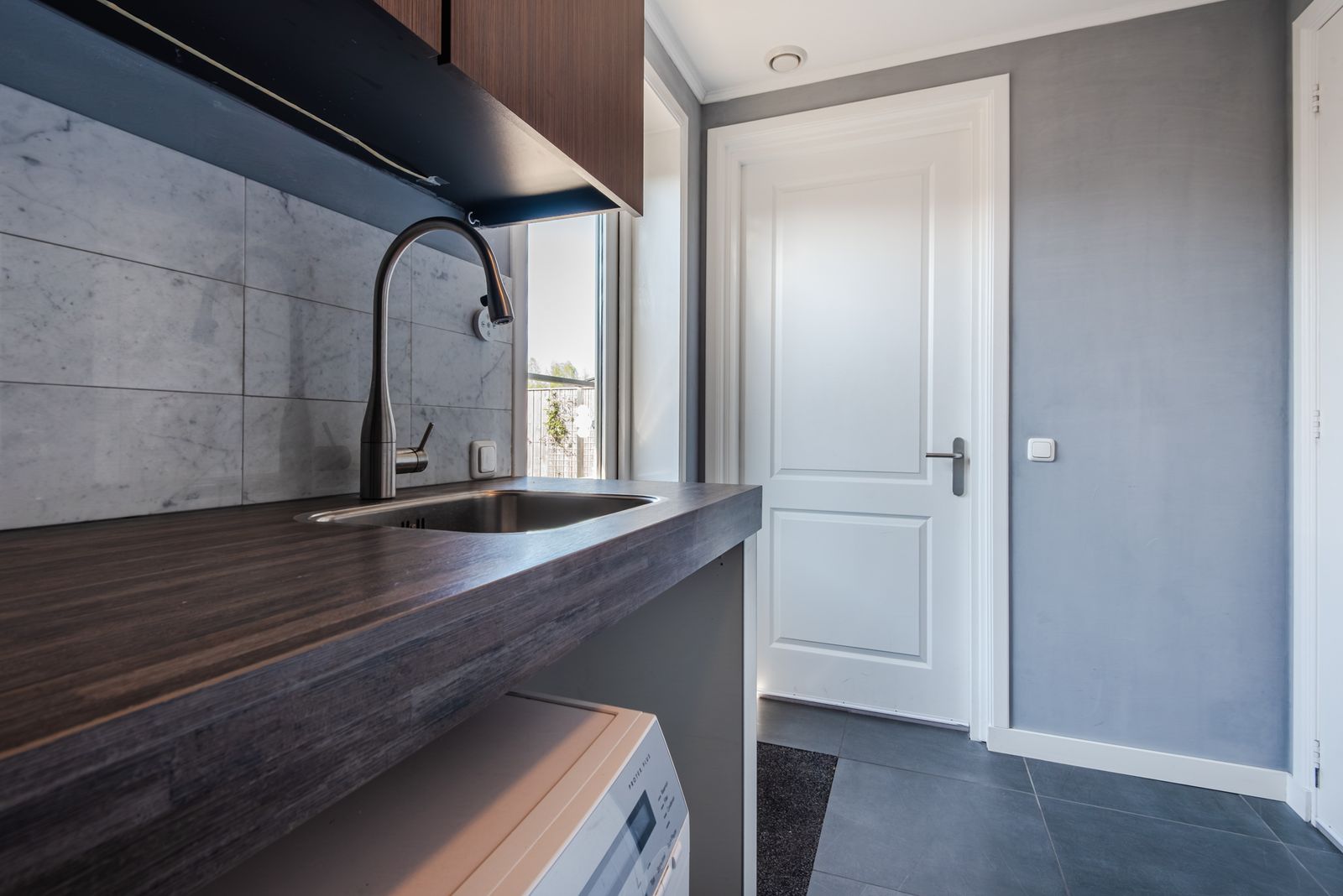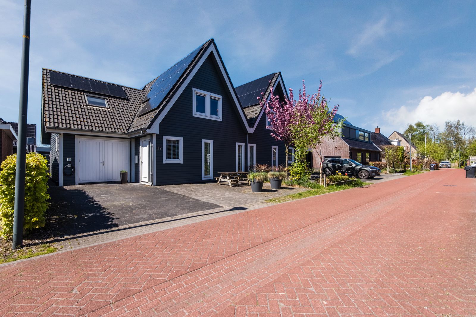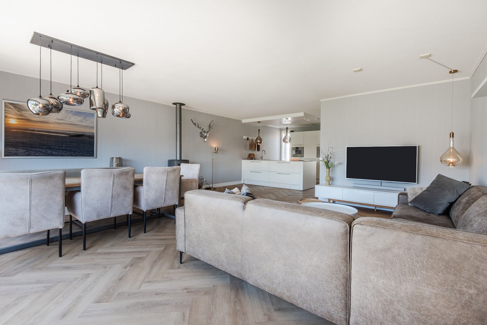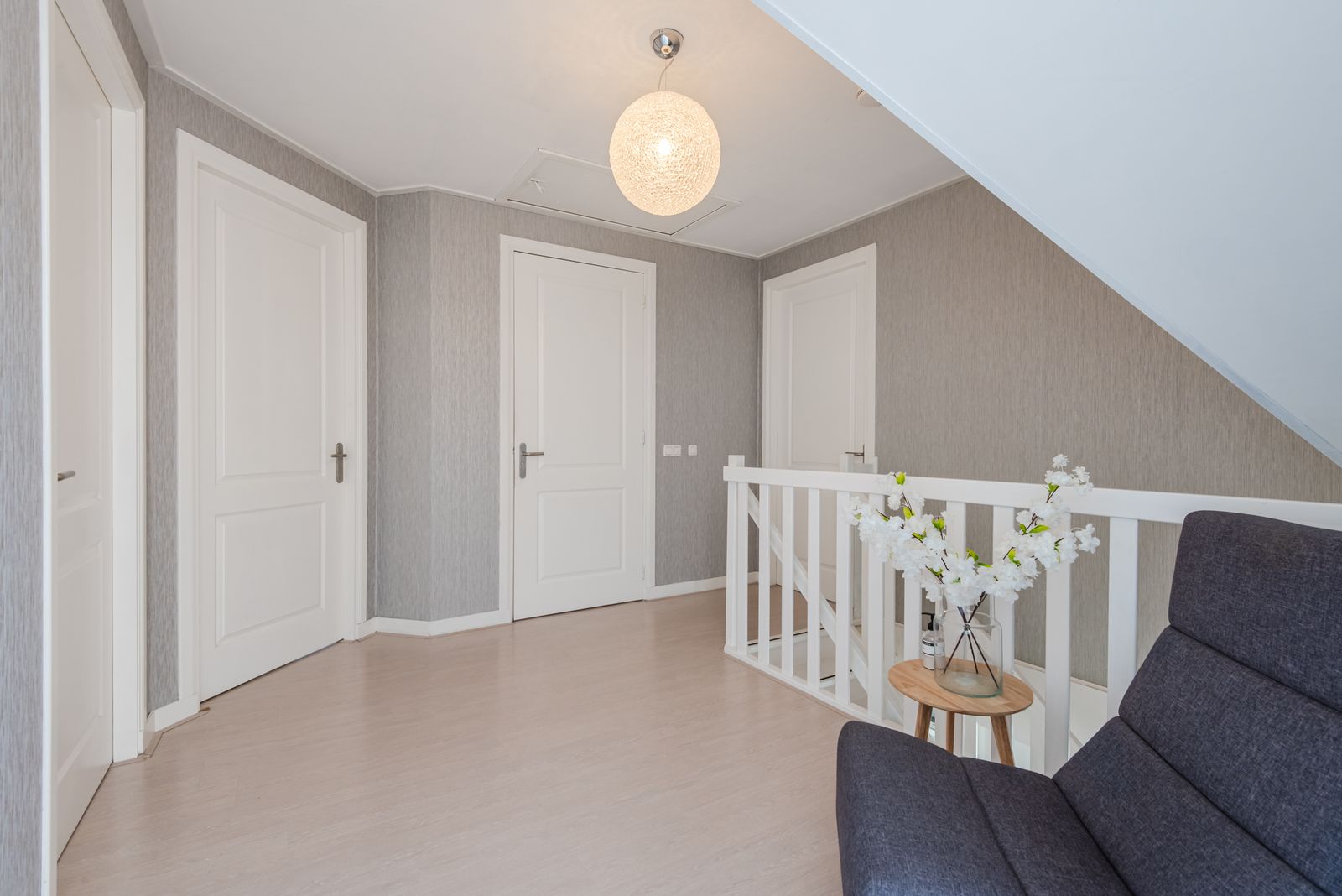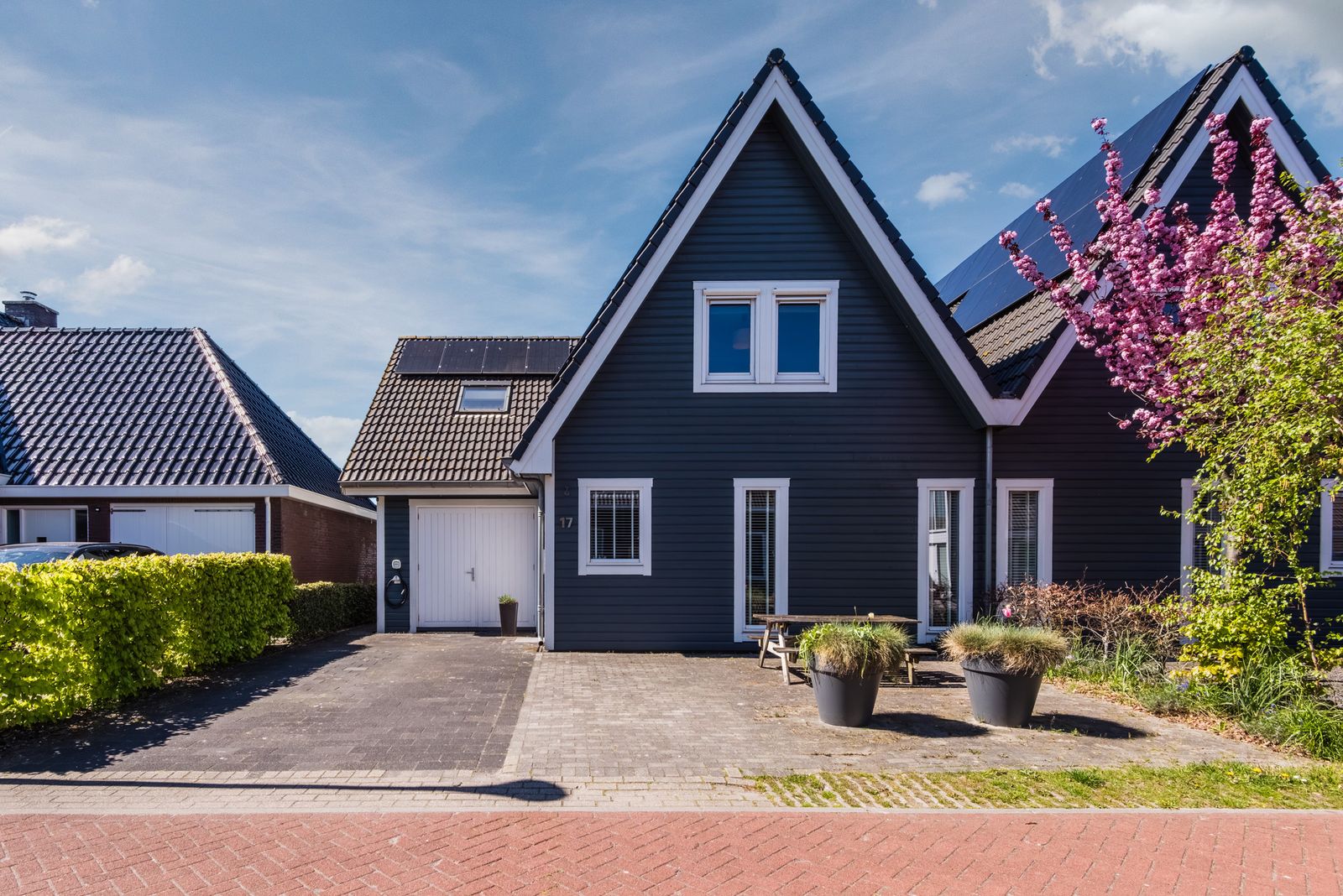 De woning voelt direct licht en rustig aan, met een moderne Scandinavische uitstraling, paneeldeuren en een visgraat PVC-vloer uit 2024 die zorgt voor een warme en stijlvolle basis. De brede indeling en de grote raampartij zorgen voor een verrassend ruimtelijk en licht gevoel. Het kenmerkende houtwerk aan de buitenzijde is in 2025 opnieuw geschilderd en draagt bij aan de verzorgde uitstraling van de woning.