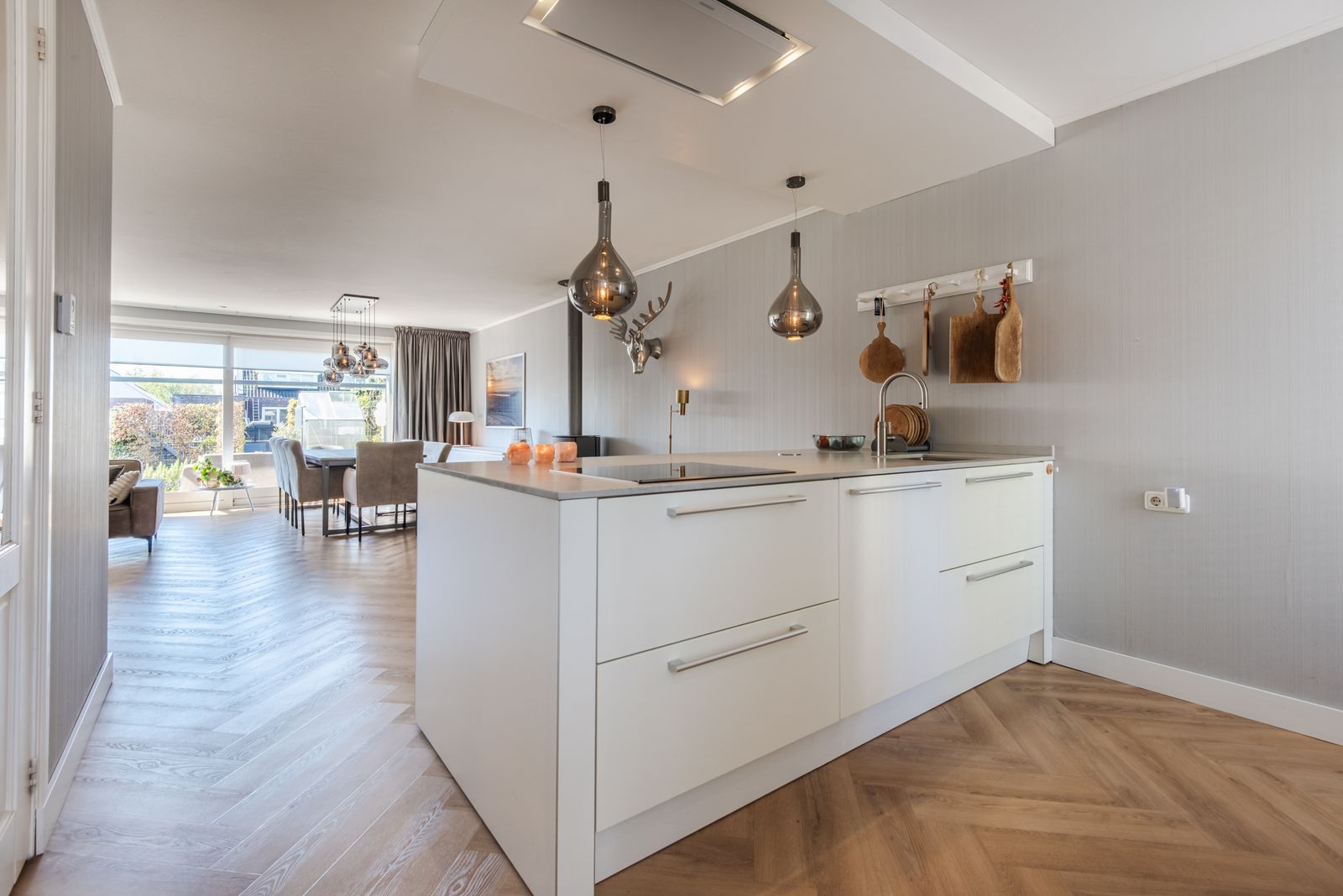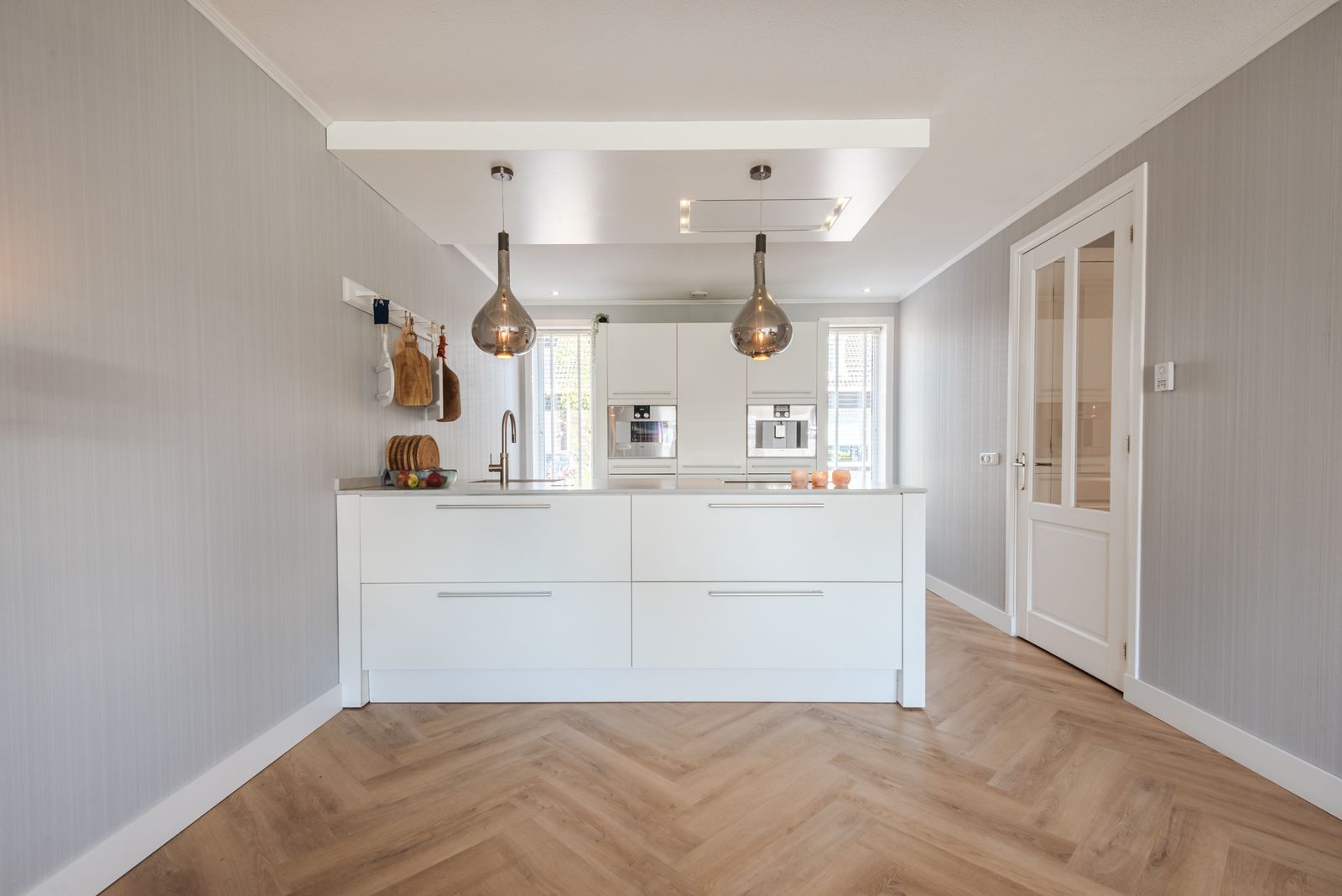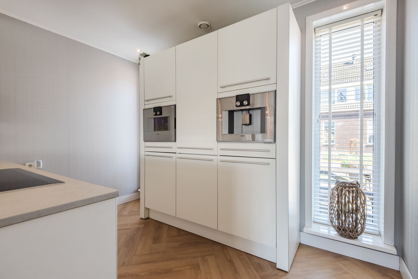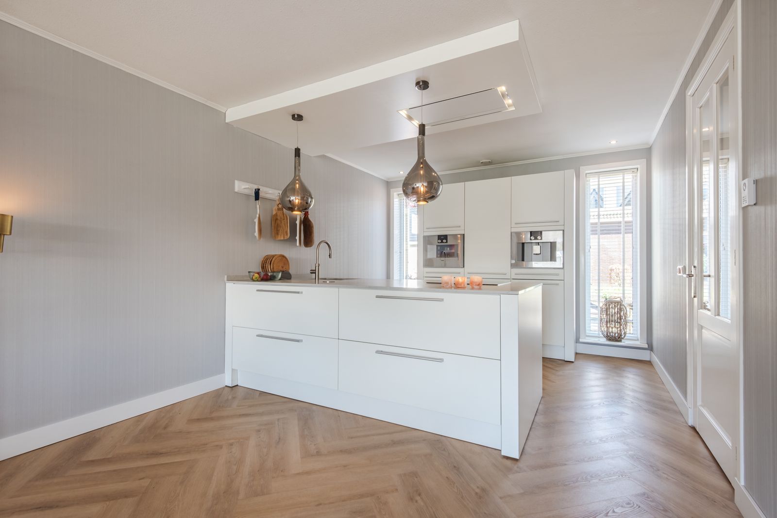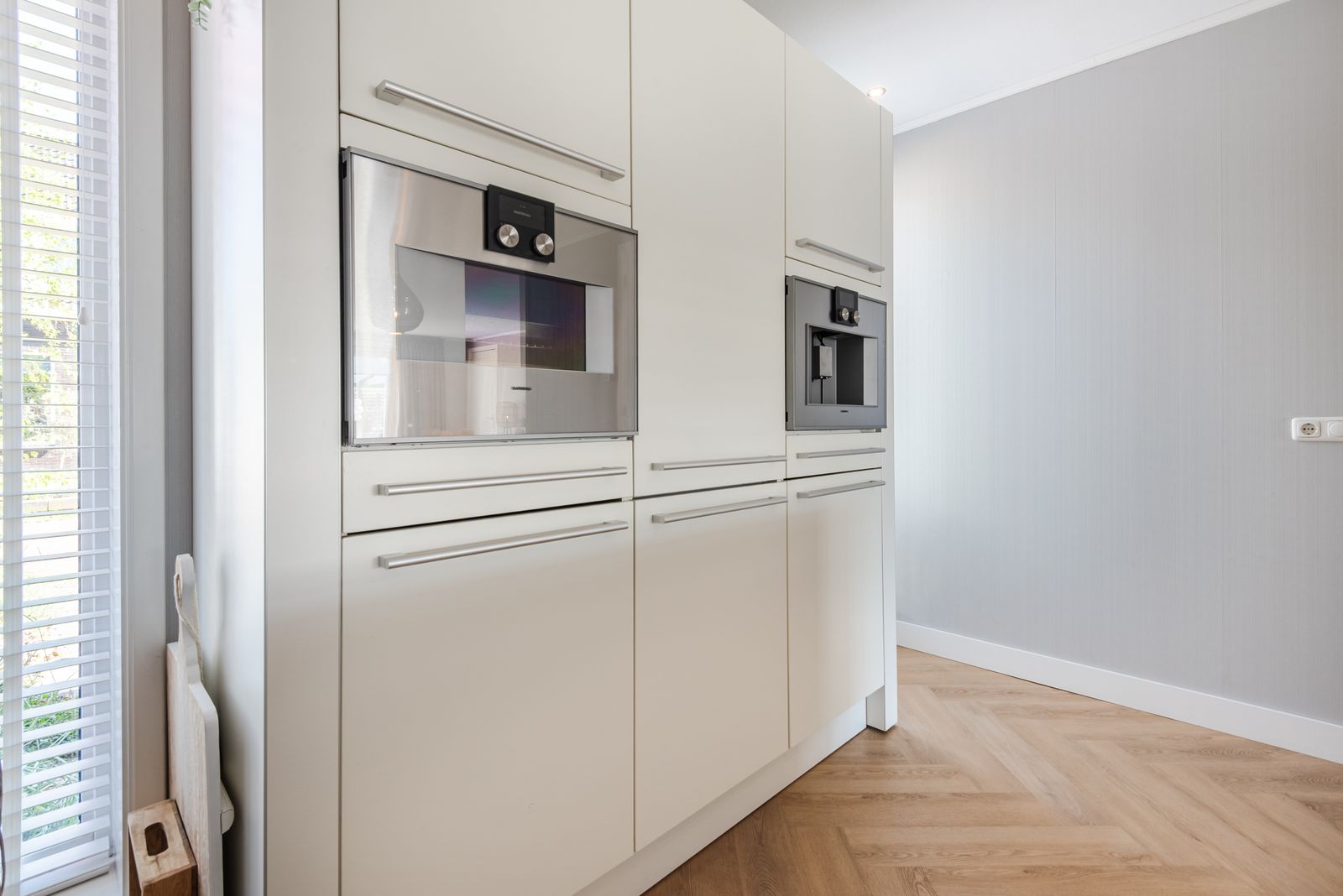 De keuken met eiland is geplaatst in 2009 en in 2021 geüpdatet met een nieuw composiet werkblad en vernieuwde apparatuur, waaronder een inductiekookplaat met plafondafzuiging, een vaatwasser van Siemens, een Quooker, een koel-vriescombinatie van Liebherr en een combi-stoomoven en inbouw koffiemachine van Gaggenau. Hierdoor heeft de keuken een moderne uitstraling en is deze direct klaar voor gebruik.