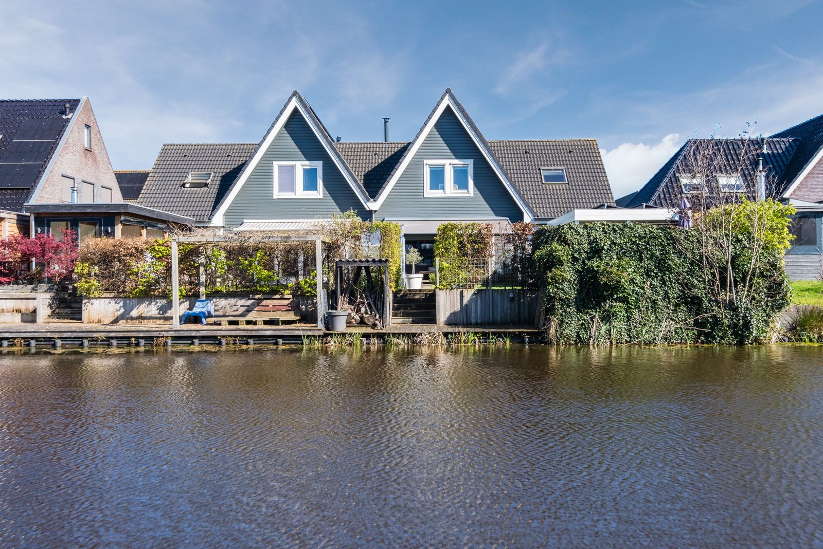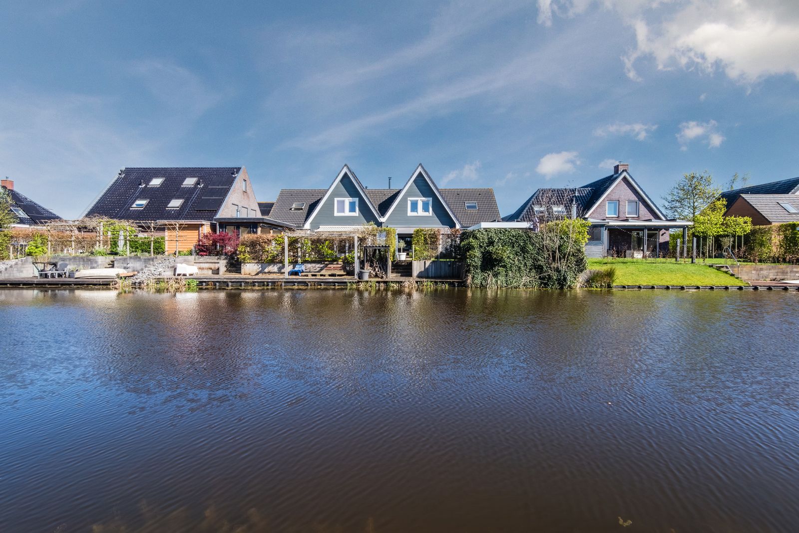 Zeer energiezuinige A+++ woning met verrassend ruime indeling, zonnige tuin op het westen en prachtige ligging aan het water.