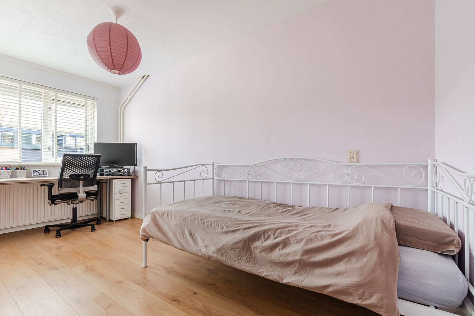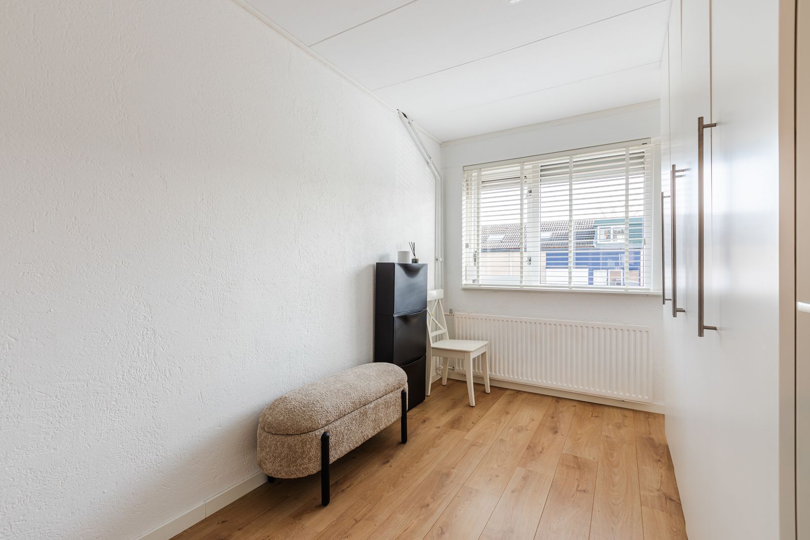 De badkamer en het toilet zijn vernieuwd en uitgevoerd met een douche, wastafelmeubel en tweede toilet. Alle ramen zijn voorzien van rolluiken, wat zorgt voor extra comfort en privacy.