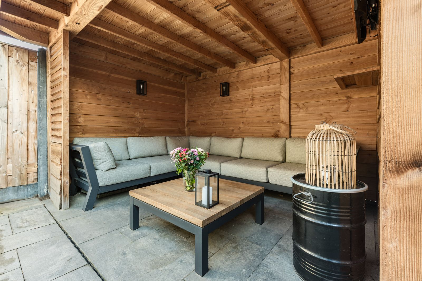 Ook buiten is het goed toeven. De onderhoudsvrije achtertuin beschikt over een overkapping met schuur en is voorzien van schuttingen, de tuin is circa vijf jaar geleden geheel vernieuwd. De gevel is onderhoudsarm dankzij de vervanging van de houten rabatdelen door keraliet. Aan de voorzijde bevindt zich een aangebouwde stenen berging, ideaal voor fietsen en opslag.