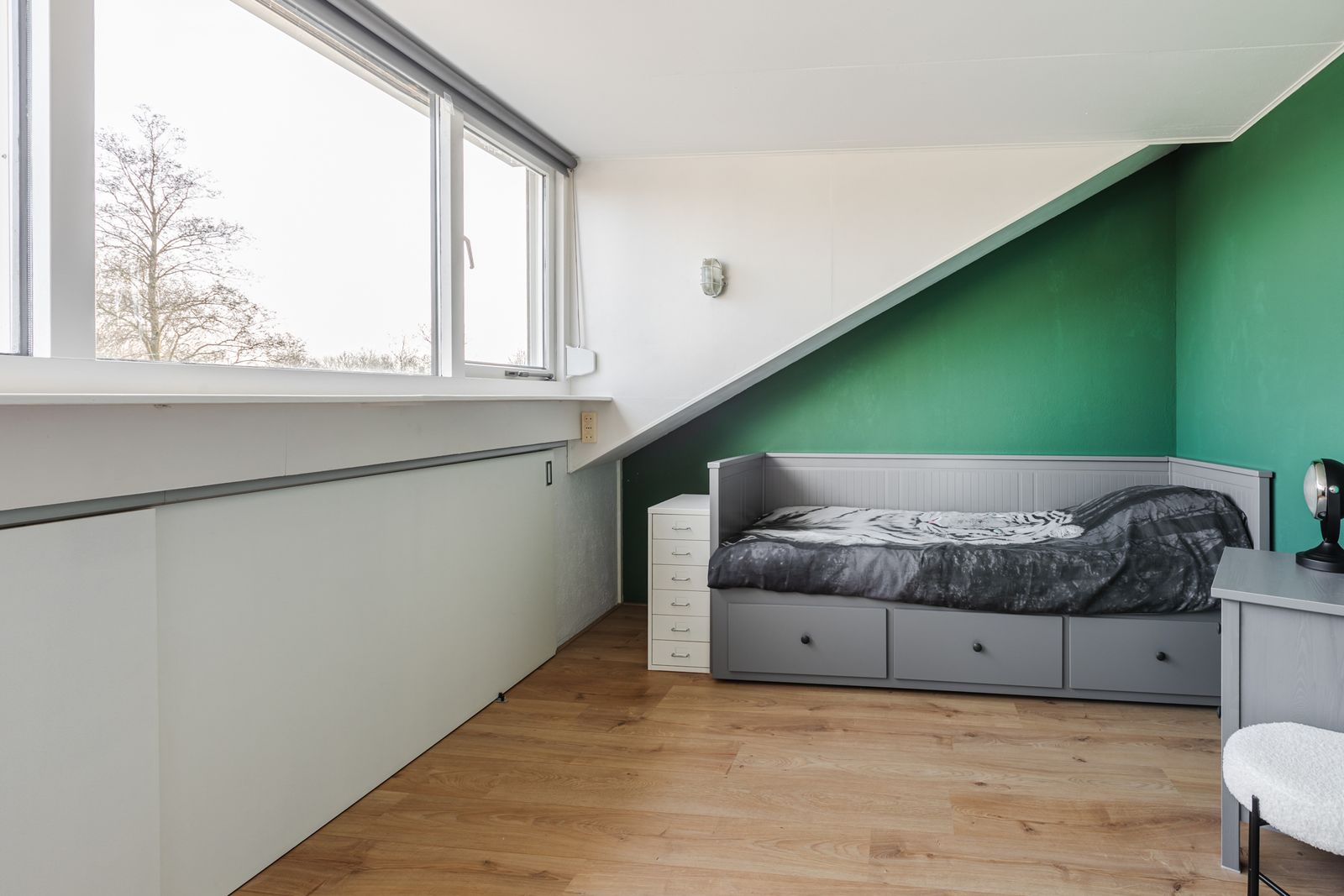 Op de verdiepingen biedt de woning volop ruimte. In totaal zijn er vier slaapkamers en een extra werkkamer, ideaal voor thuiswerken of hobby’s. De zolder beschikt over een slaapkamer met dakkapel en is slim ingedeeld met knieschotten voor extra bergruimte. Het plafond van de kantoorruimte op zolder is geïsoleerd. Er is ook een kleine vliering aanwezig. Daarnaast zijn er 8 zonnepanelen met micro-omvormers geplaatst en is de mechanische ventilatie vernieuwd.