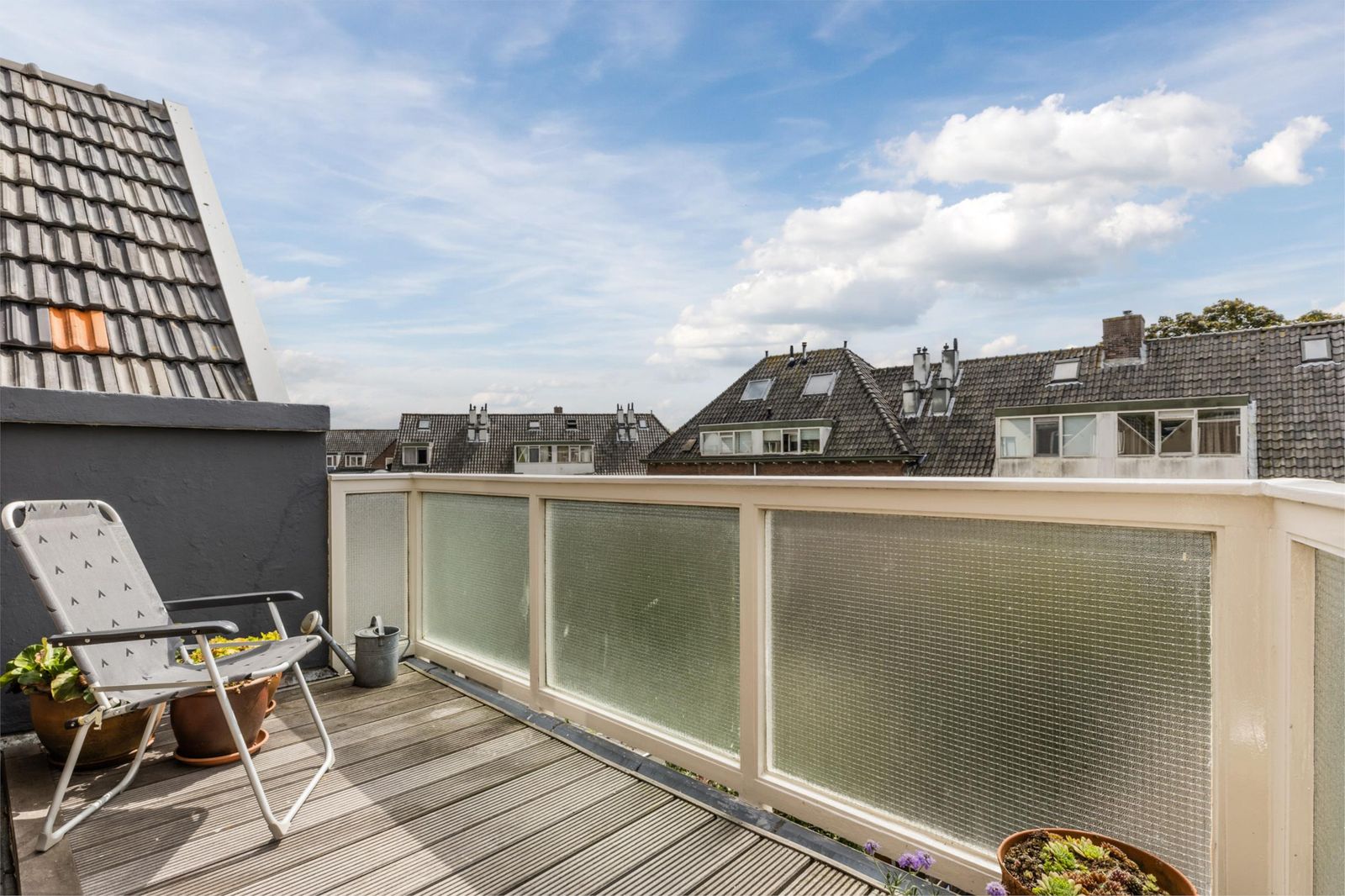 Zonnig balkon met hardhouten vloer