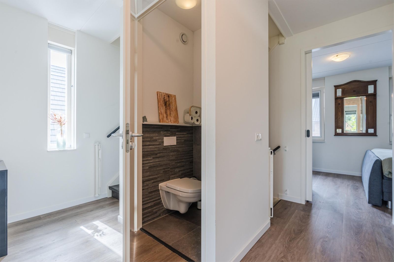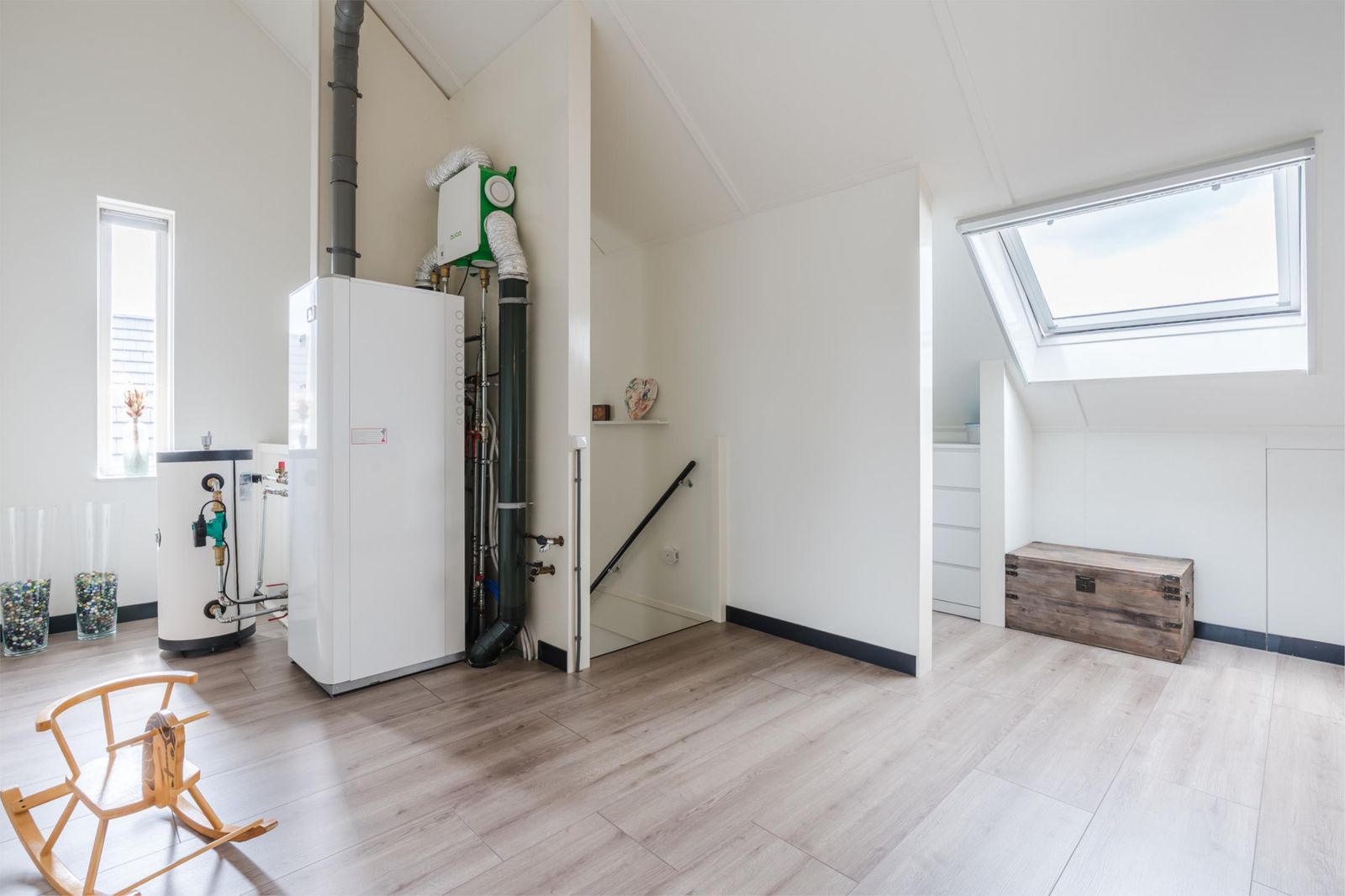 Op de tweede verdieping is ook nog een wasmachineaansluiting aanwezig.