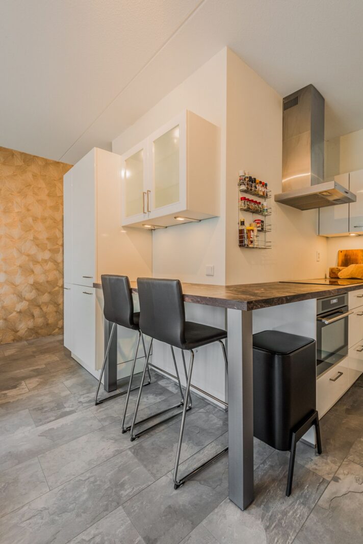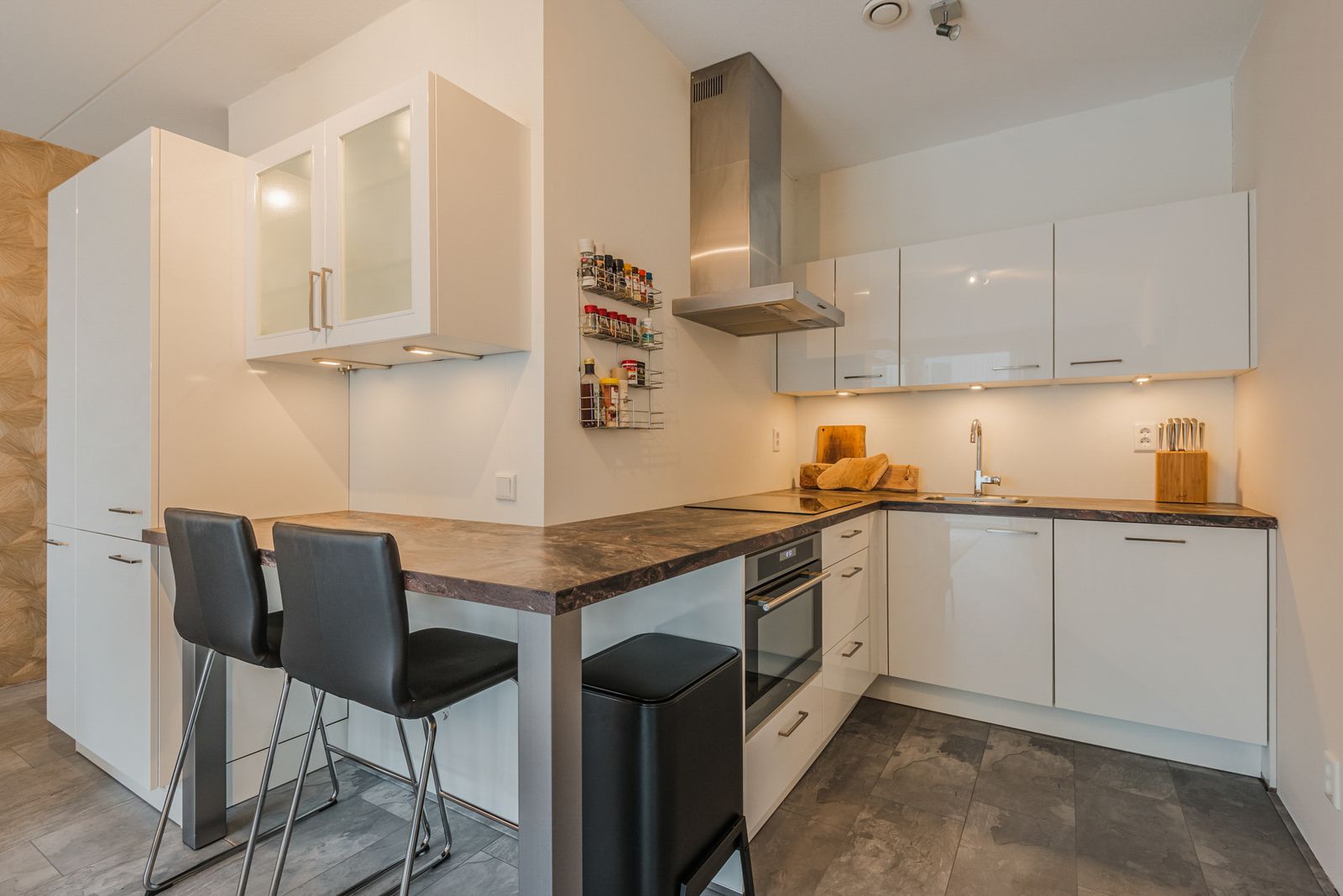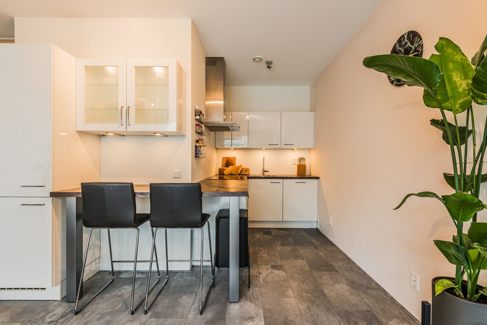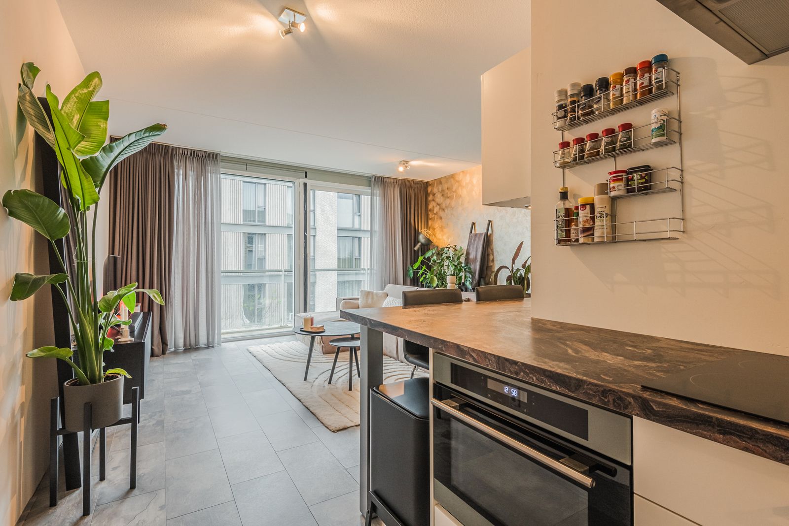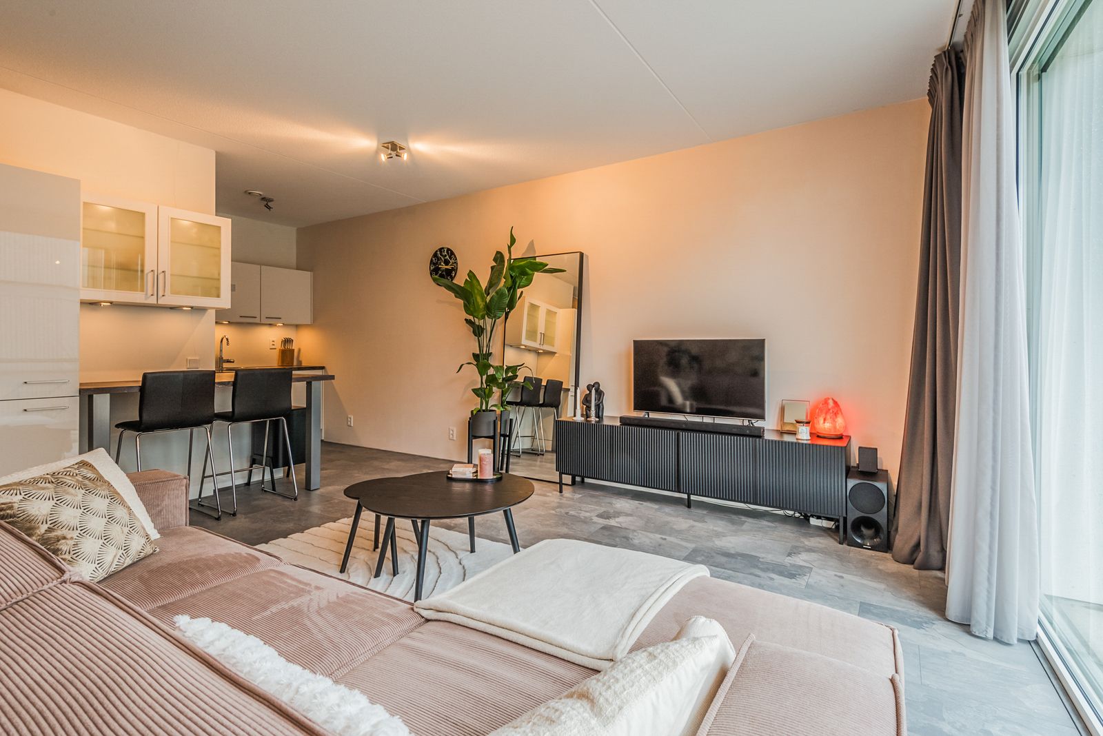 Het appartement is volledig voorzien van vloerverwarming voor optimaal wooncomfort. De slaapkamer is voorzien van een vaste kastenwand. De ruime en modern ingerichte keuken met een combi-oven, inductieplaat en vaatwasmachine biedt veel werkruimte en is uitgerust met een slim aansluitende eetbar. Perfect als extra werkblad of gezellige plek om te eten. Dankzij de grote raampartijen en de schuifpui geniet het appartement van een prachtige lichtinval. Het balkon ligt ideaal op de middagzon, waardoor je hier heerlijk kunt ontspannen.