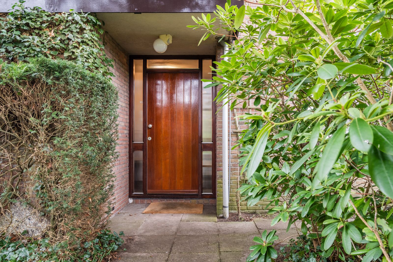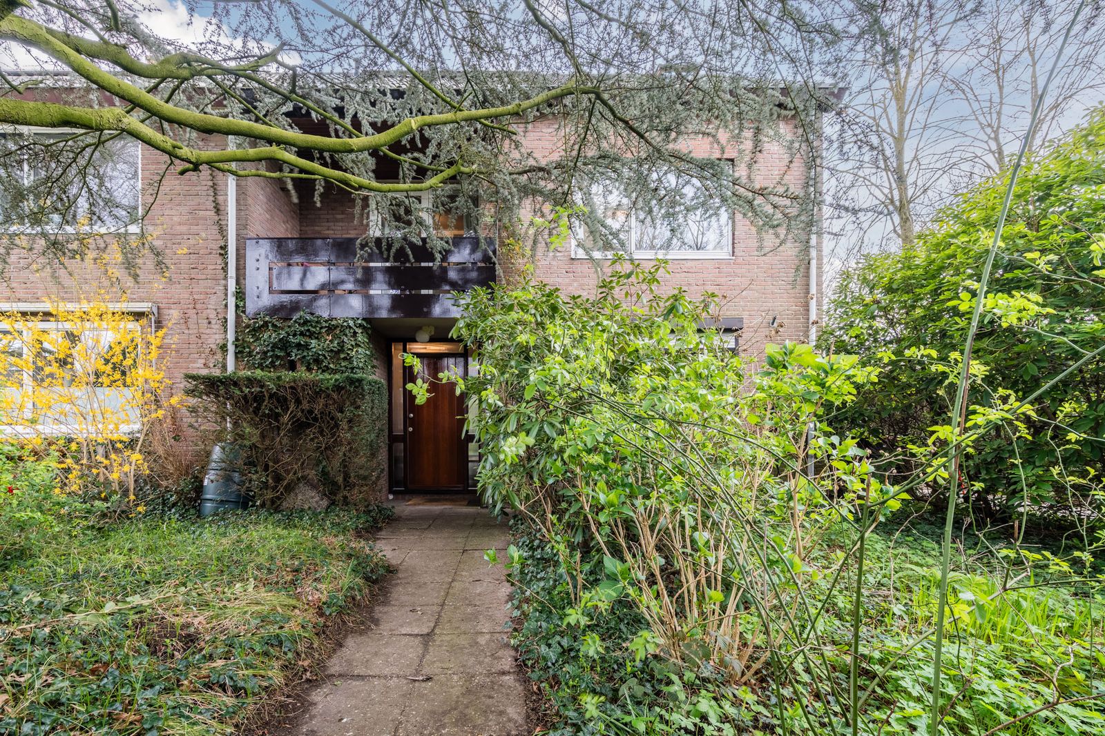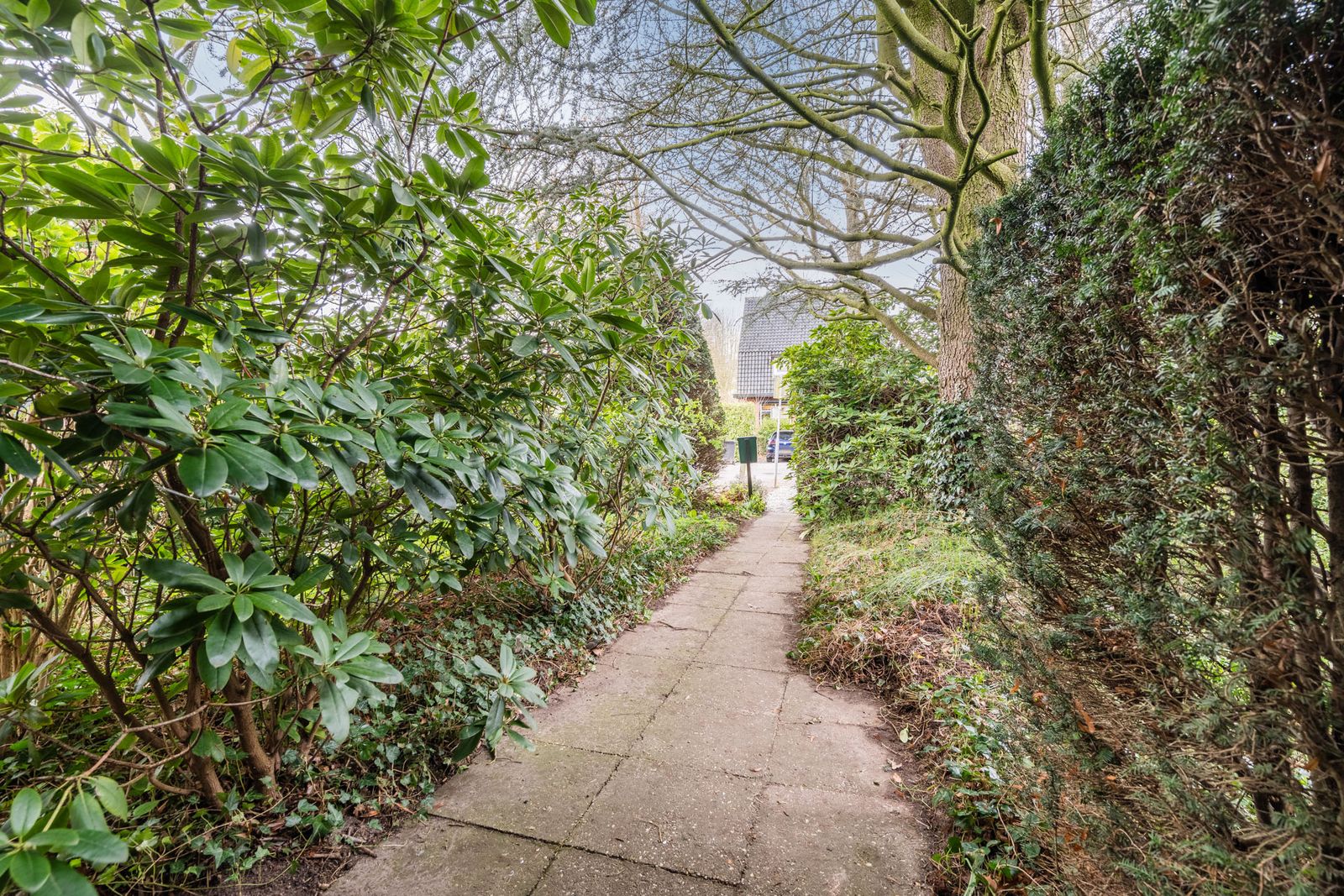 De fraai aangelegde tuin rondom de woning biedt volop privacy en zon, met volwassen hagen, een gazon en meerdere terrassen – een heerlijke plek om te ontspannen.