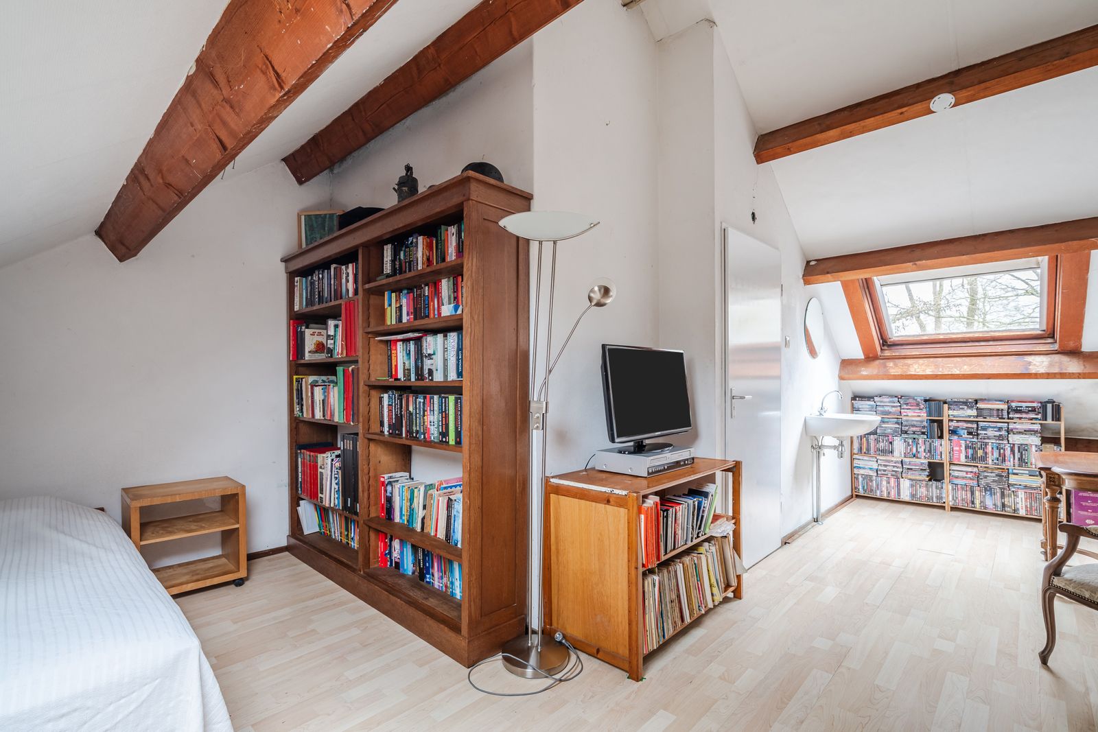 Twee zeer ruime slaapkamers met wastafel en meerdere dakramen – perfect voor oudere kinderen, gasten of een rustige thuiswerkplek. Tevens zou hier eenvoudig een 2e badkamer geïnstalleerd kunnen worden. Daarnaast een aparte CV- en bergruimte met dakraam en wateraansluiting voor wasmachine en droger.