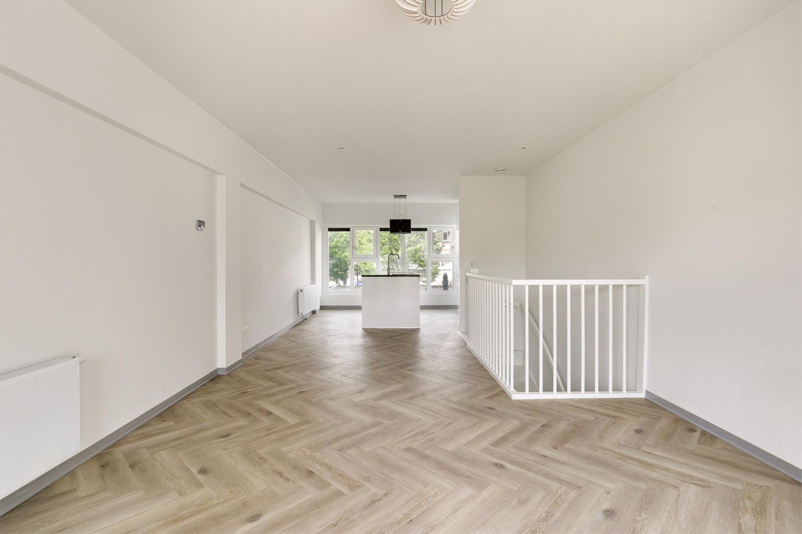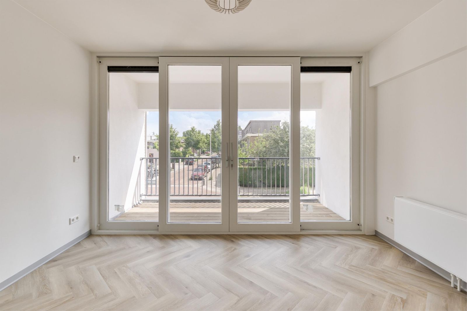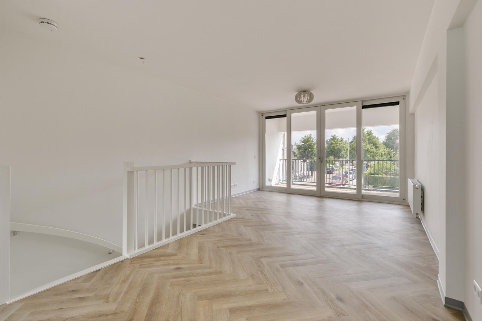 De lichtrijke woonverdieping voelt ruim en modern aan. Aan de achterzijde bevindt zich een open woonkeuken met een strak keukenblok en inbouwapparatuur. De voorzijde is ingericht als gezellige woonkamer, met een industriële glazen pui die toegang geeft tot het zonnige balkon op het zuiden.