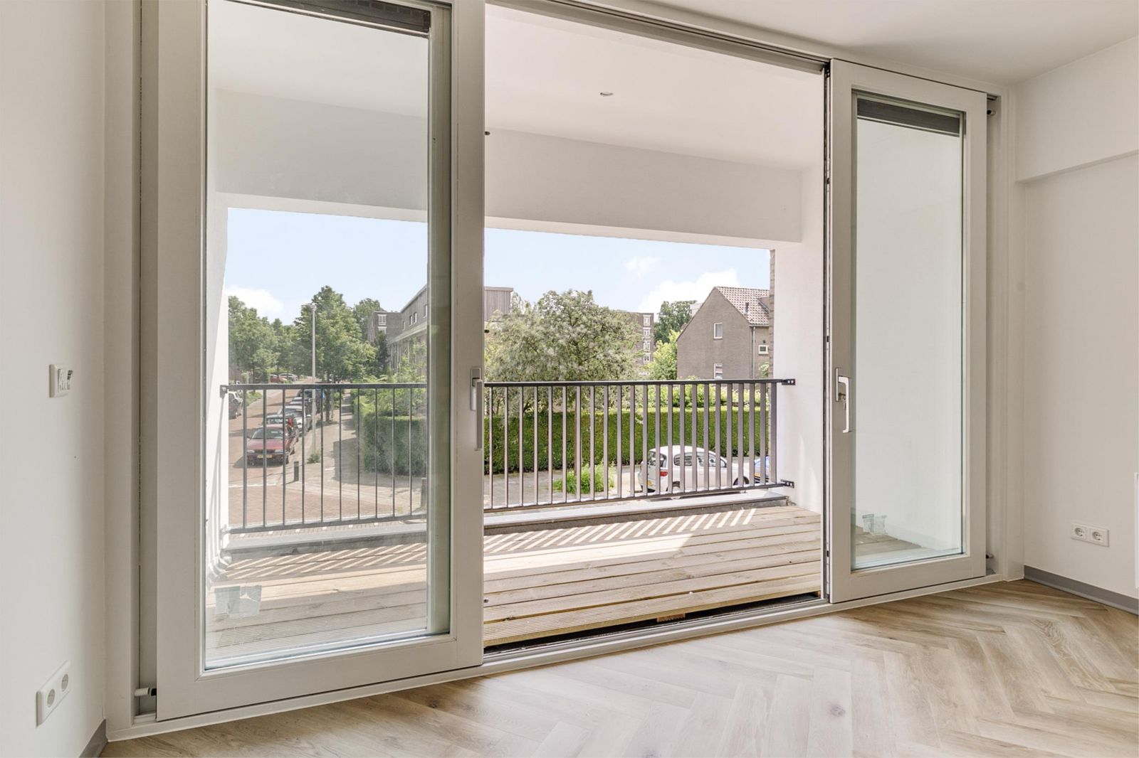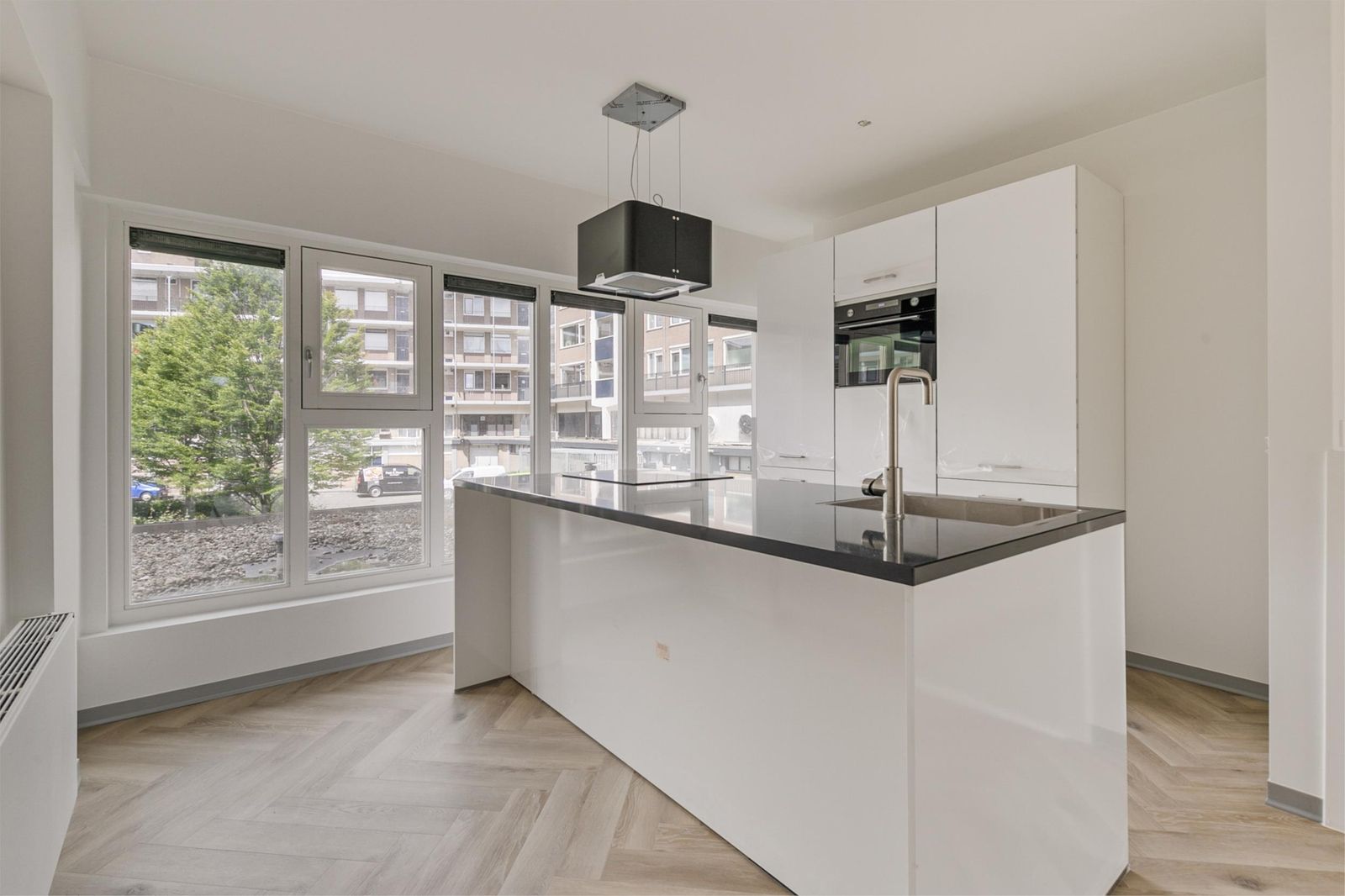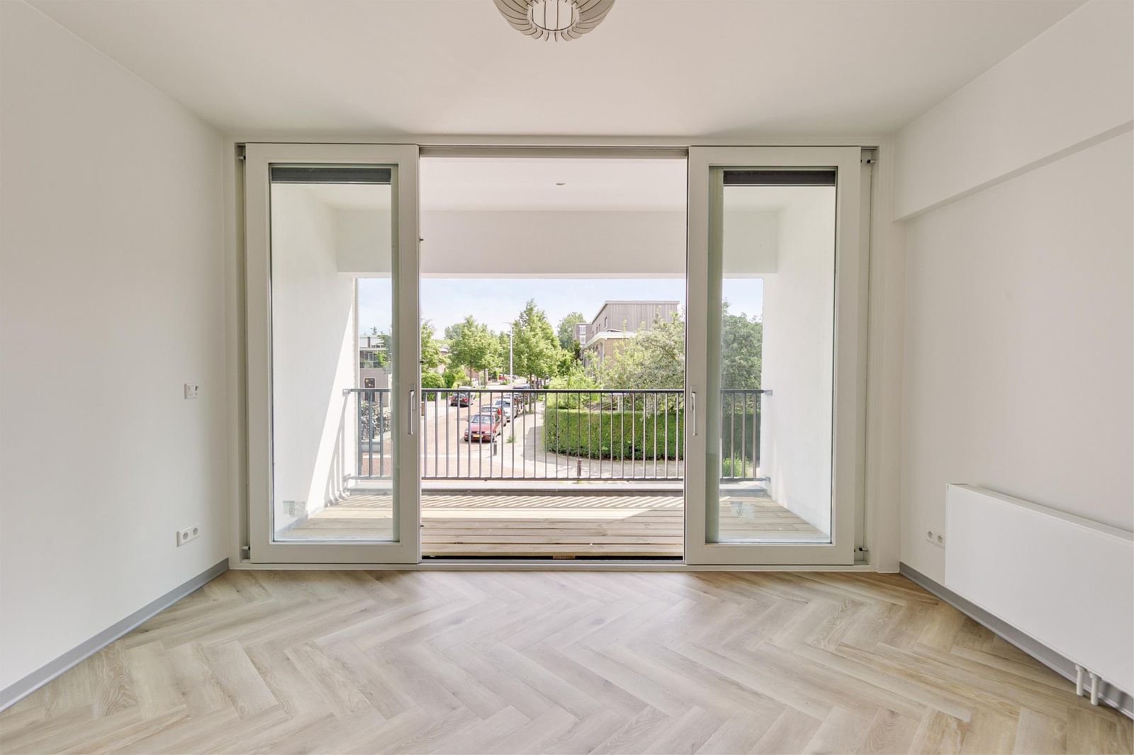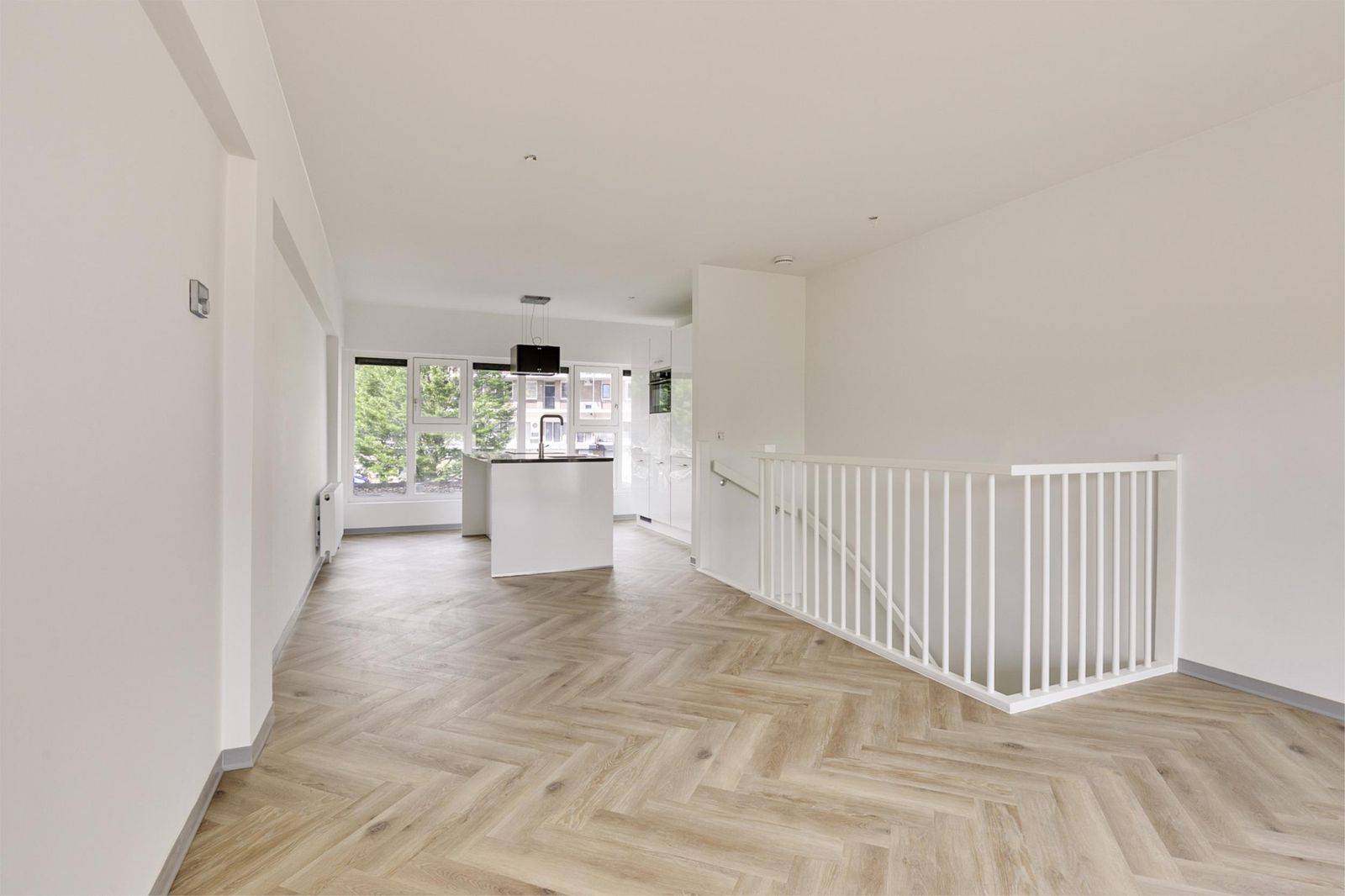 De lichtrijke woonverdieping voelt ruim en modern aan. Aan de achterzijde bevindt zich een open woonkeuken met een strak keukenblok en inbouwapparatuur. De voorzijde is ingericht als gezellige woonkamer, met een industriële glazen pui die toegang geeft tot het zonnige balkon op het zuiden.