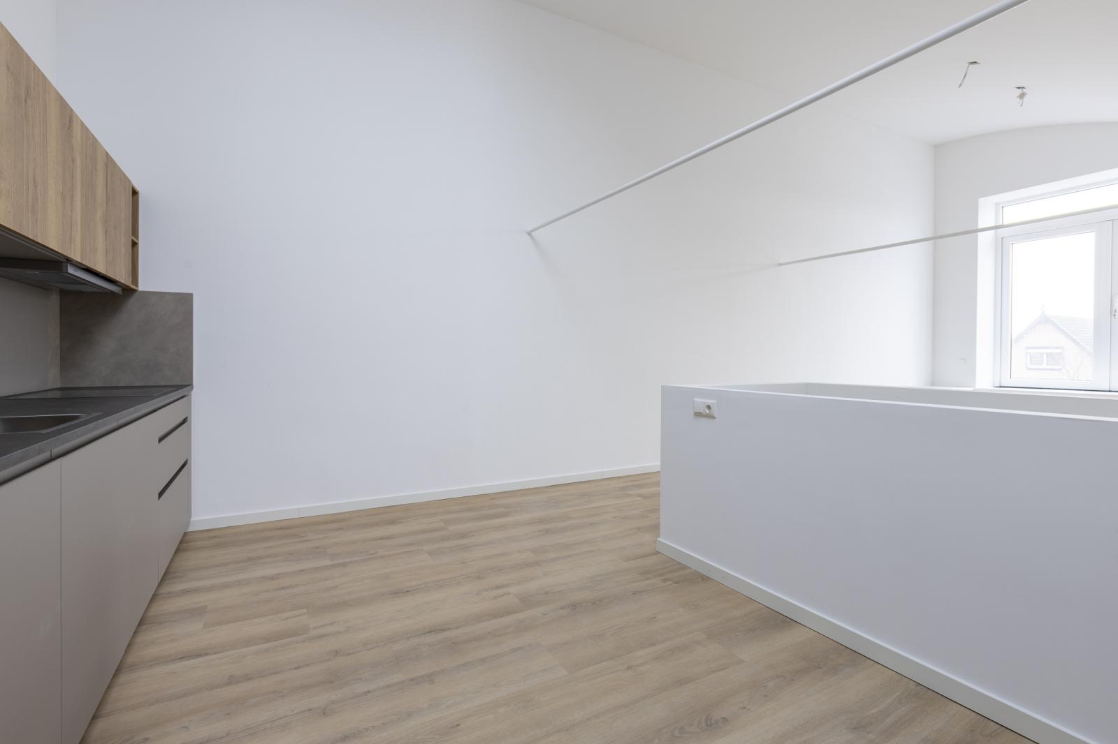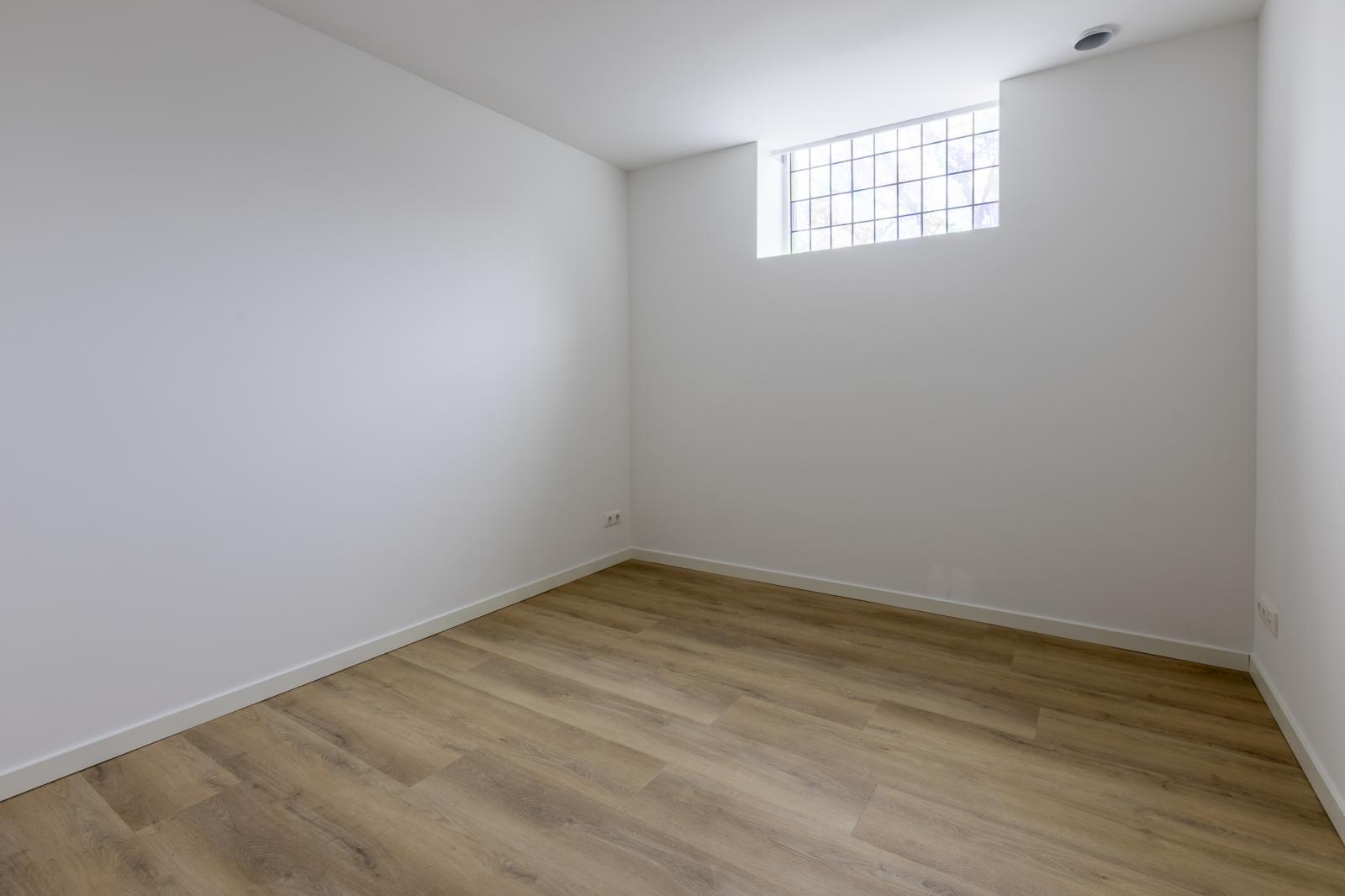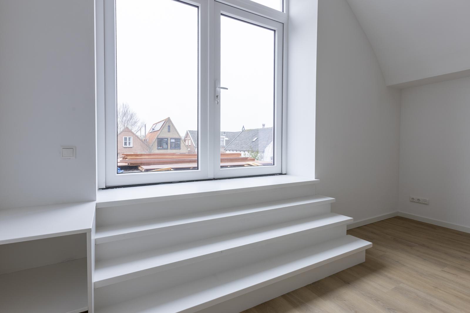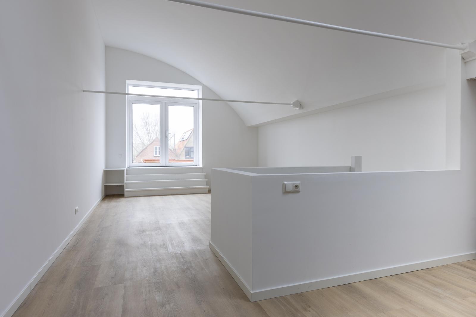 De verdieping beschikt over een zeer lichte woonkamer met openslaande deuren naar het dakterras. Dankzij de grote raampartijen en de hoge plafonds is sprake van een prettige lichtinval en een ruimtelijk gevoel. De open keuken is tijdloos uitgevoerd en voorzien van alle gemakken, waaronder een combi-oven, vaatwasser, koelkast, inductiekookplaat en afzuigkap.