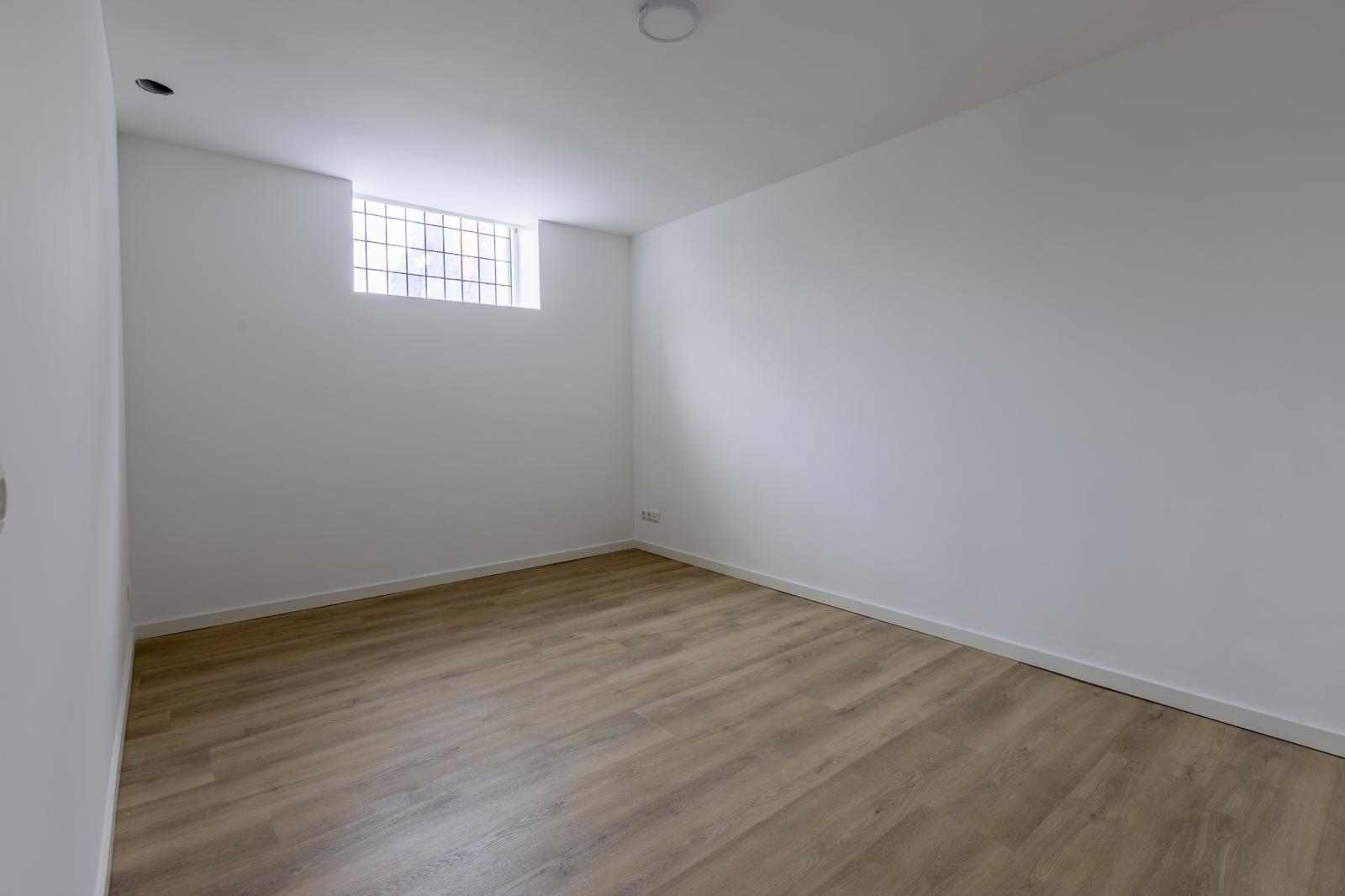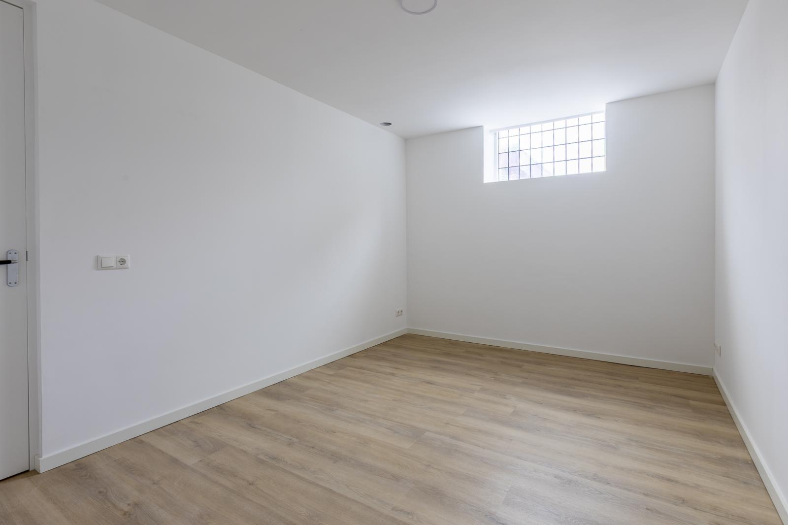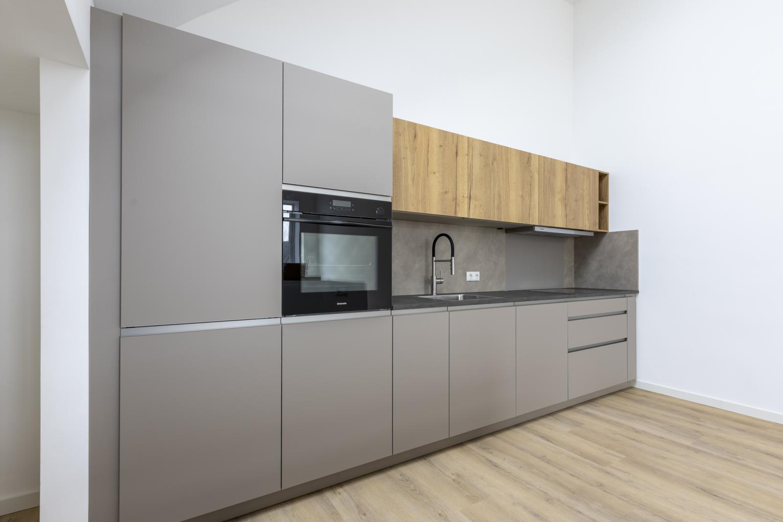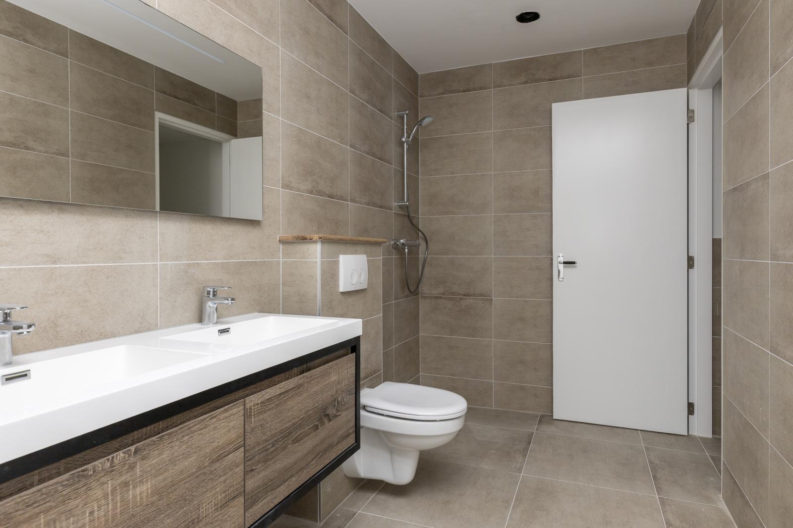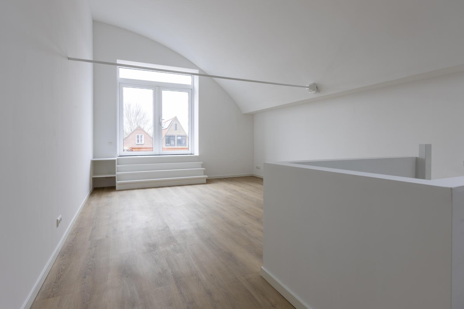 De verdieping beschikt over een zeer lichte woonkamer met openslaande deuren naar het dakterras. Dankzij de grote raampartijen en de hoge plafonds is sprake van een prettige lichtinval en een ruimtelijk gevoel. De open keuken is tijdloos uitgevoerd en voorzien van alle gemakken, waaronder een combi-oven, vaatwasser, koelkast, inductiekookplaat en afzuigkap.
