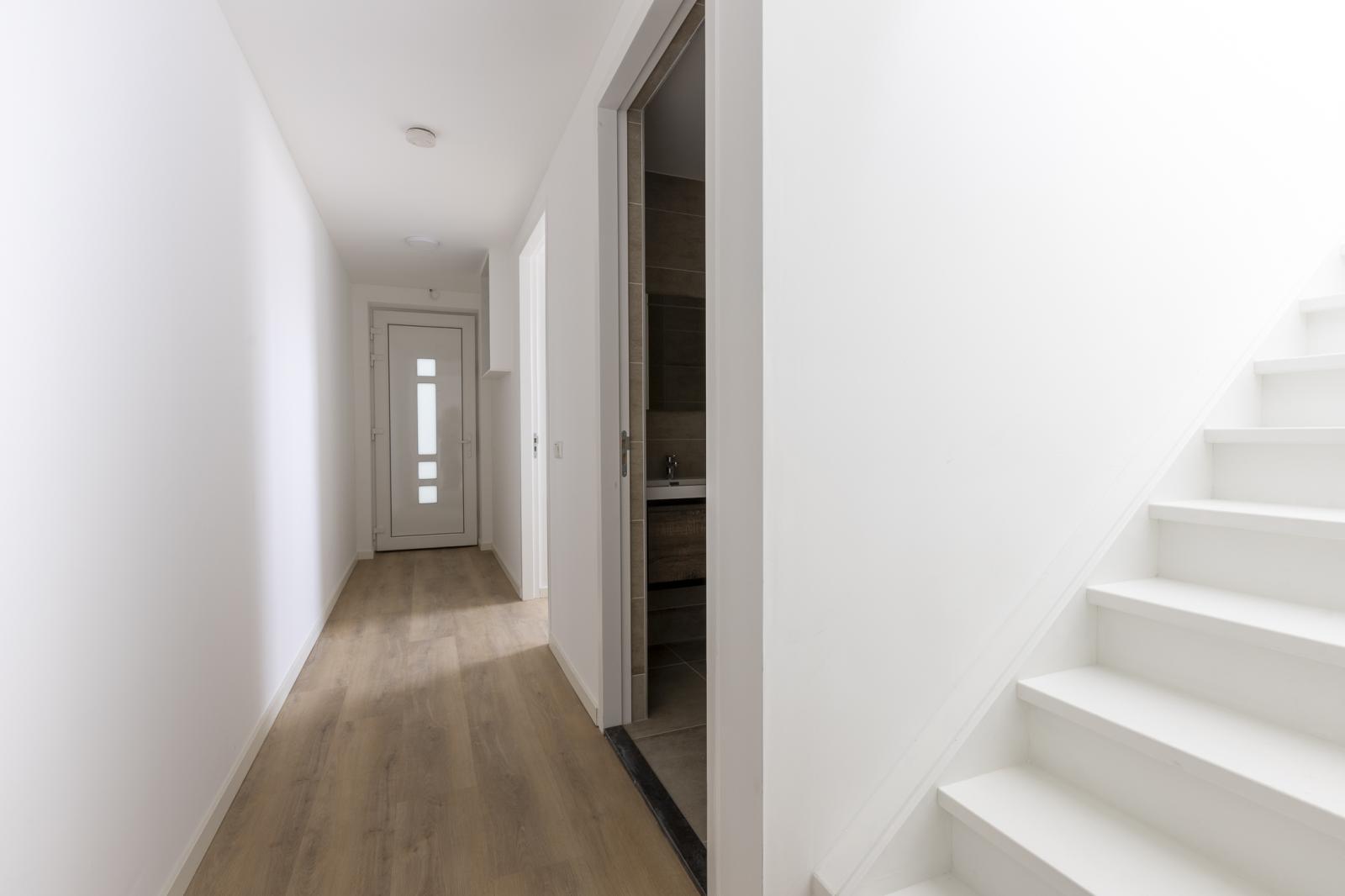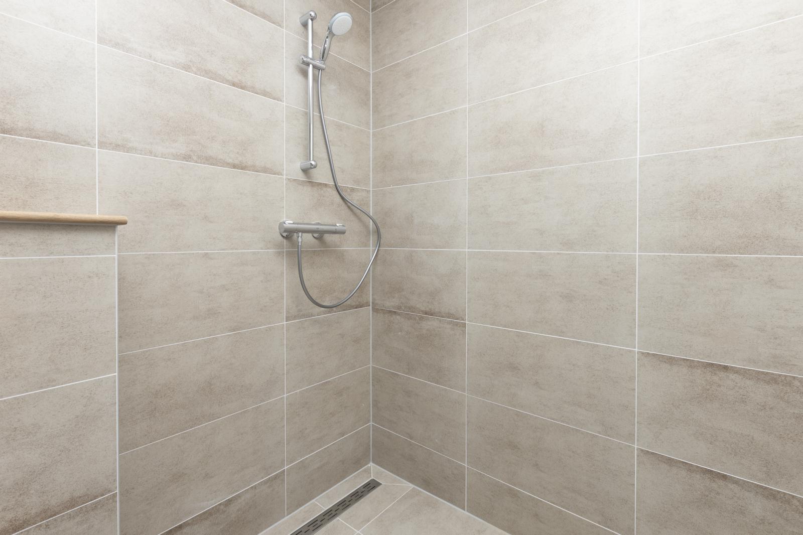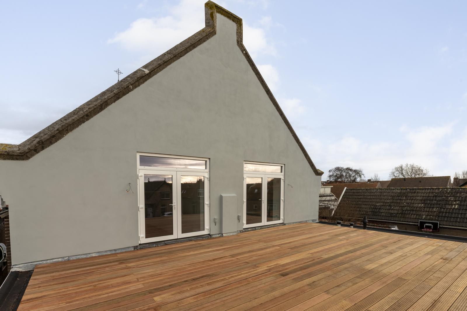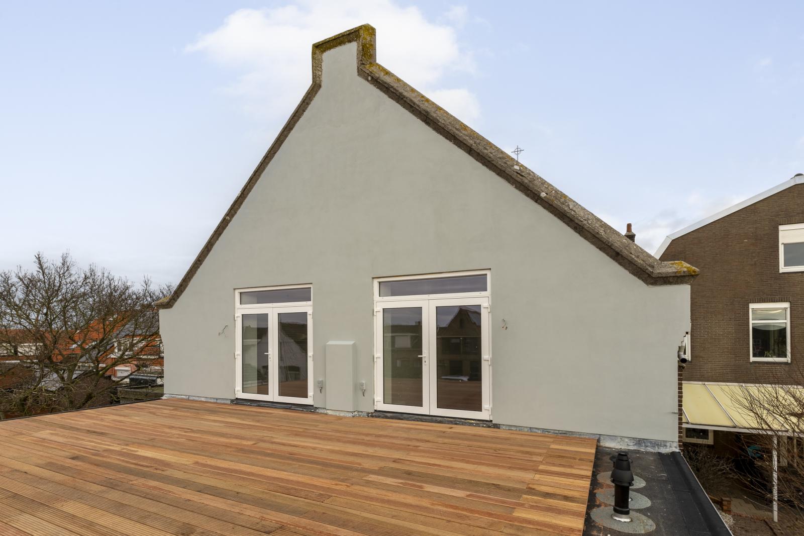 Aan de zijkant van het gebouw bevindt zich de gezamenlijke entree met toegang tot de appartementen. De indeling van dit appartement is verrassend: de slaapkamers en badkamer bevinden zich op de begane grond, terwijl de woonkamer en keuken op de verdieping zijn gesitueerd. Hierdoor geniet je van een fraai uitzicht en optimaal gebruik van het ruime dakterras.