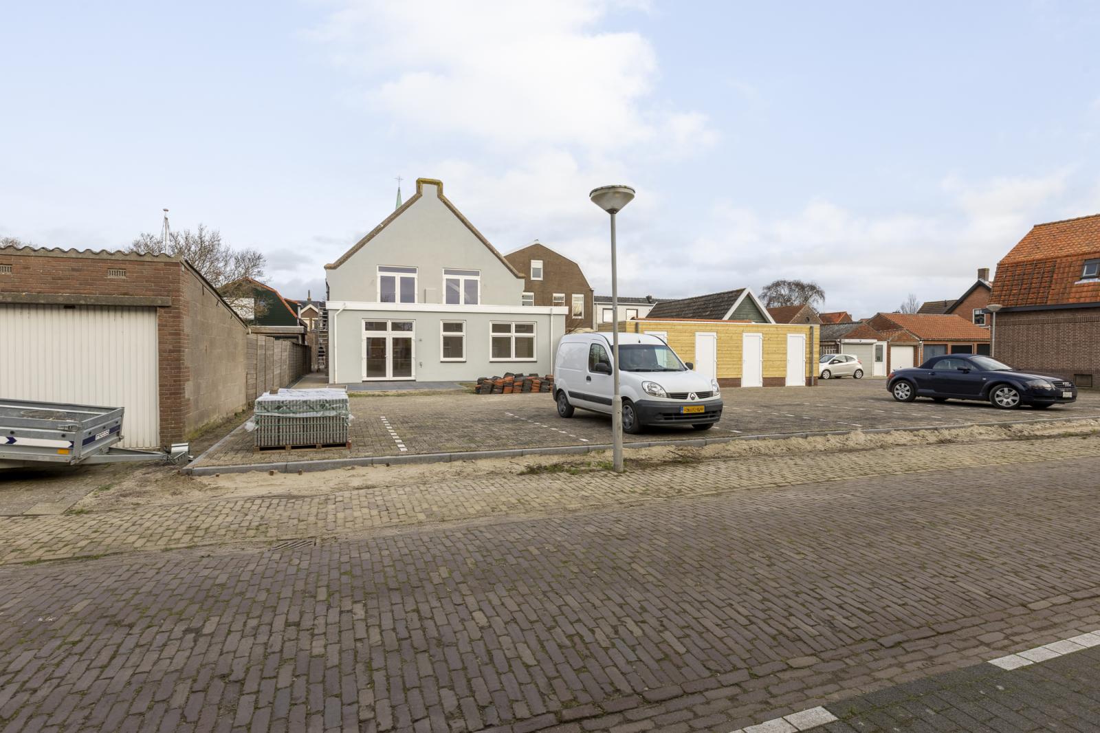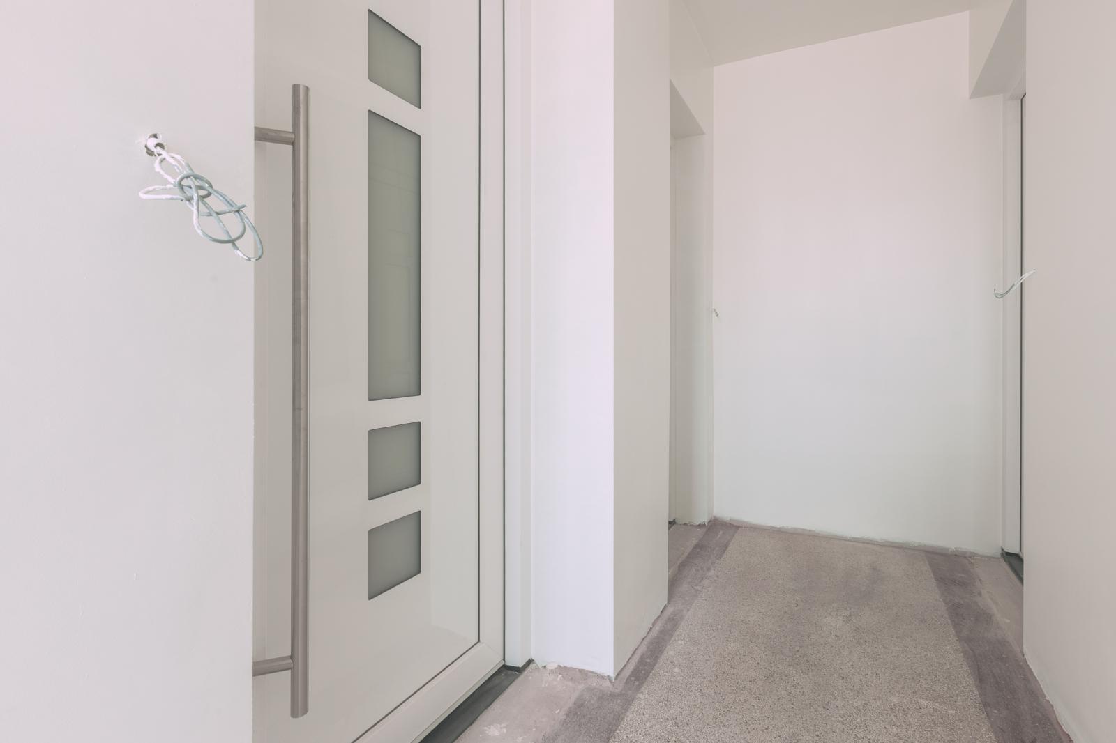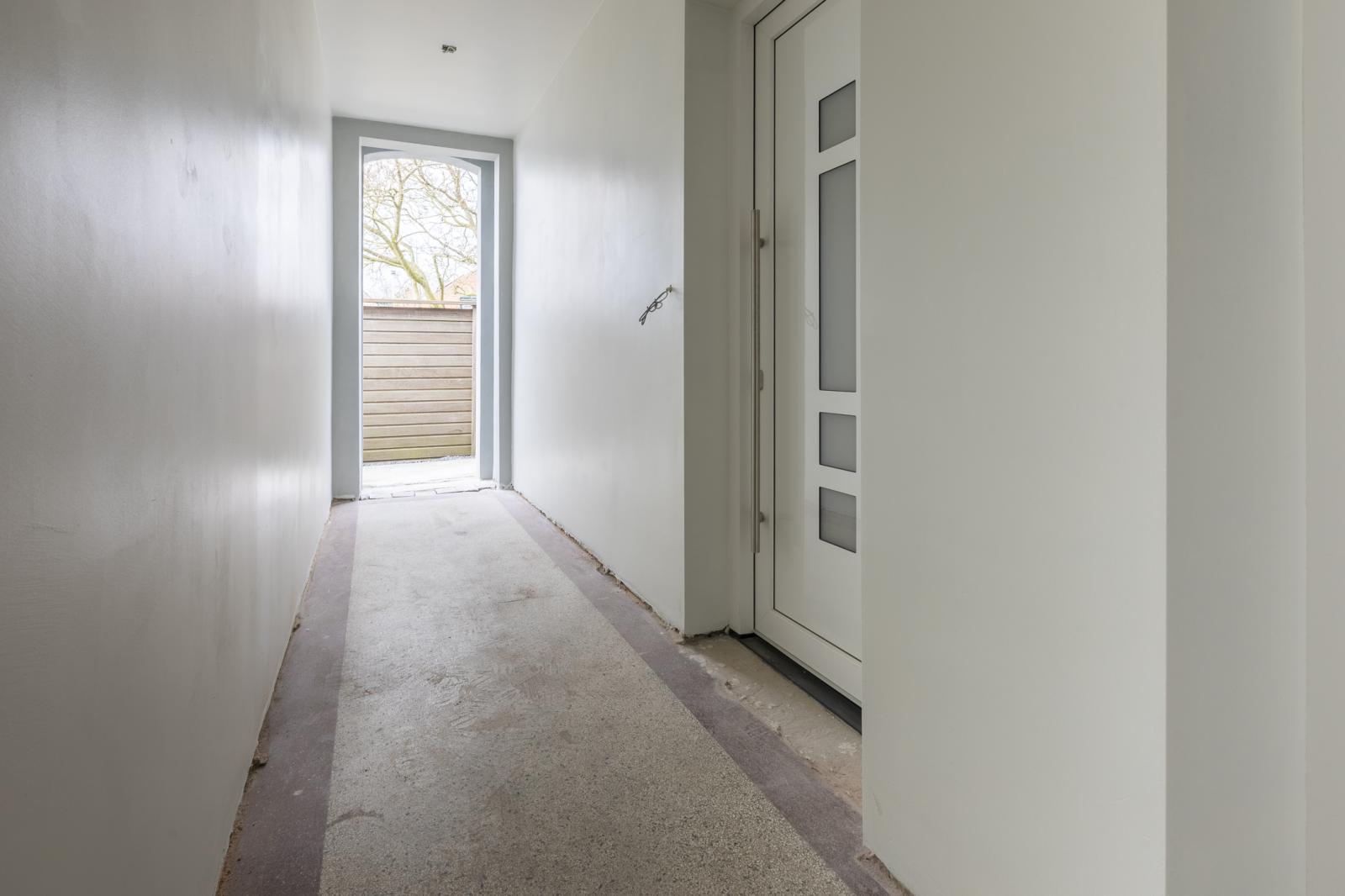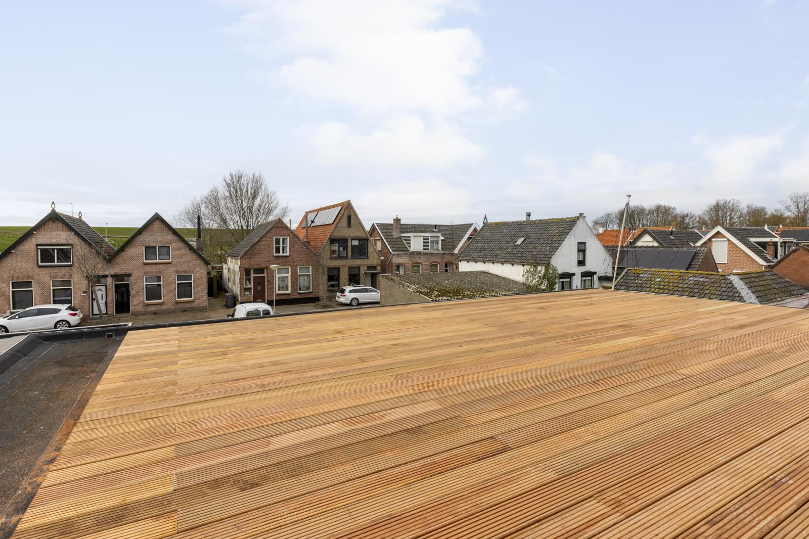 Aan de zijkant van het gebouw bevindt zich de gezamenlijke entree met toegang tot de appartementen. De indeling van dit appartement is verrassend: de slaapkamers en badkamer bevinden zich op de begane grond, terwijl de woonkamer en keuken op de verdieping zijn gesitueerd. Hierdoor geniet je van een fraai uitzicht en optimaal gebruik van het ruime dakterras.
