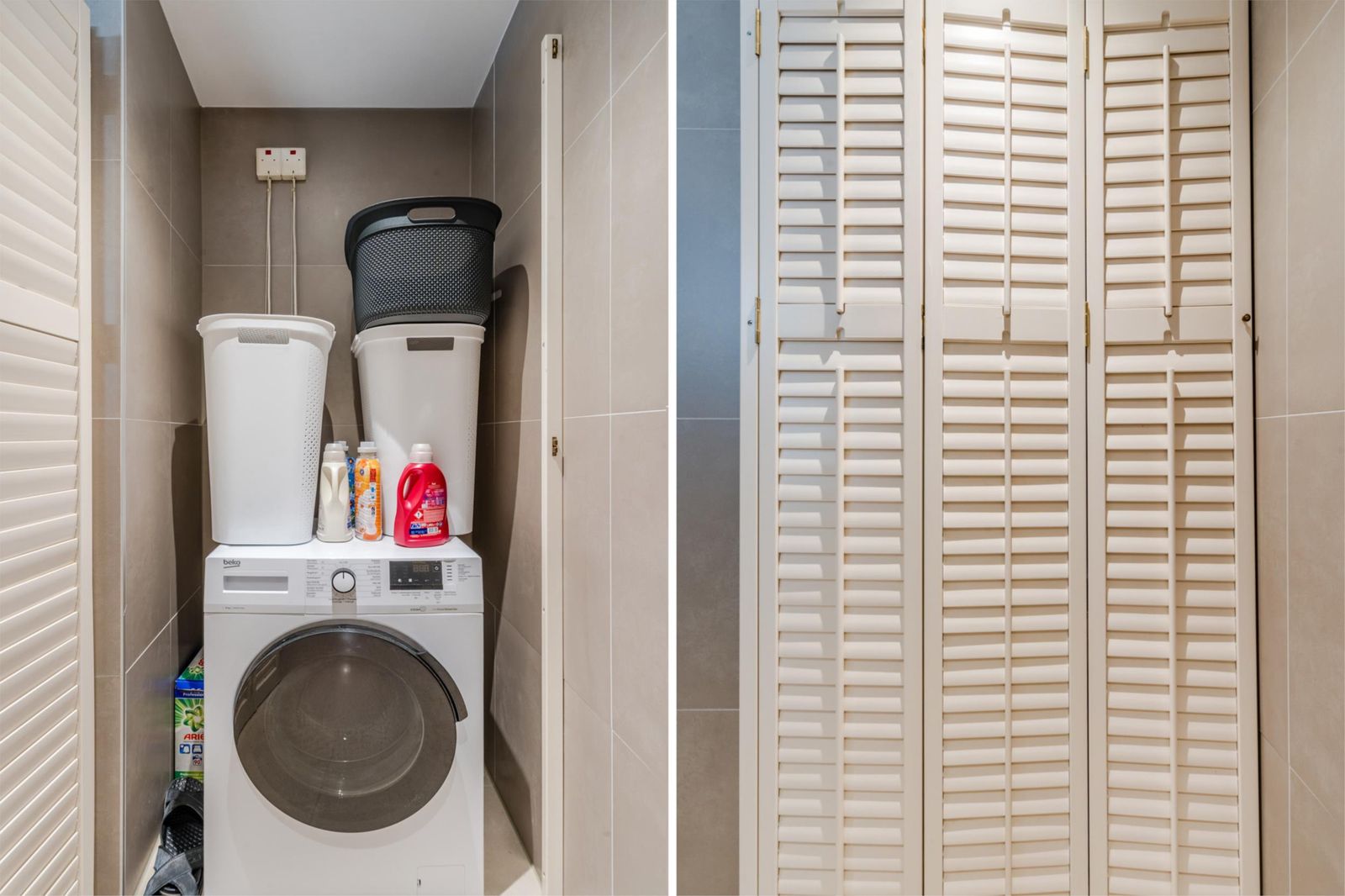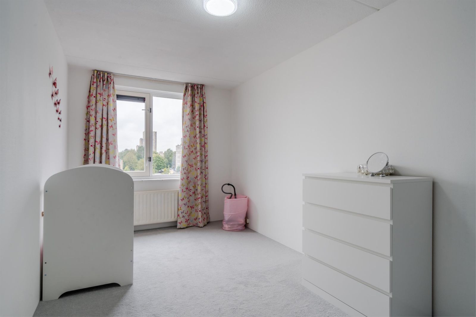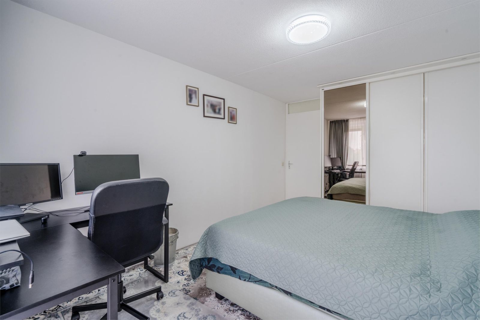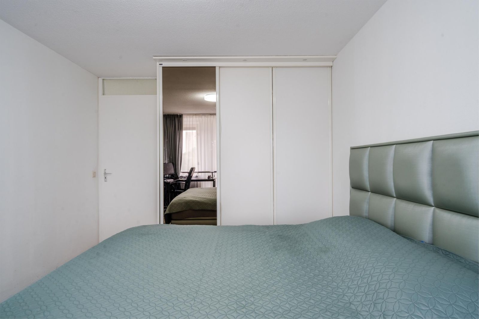 De woning beschikt over twee ruime slaapkamers, beide met vaste inbouwkasten. Eén van de slaapkamers heeft toegang tot het tweede balkon, eveneens op het zuiden gelegen – zeldzaam veel buitenruimte voor een appartement.