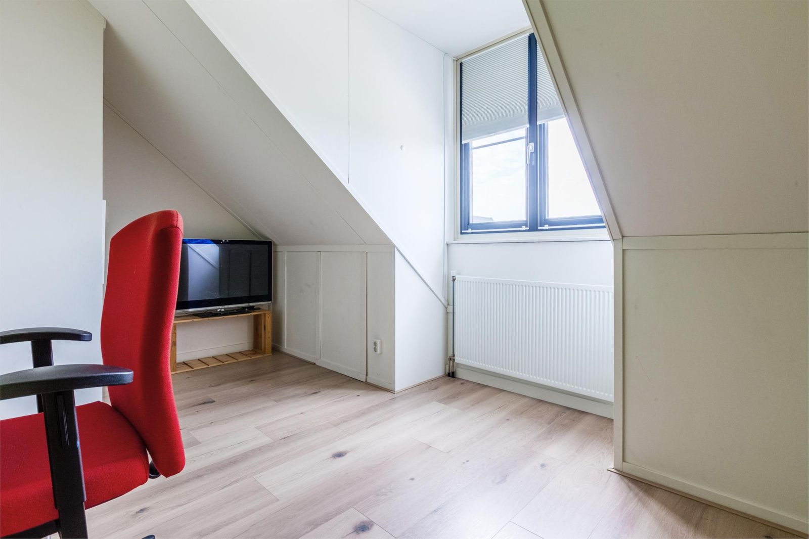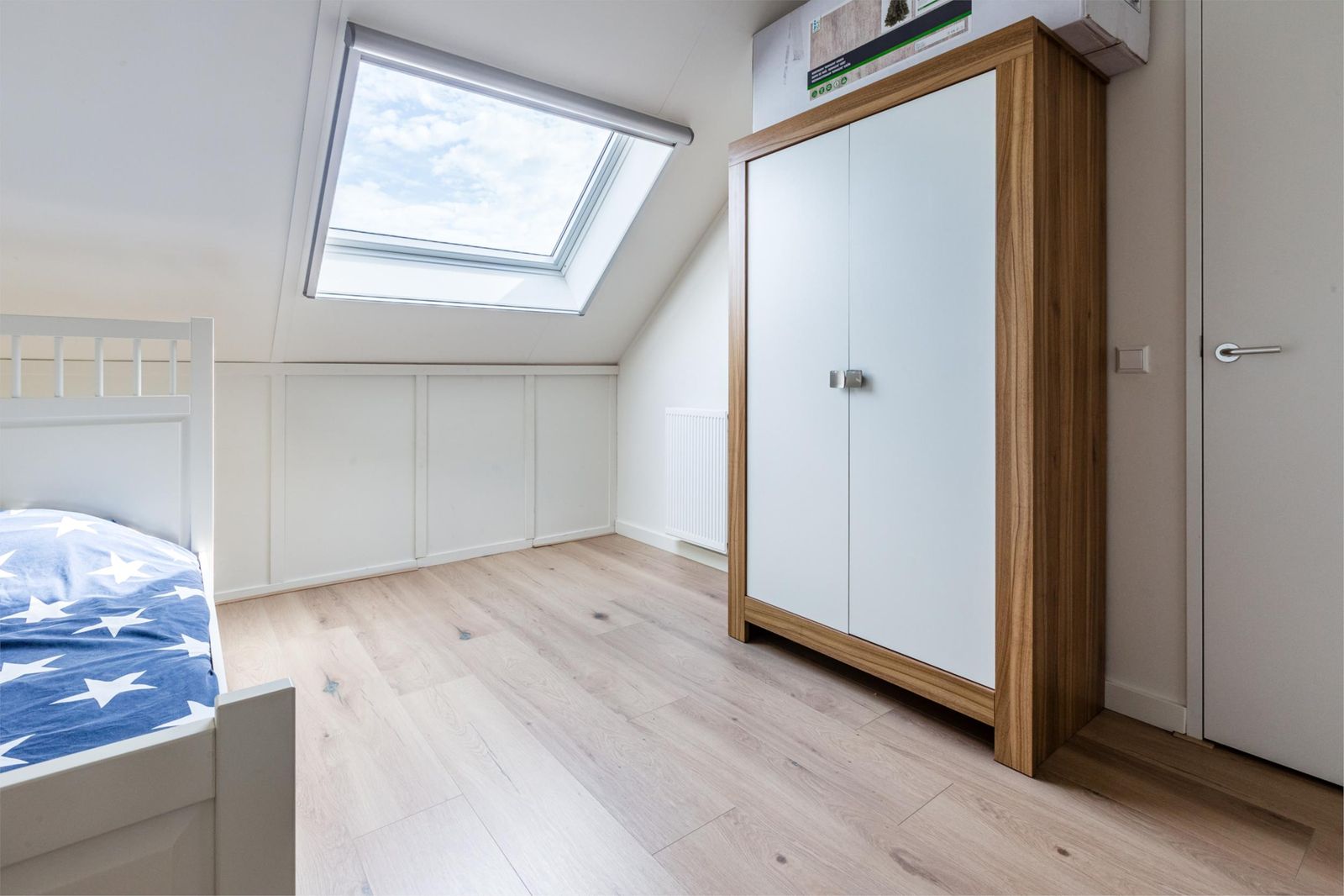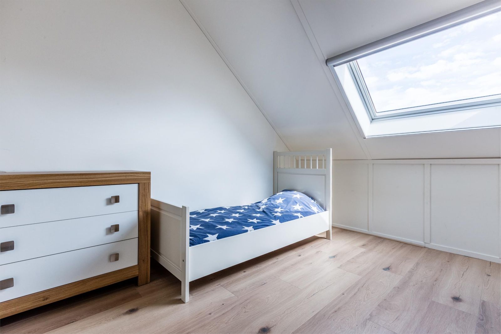 •Slaapkamer aan de achterzijde van de tweede verdieping voorzien van Velux-dakraam met hor en verduisterende zonwering