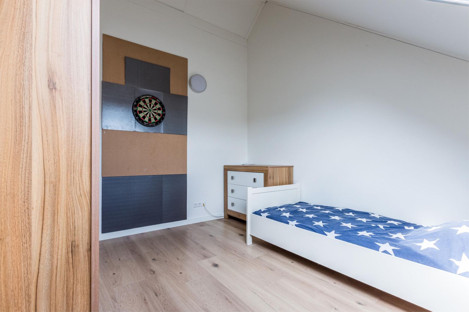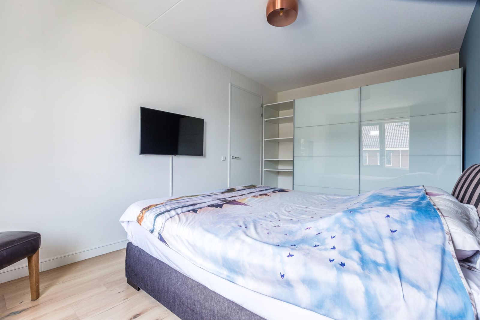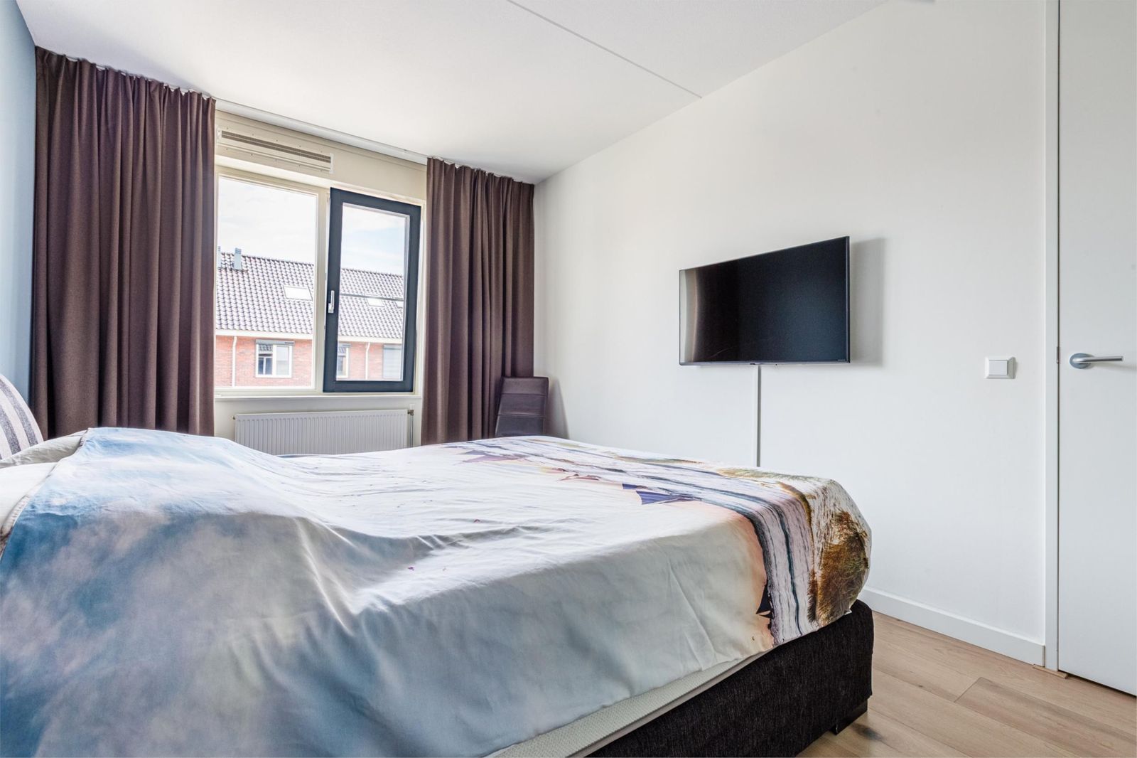 •Slaapkamer aan de achterzijde van de tweede verdieping voorzien van Velux-dakraam met hor en verduisterende zonwering