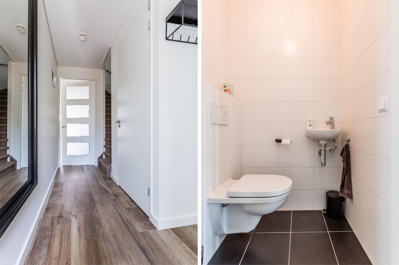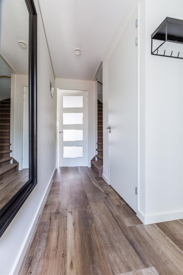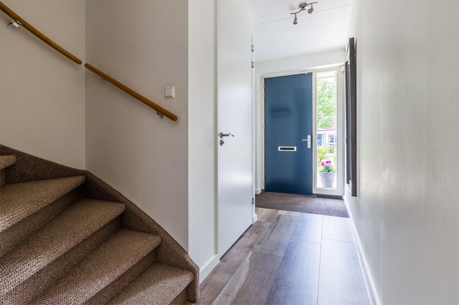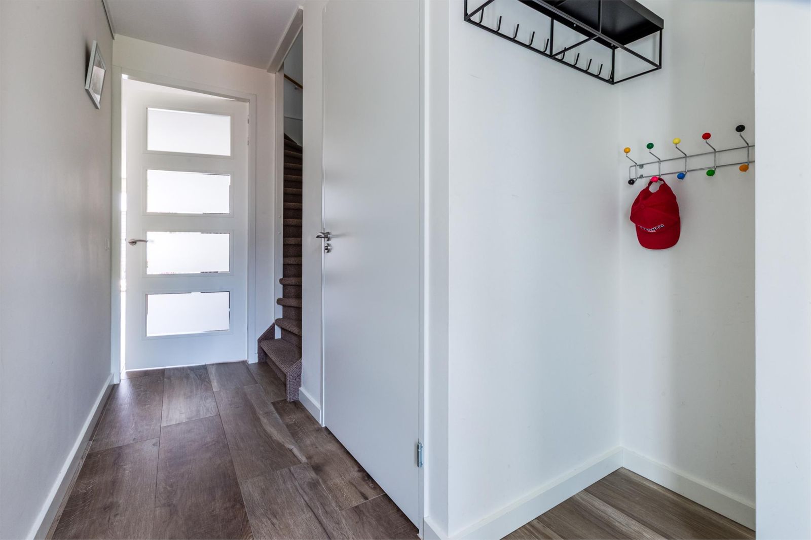 Entree met hal, toilet, toegang tot de woonkamer en trap naar de eerste verdieping.