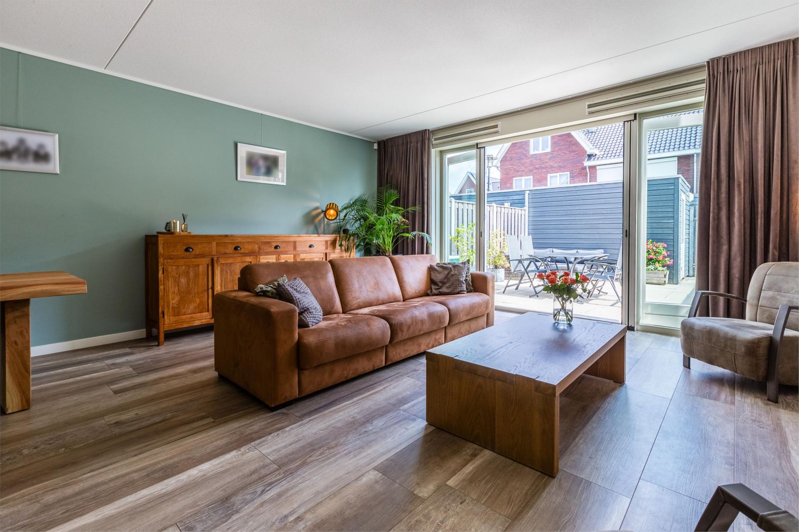 •Open, lichte woonkamer met openslaande deuren voorzien van rolhor