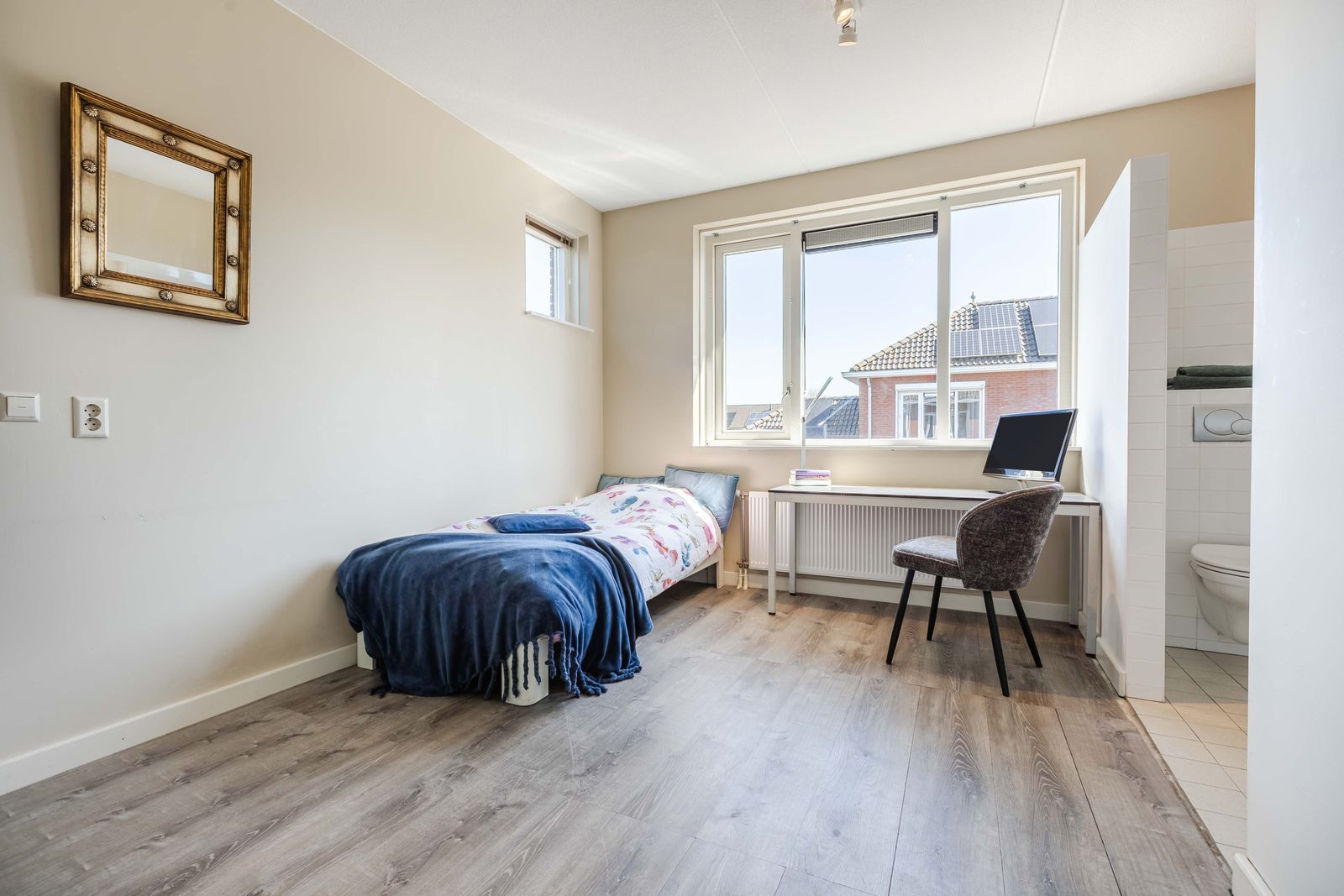Op de eerste verdieping bevindt zich een verrassende derde slaapkamer. Deze kamer is uitgevoerd als een suite met een eigen douche en toilet, ideaal voor gasten of een inwonend kind dat privacy zoekt. Daarnaast biedt de verdieping zeer veel bergruimte dankzij twee aparte zolders: één bereikbaar via een vlizotrap en de tweede via een kruipluik.