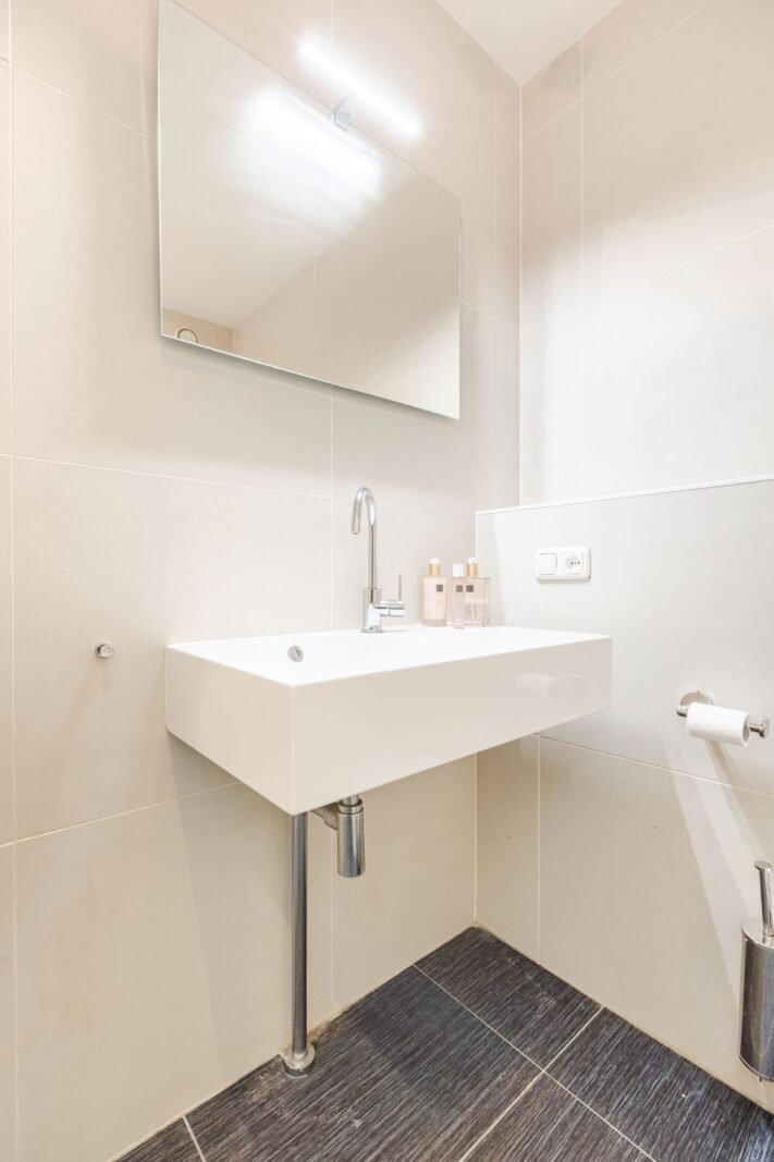 Op deze verdieping bevindt zich de master bedroom met nabijgelegen een luxe badkamer. Deze badkamer is hoogwaardig afgewerkt met een ligbad, een moderne inloop-regendouche, een stijlvol wasmeubel en een toilet. Ook de praktische zaken zijn hier geregeld: er is een aparte was- en technische ruimte voor de wasmachine, droger, de HR-ketel uit 2021 en de mechanische ventilatie.